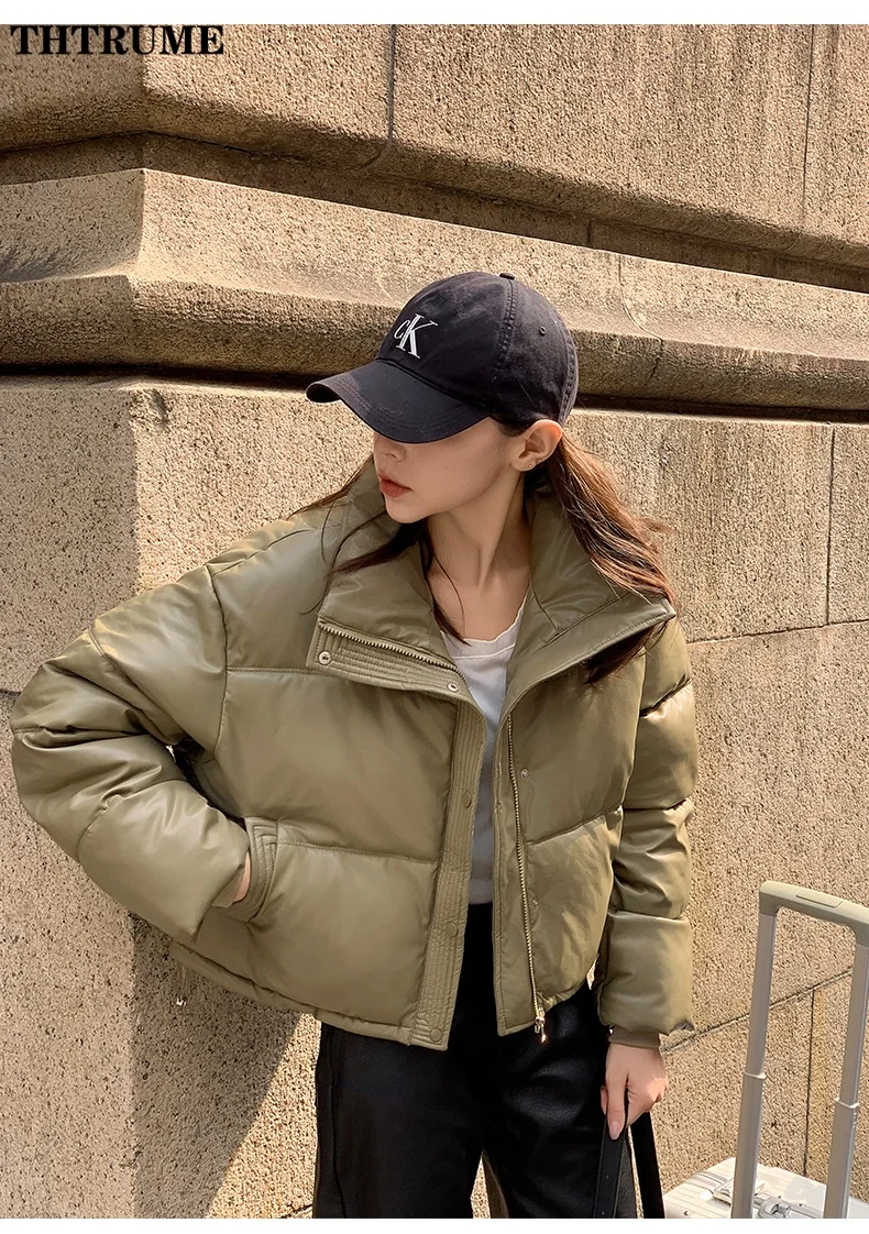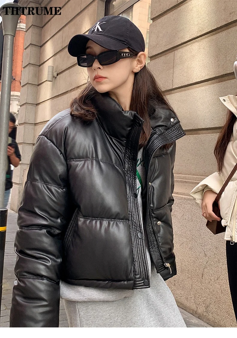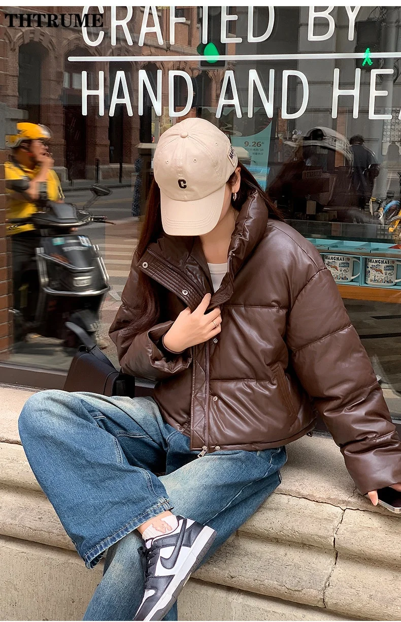 Elegant Women Autumn Jackets Fashion Thick Korean PU Zipper Button Loose Streetwear Coats Casual Lapel Long Sleeve New Jacket
