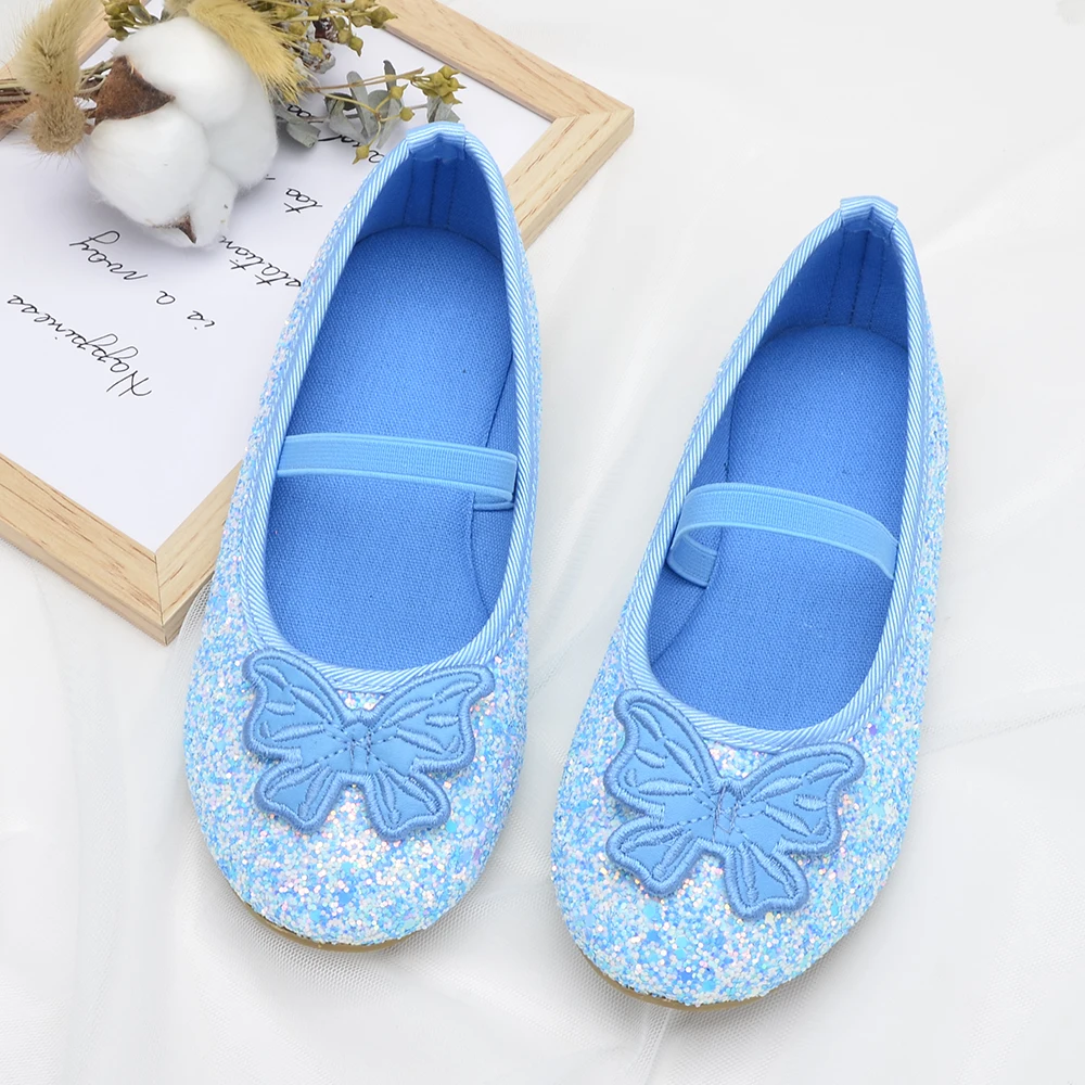 Elsa butterfly glitter shallow mouth soft soled elastic comfortable casual shoes