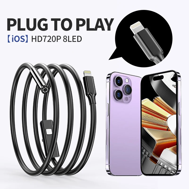 Endoscope Camera for iPhone Borescope Inspection Camera 8.5mm /5.5MM Scope Camera For iOS with Light