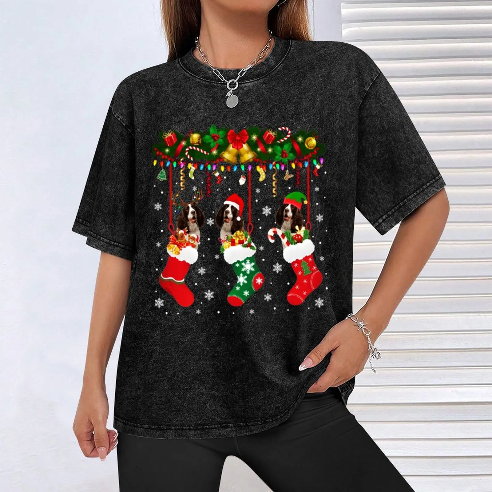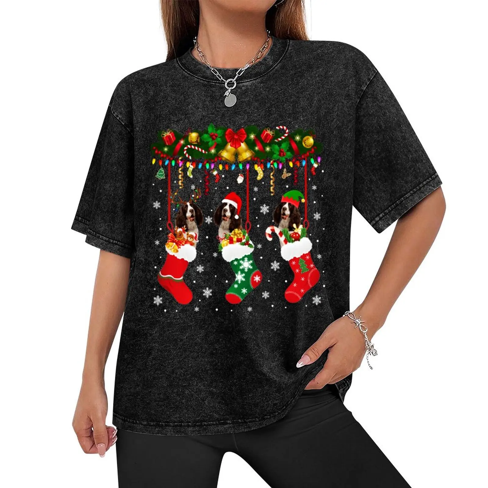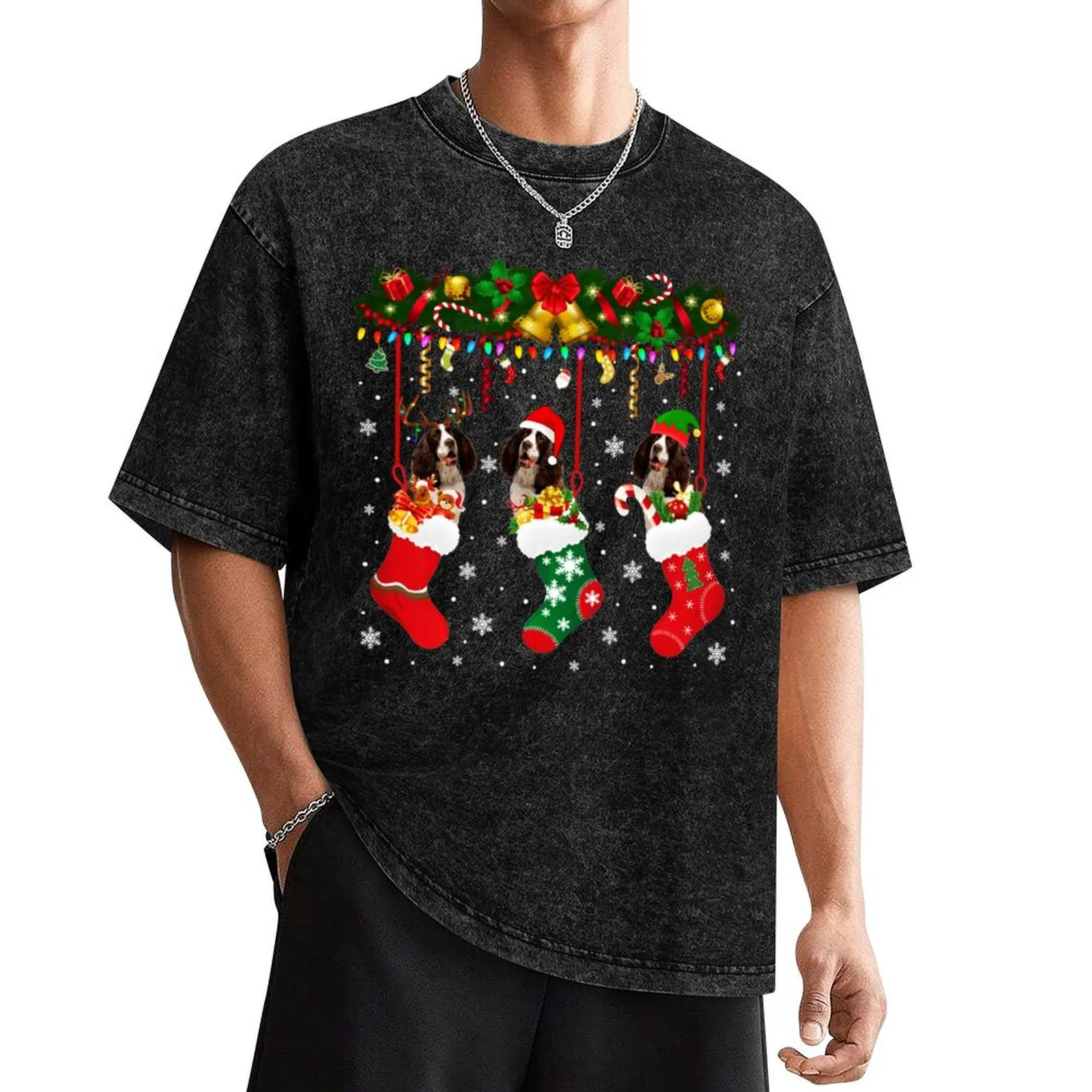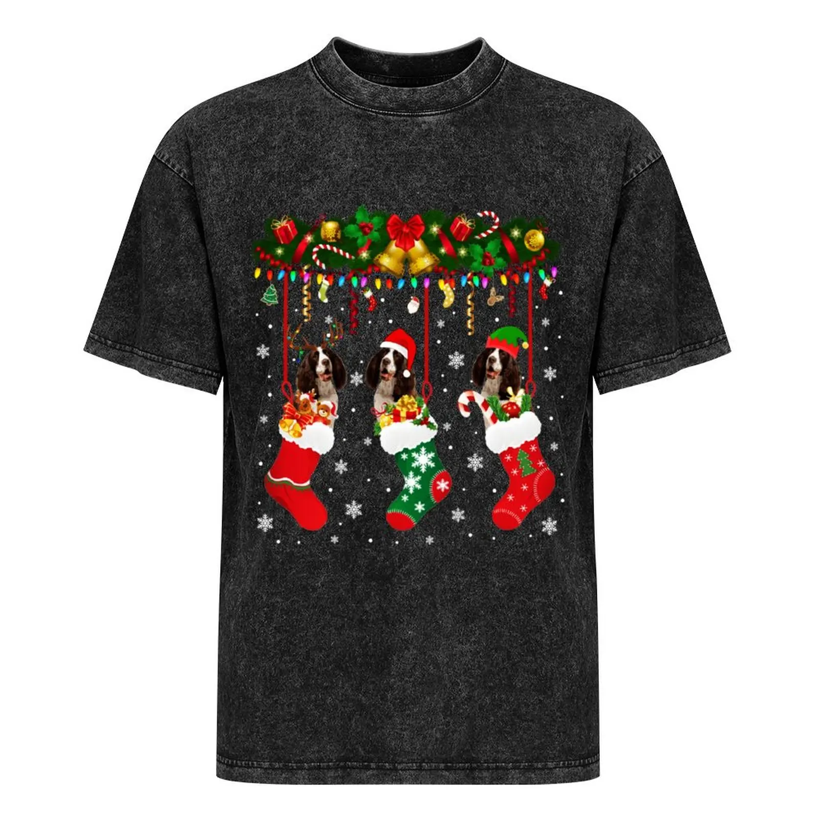 English Springer Spaniel In Sock Xmas Reindeer Santa ELF Dog T-Shirt animal prinfor boys anime stuff T-shirt men