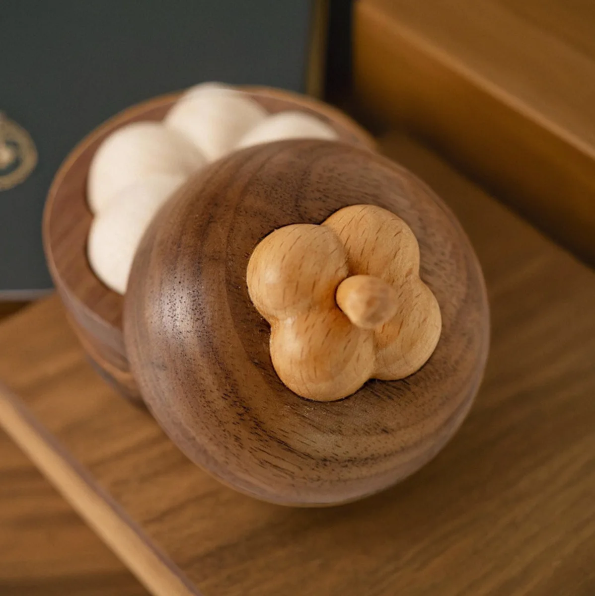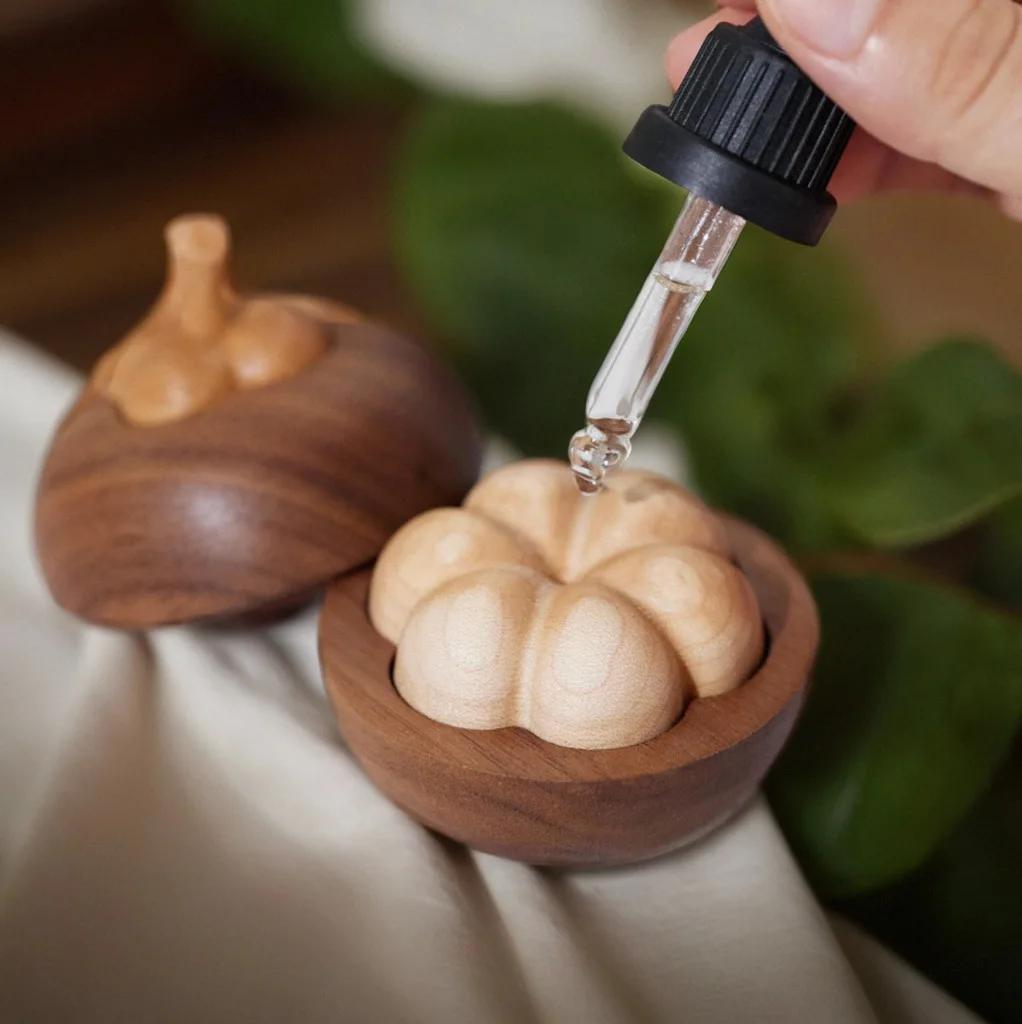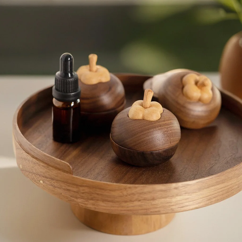 Essential Oil Diffuser Fragrance Wood Mangosteen Shape Wood Ball Creative Vehicle-mounted Black Walnut Aromatherapy Perfume Wood