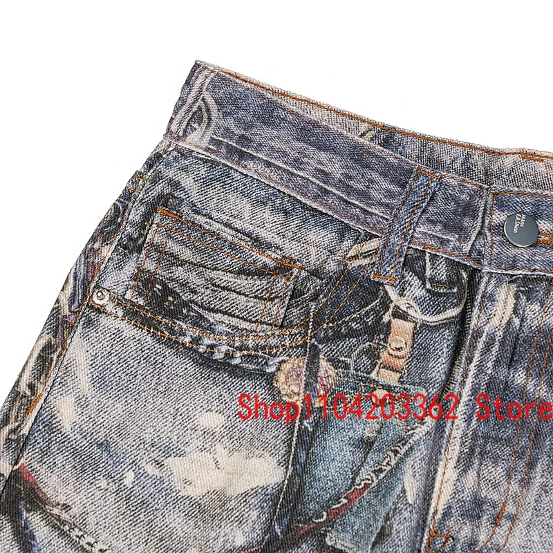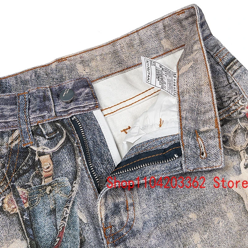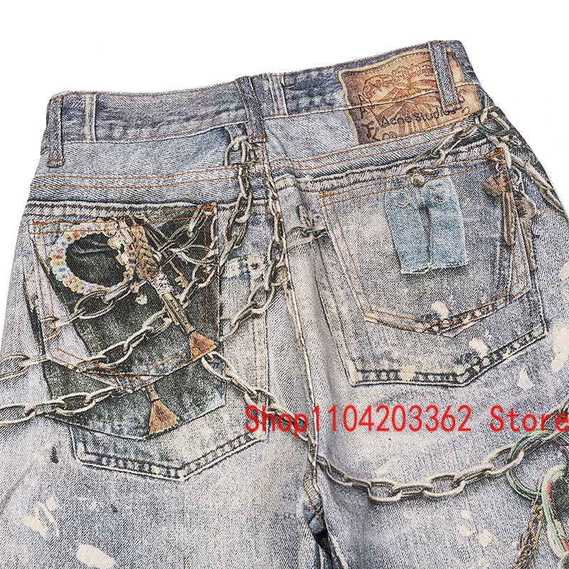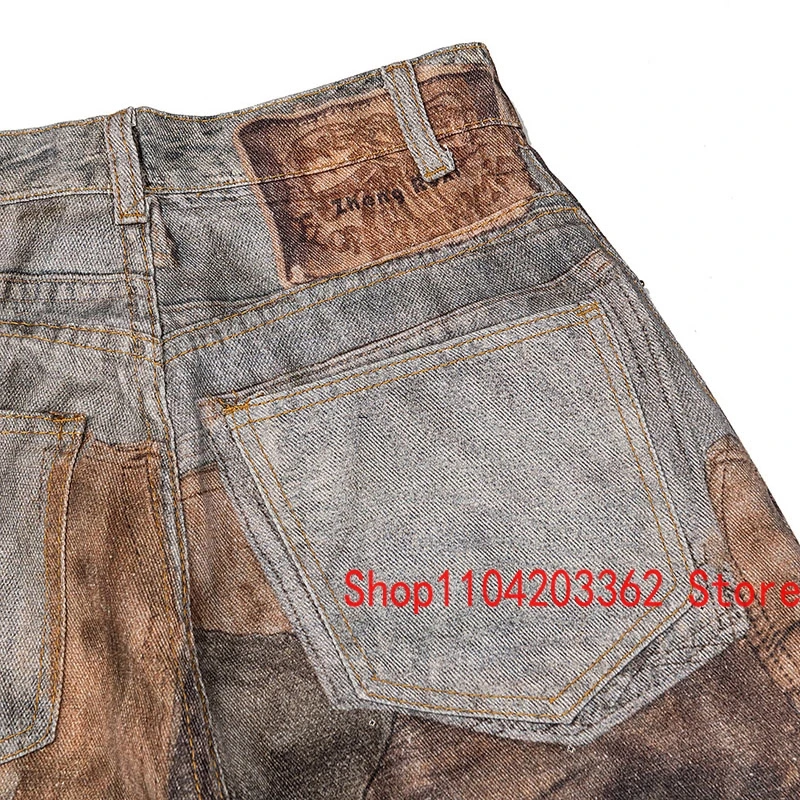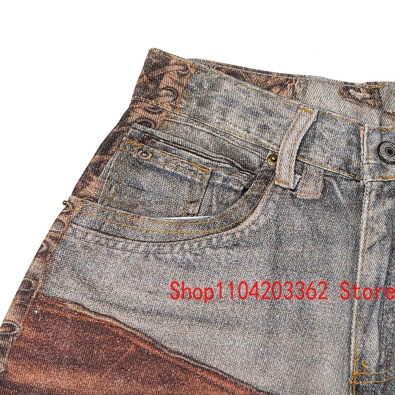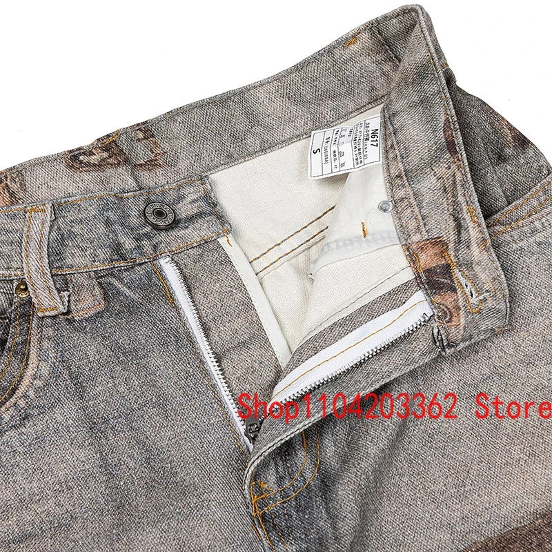 Europe American Streetwear Kanye West Jeans Men Women Hip Hop Loose Straight Pants Vintage Patchwork Ripped Denim Trousers