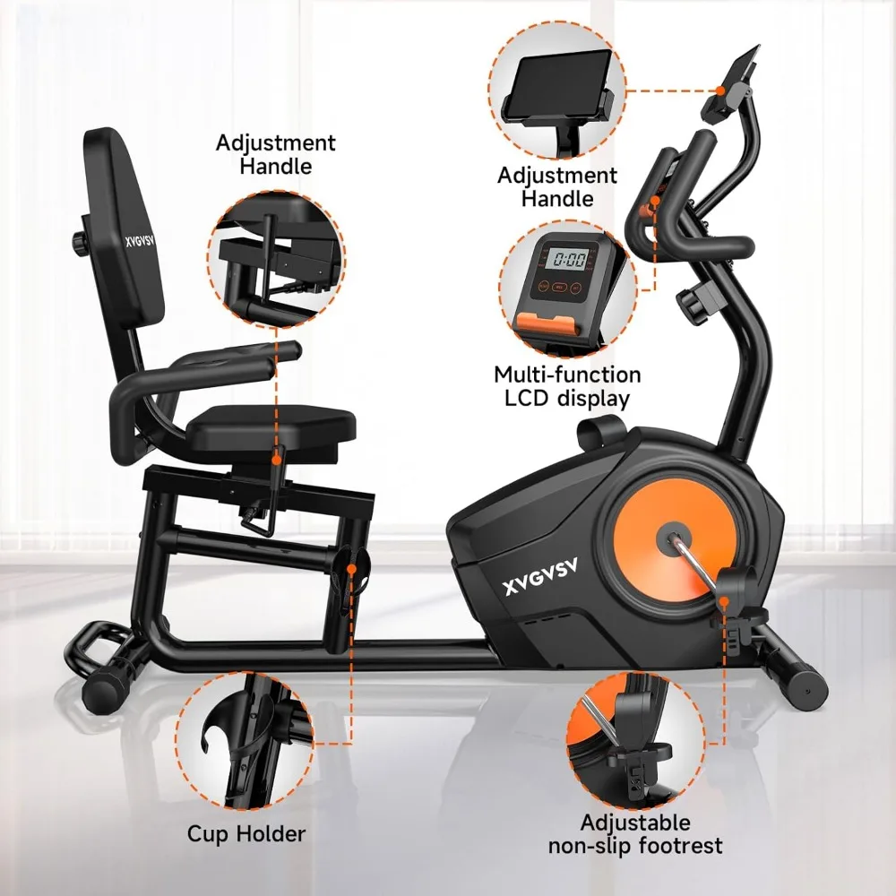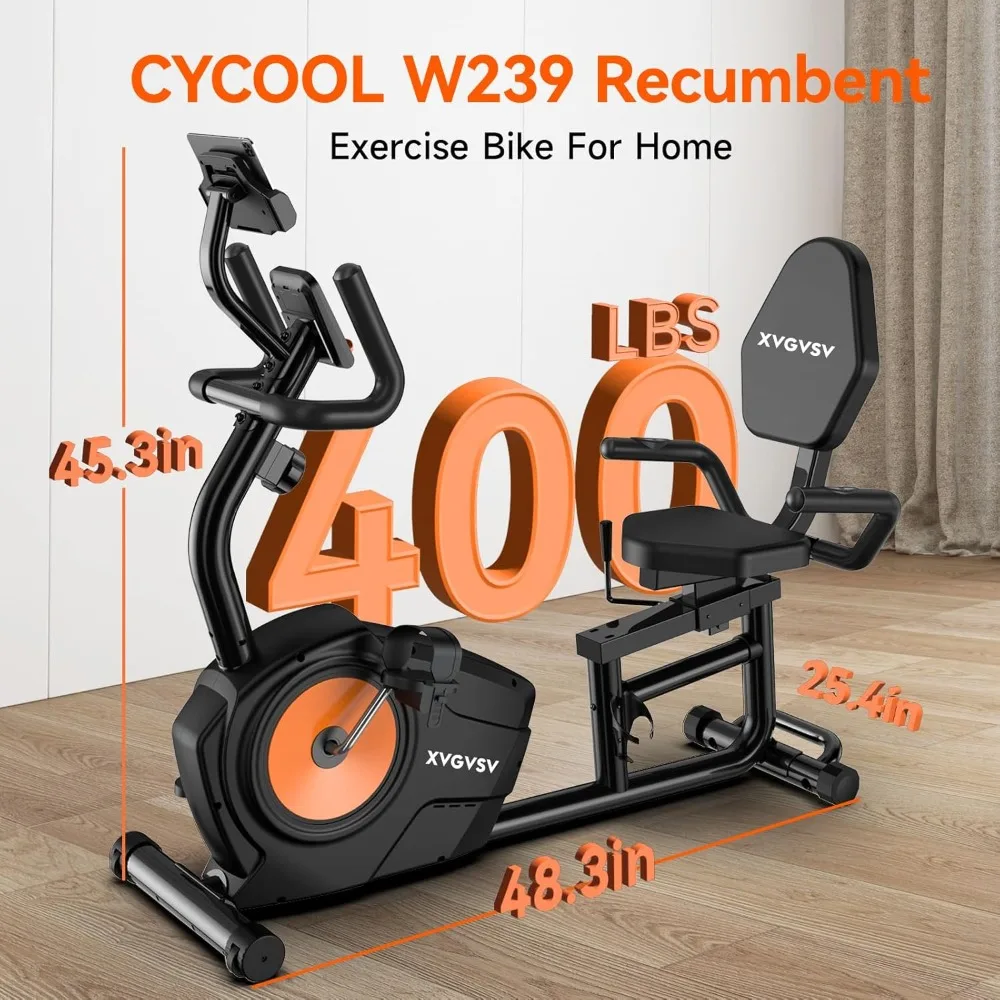 - 【Durable Construction for Stability】Built to last, our recumbent exercise bike is constructed with commercial-quality steel, supporting up to 400lbs for a safe and stable workout. XVGVSX Exercise Bike infinitely adjustable seat caters to riders ranging from 4’9” to 6’2”, making it an ideal addition to any home gym.