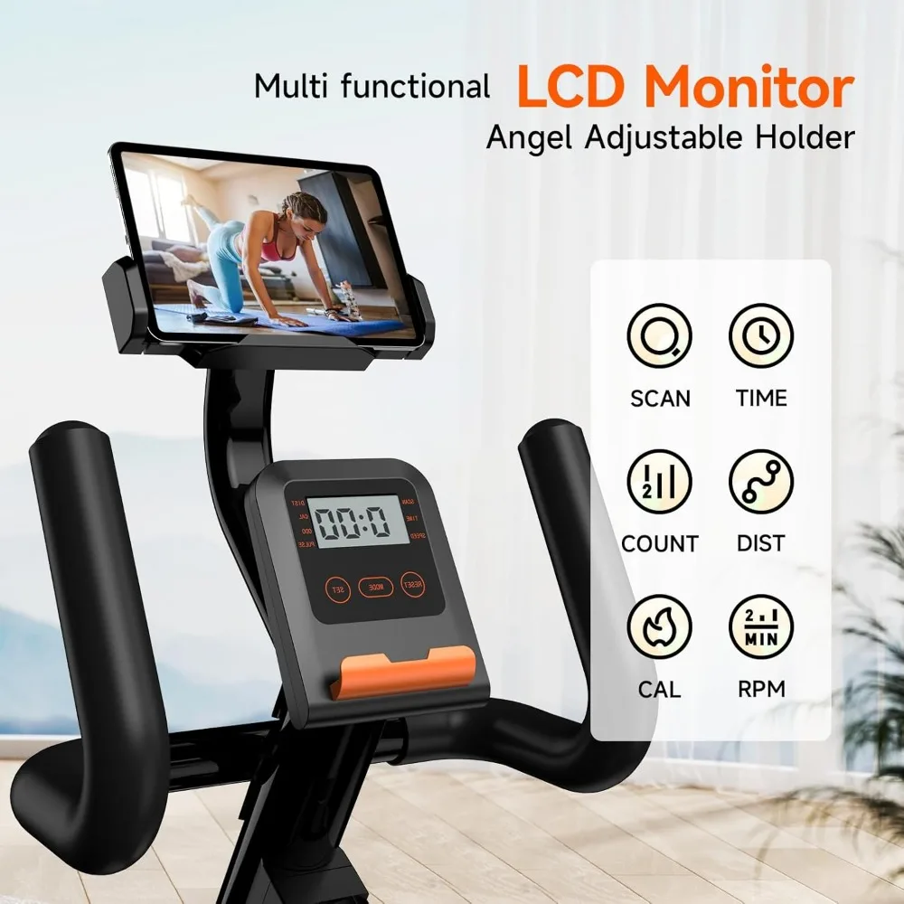 Folding Exercise Bike Magnetic Foldable Stationary Bike, 3 in 1 Mode Indoor Upright Fitness Workout X-Bike