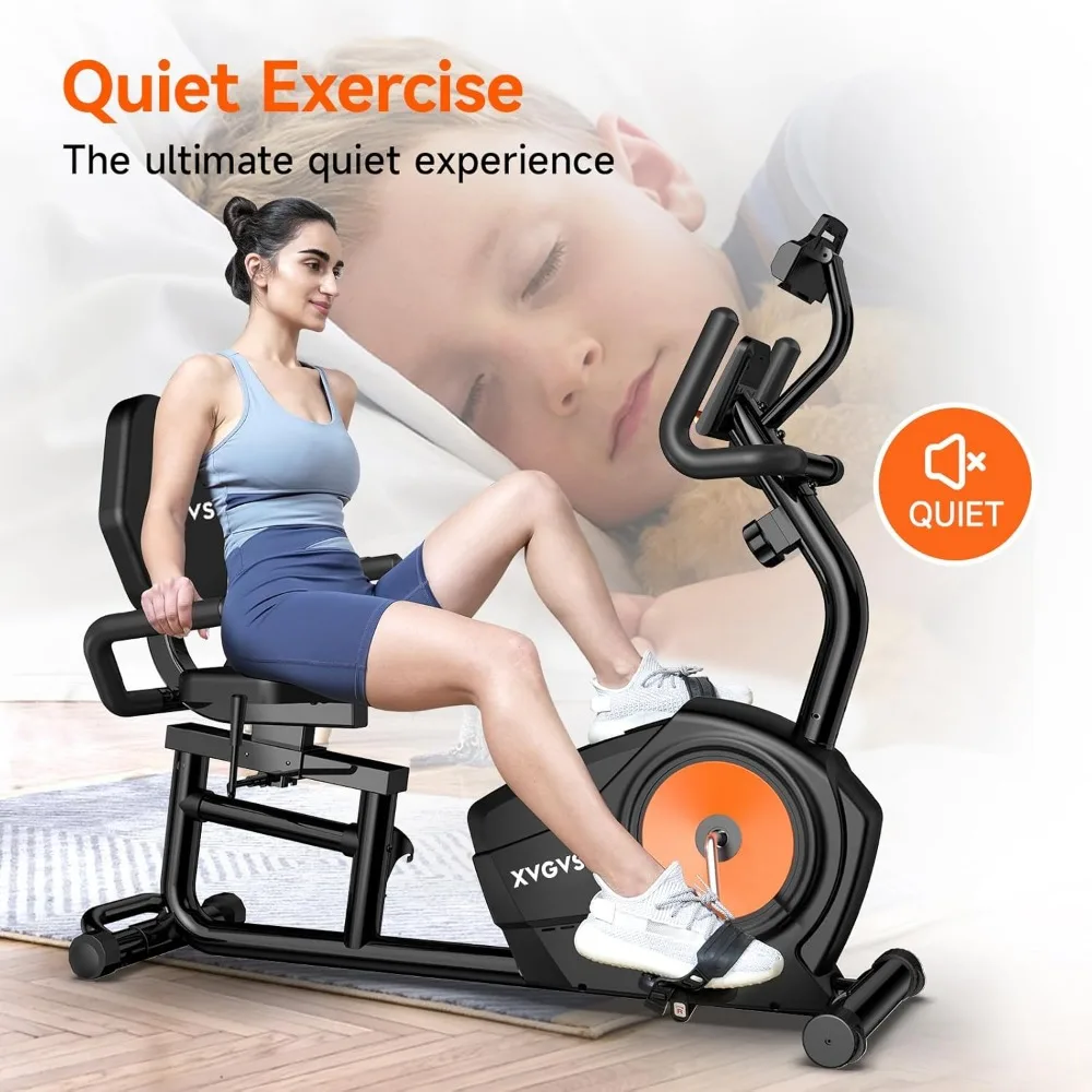 - 【Whisper Quiet Operation for Silent Workouts】Our Recumbent Exercise Bike incorporates patented magnetic resistance technology, ensuring an ultra-silent workout experience with noise levels as low as 15DB. The stationary bikes for home smooth movement not only keeps your exercise quiet but also provides a gentle and joint-friendly workout, allowing you to exercise pain-free.