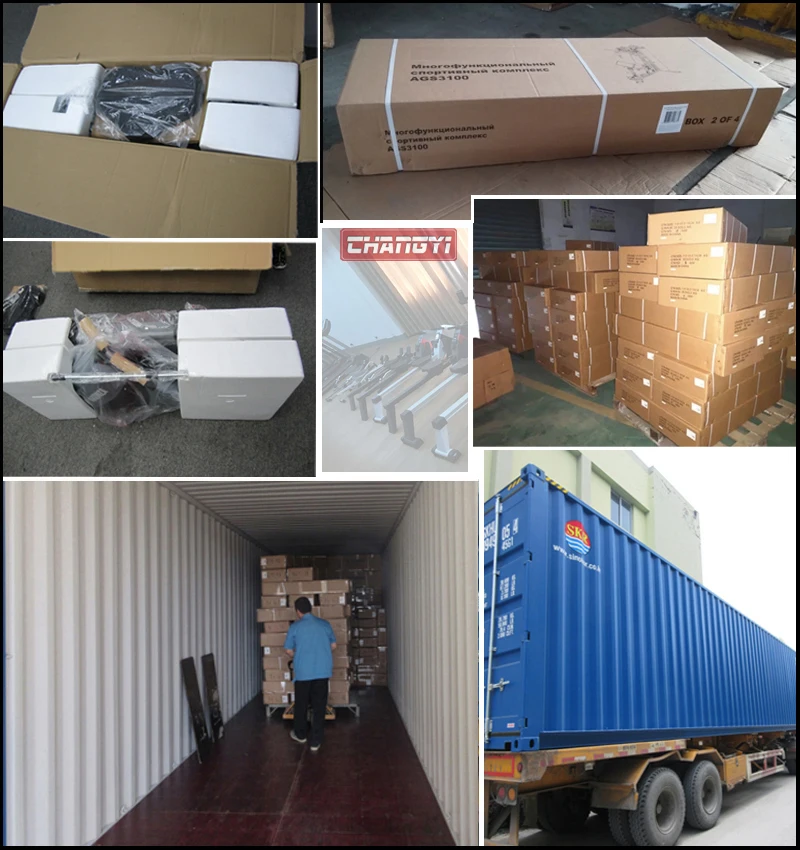 2. Large fitness equipment, packed individually with PP bags, cardboard, foam, large cartons.
