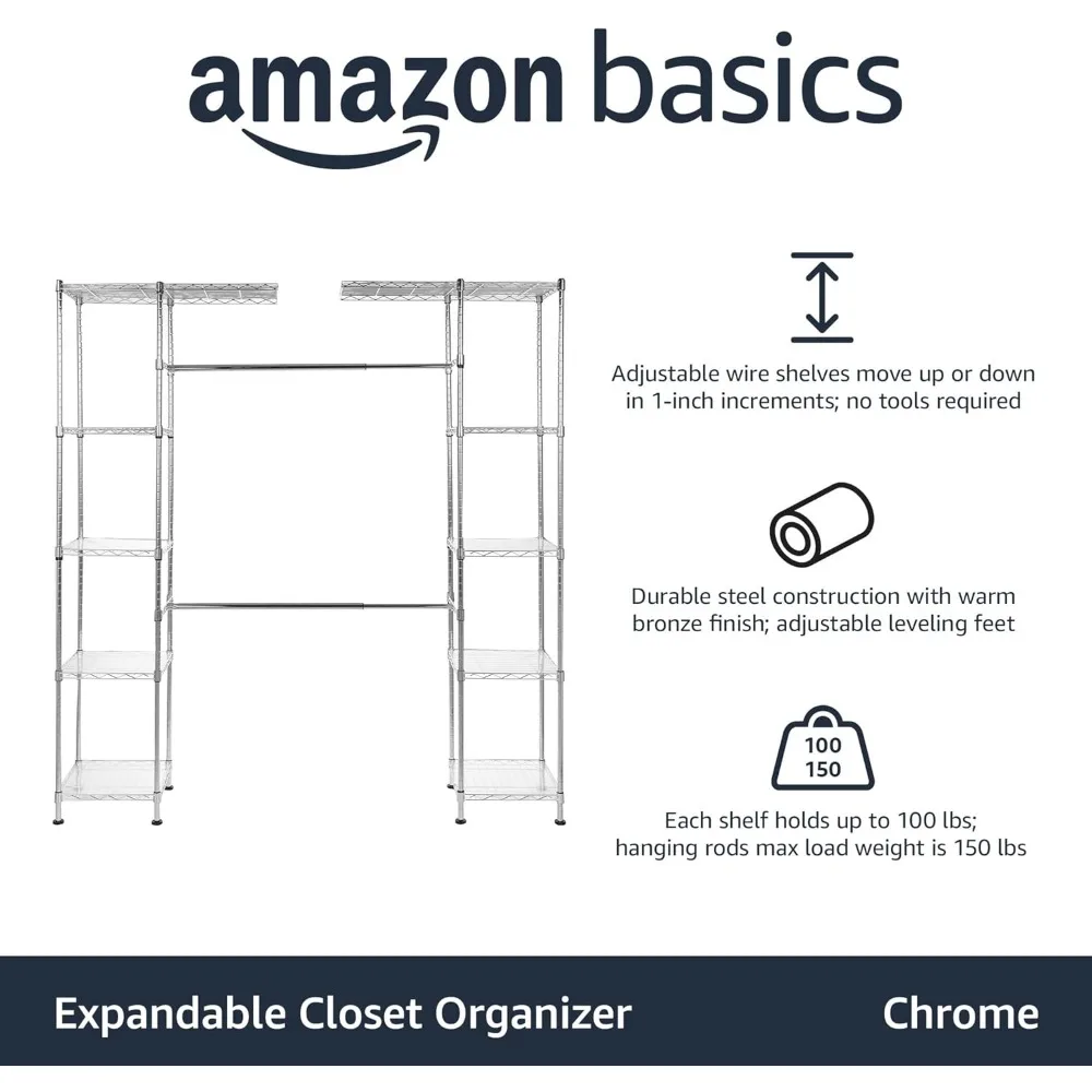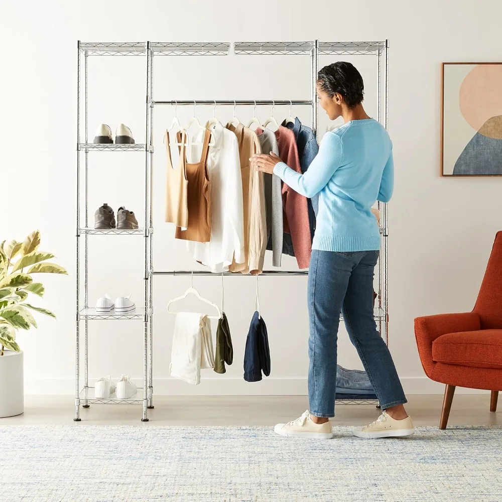 Expandable Adjustable Metal Hanging Storage Organizer Rack Wardrobe with Shelves