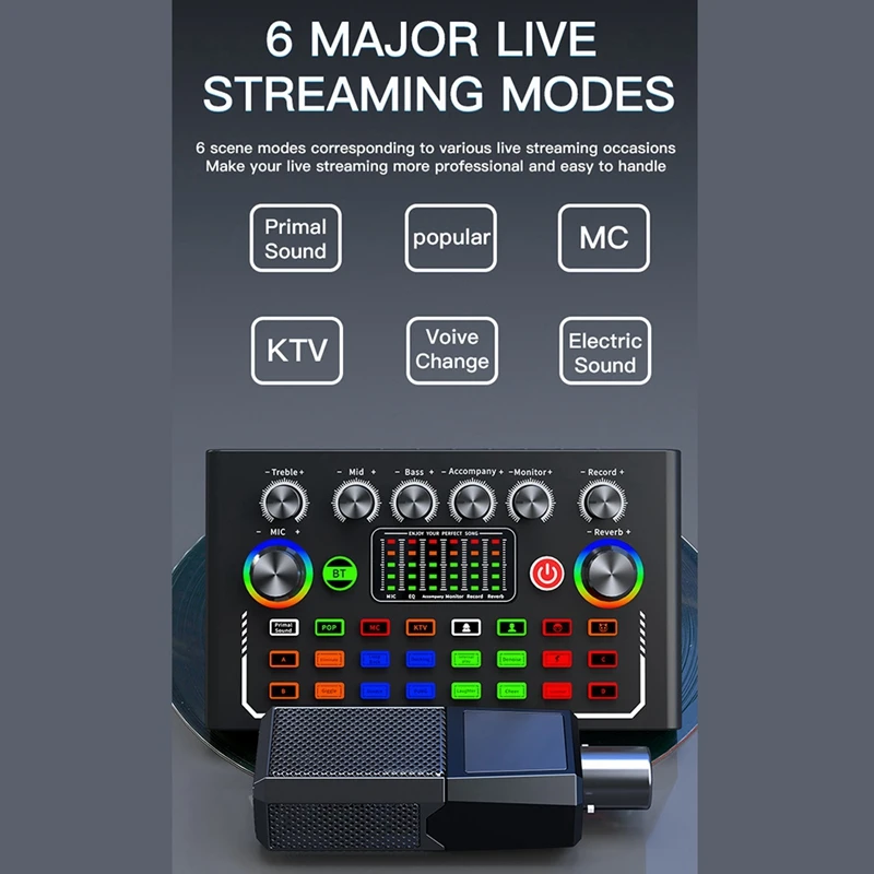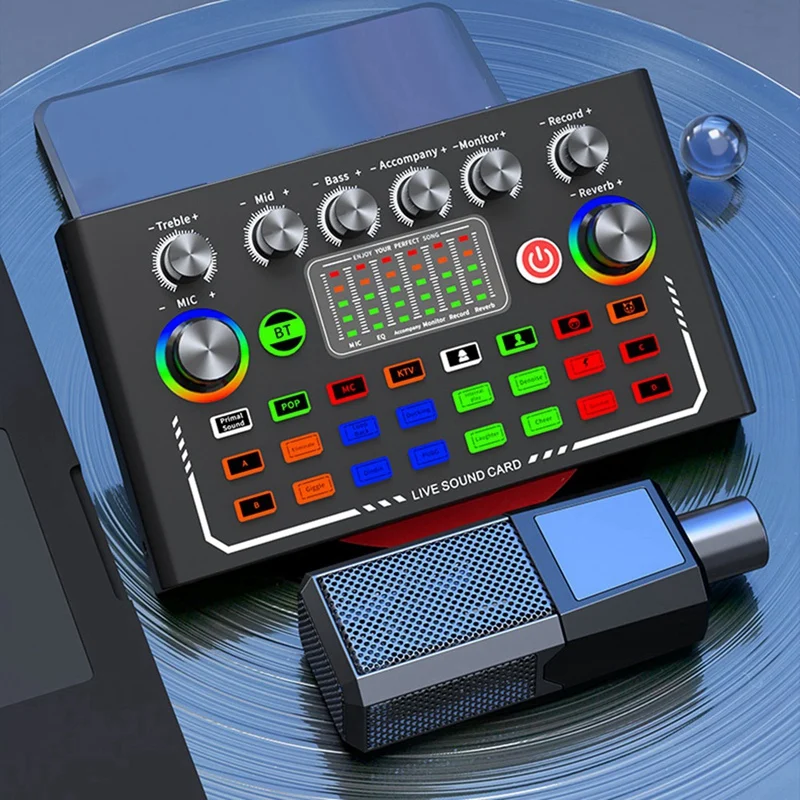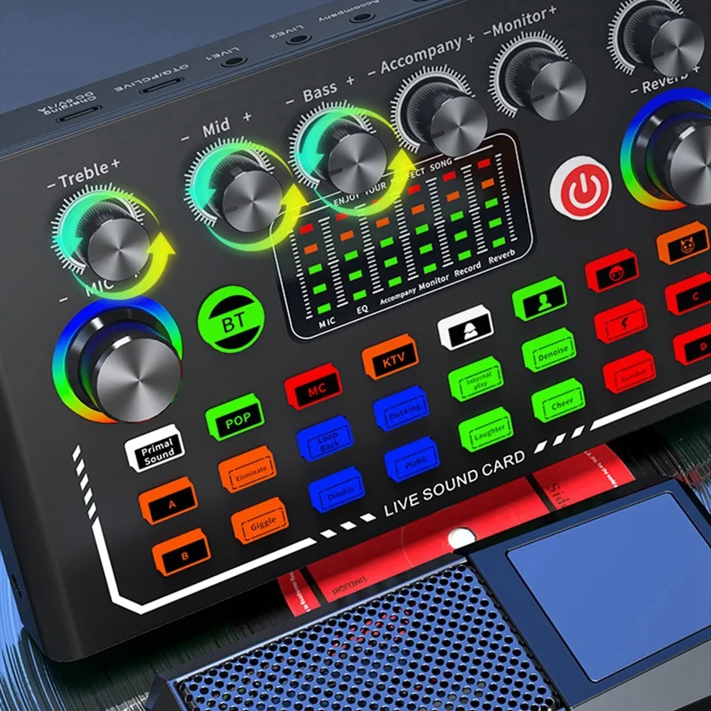 F009 Audio Mixer Live Sound Card With DJ Mixer Effects And Studio Equipment Voice Changer Podcast Production