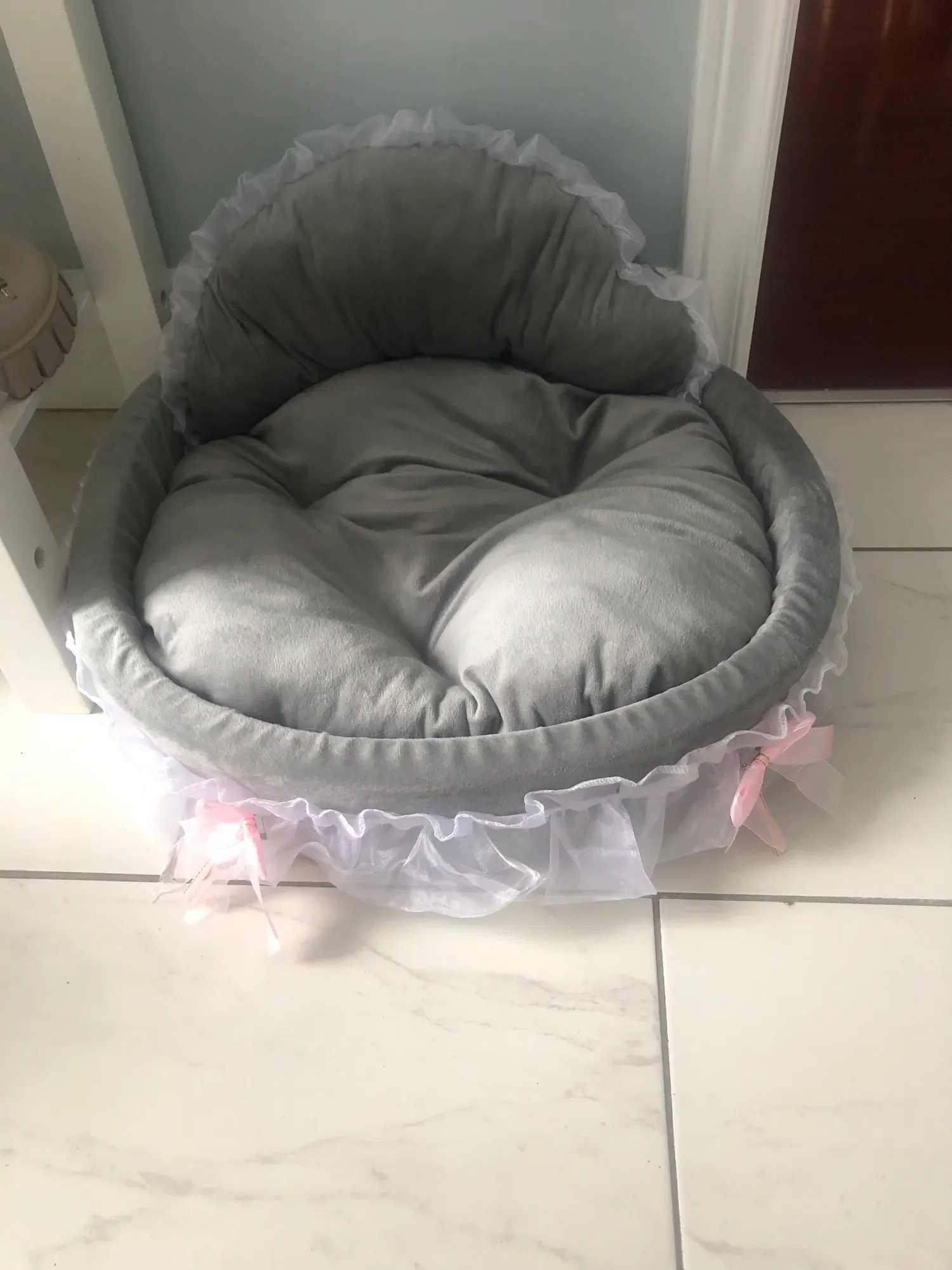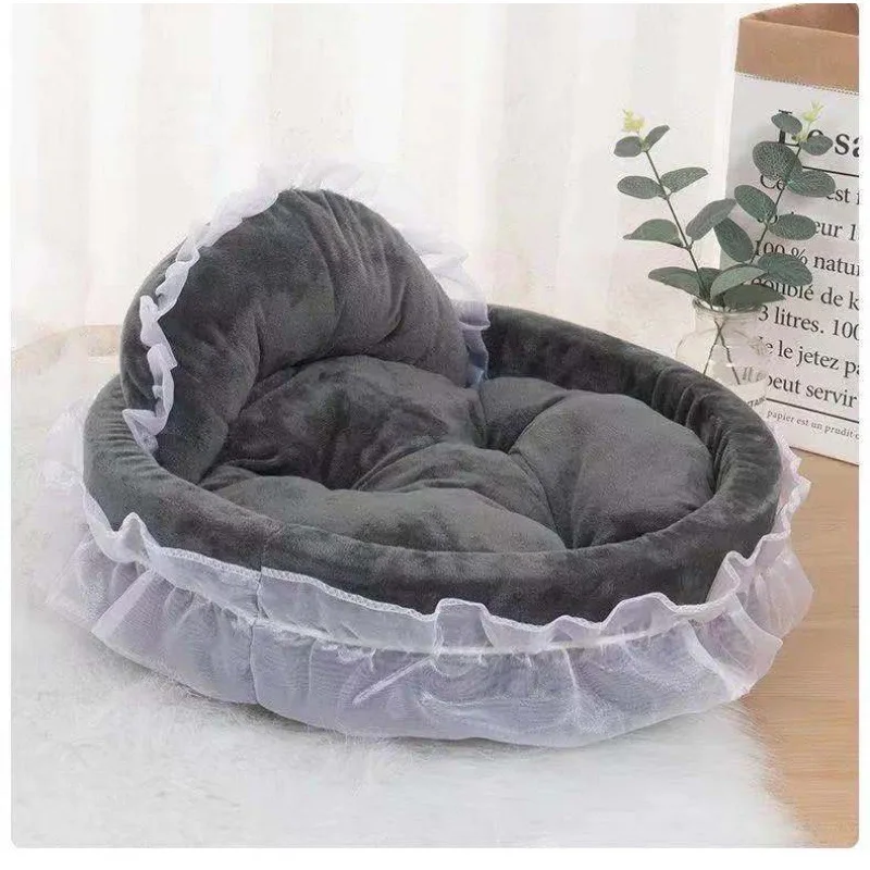 Fantasy Bow Lace Pet Bed Cute Large Dog Beds Cat Pet Sofa Detachable Oval Pink Princess Pet Bed Basket For Dog Wedding Furniture