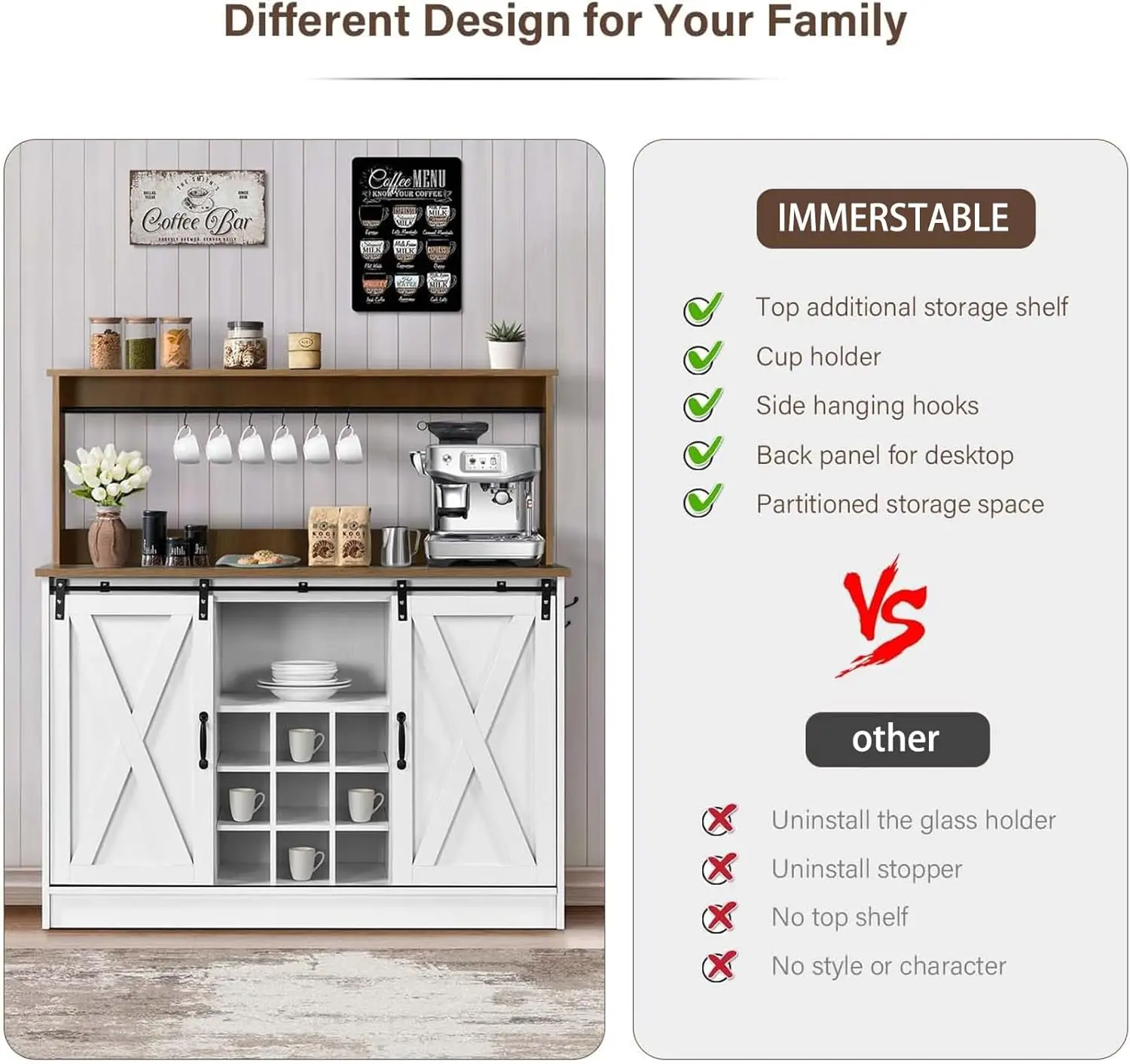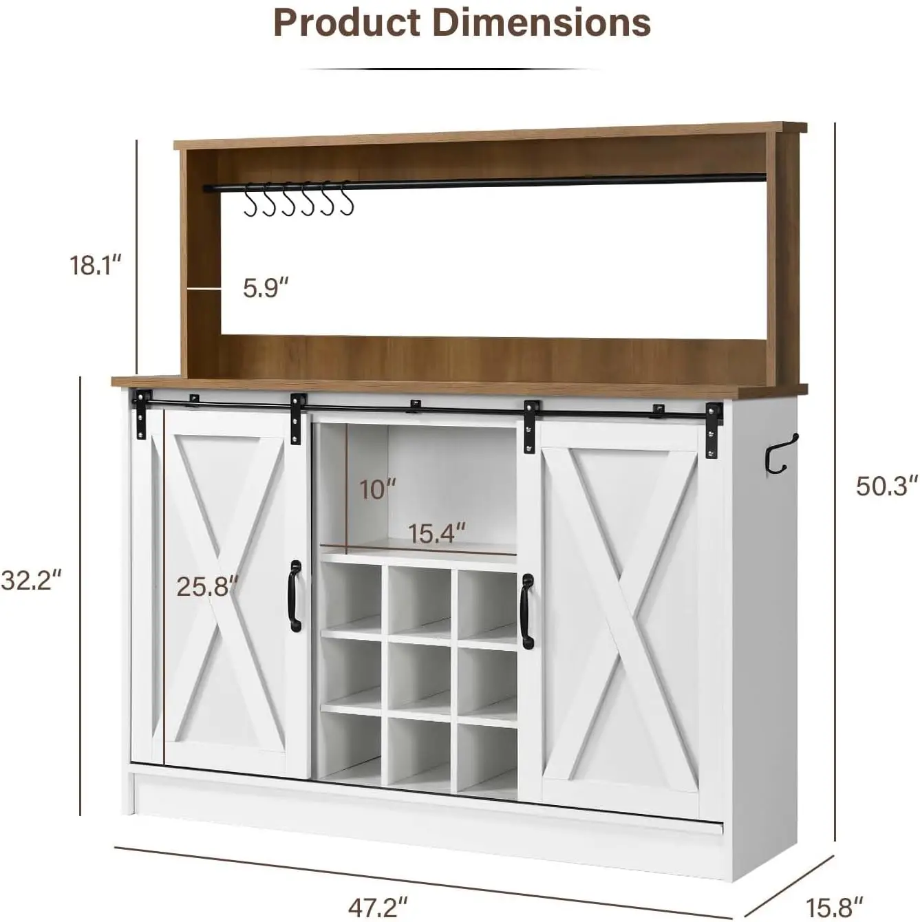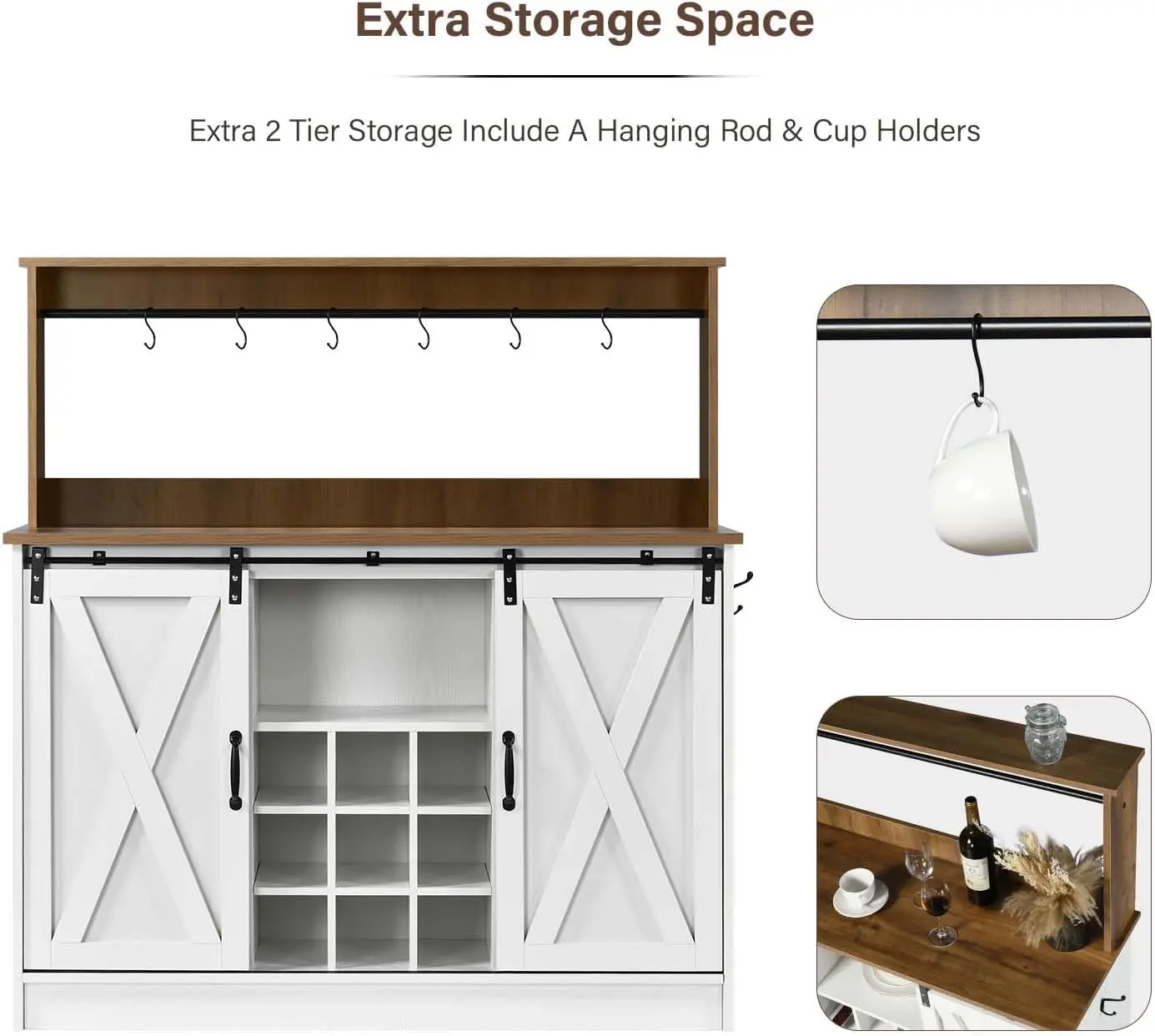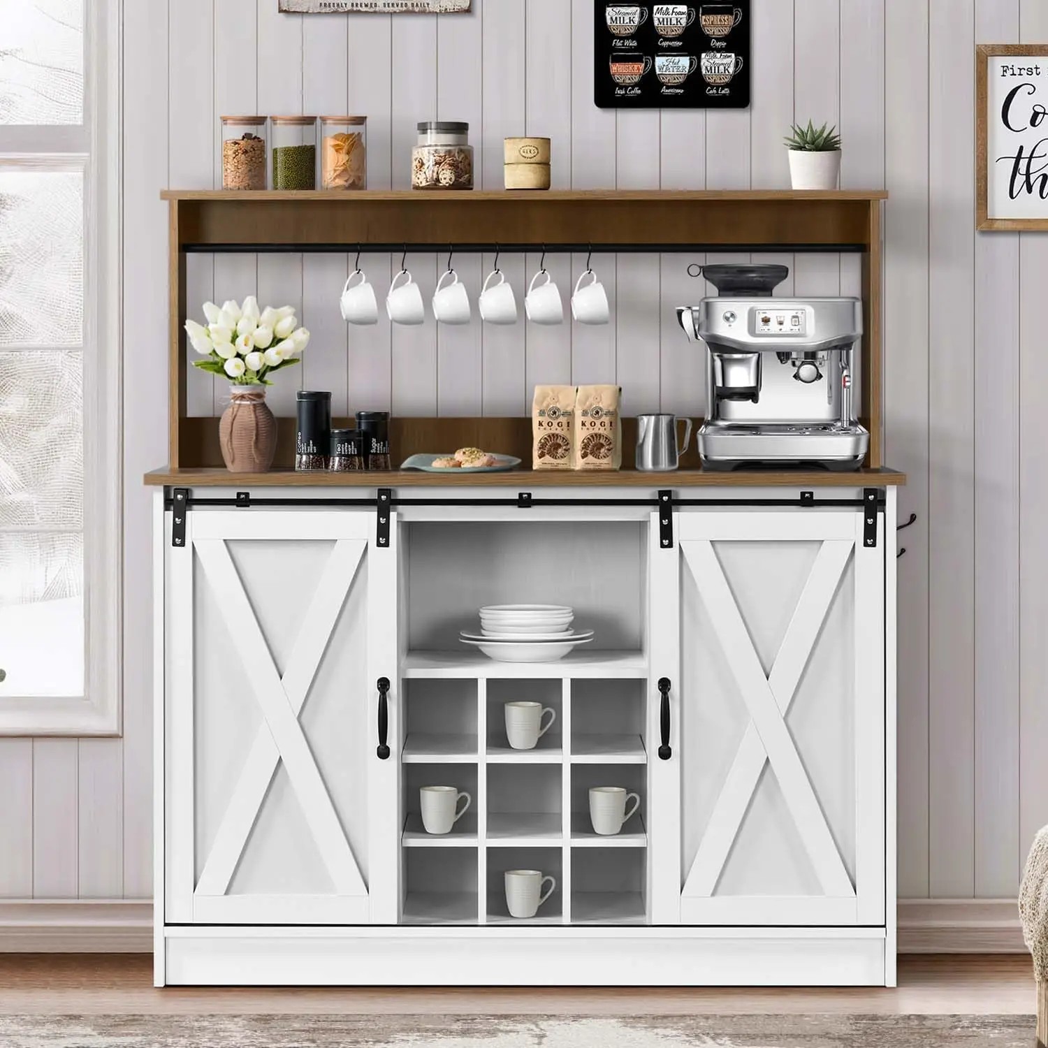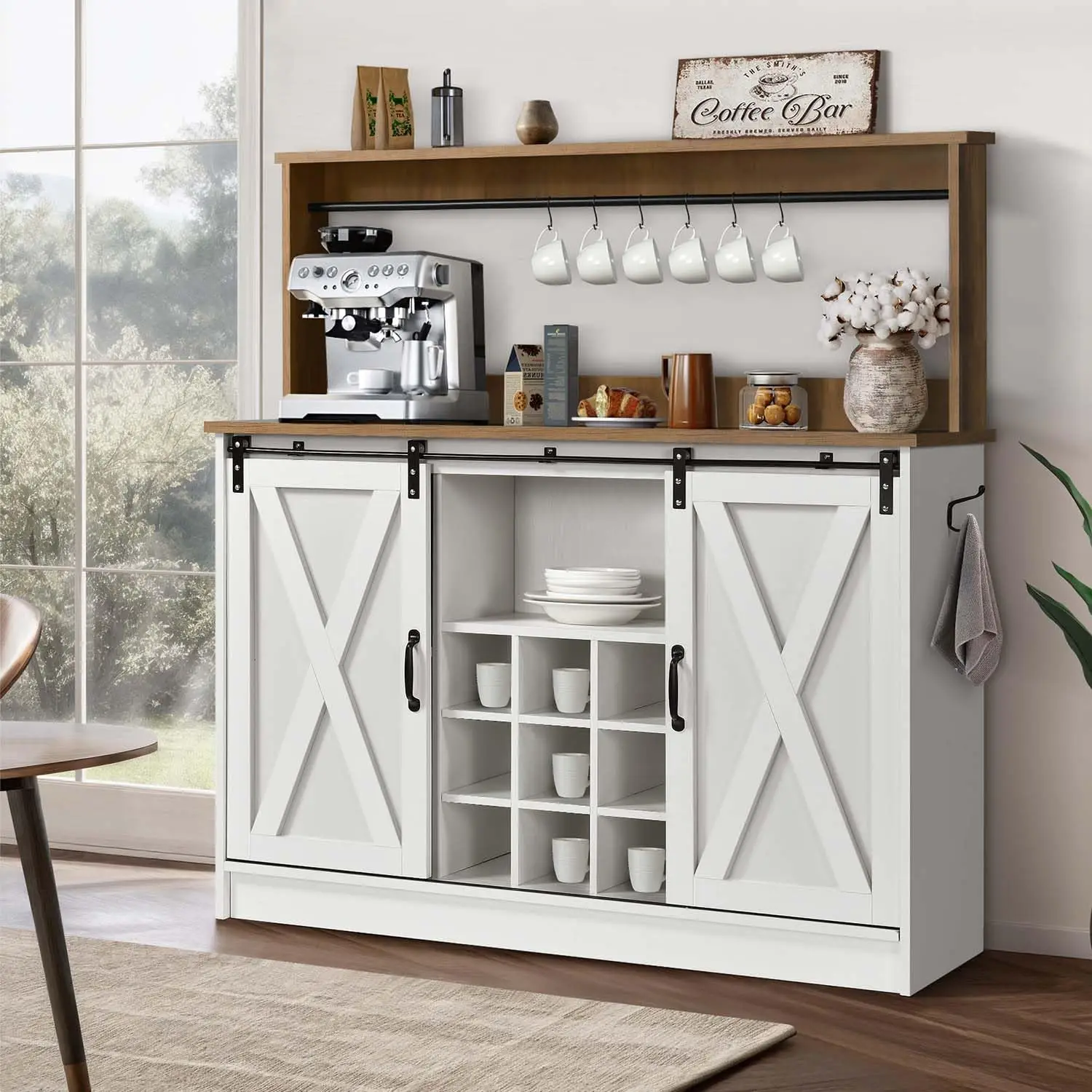 Farmhouse Coffee Kitchen Bar Cabinet with Wine Racks, Coffee Station for Dining Room