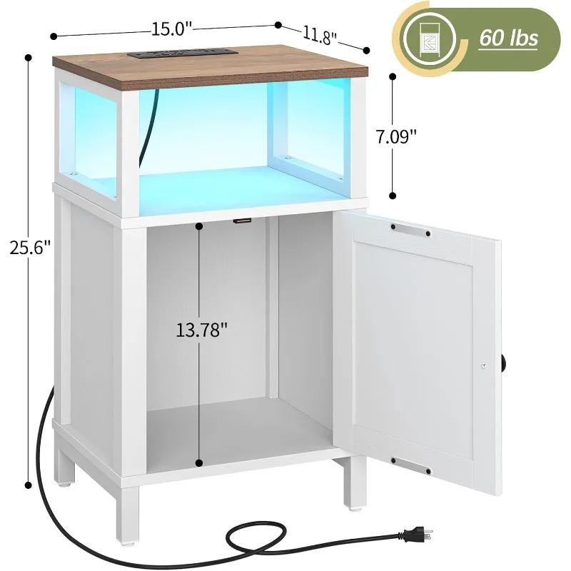 - 【Night Stand with Charger Station】The night stands with charging station containing 2 AC outlets, 3 USB ports (including 1 bottom USB port for the LED), and a 6.5ft power cord. The white nightstand offers enough outlets to charge multiple devices at once. Notably, it is EETL&UL+FCC certified, ensuring a stable power supply.