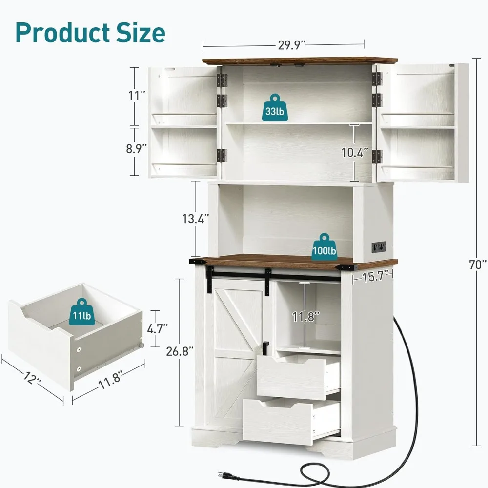 - Convenient Charging station: The pantry cabinet has 3 standard outlets and a 4.9-foot power cord, specifically designed for appliances like microwaves and coffee machines. It easily solves the charging problem for kitchen appliances, making cooking time more relaxed and unhurried