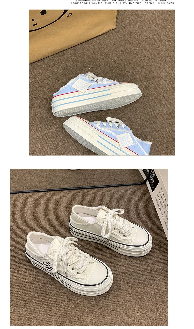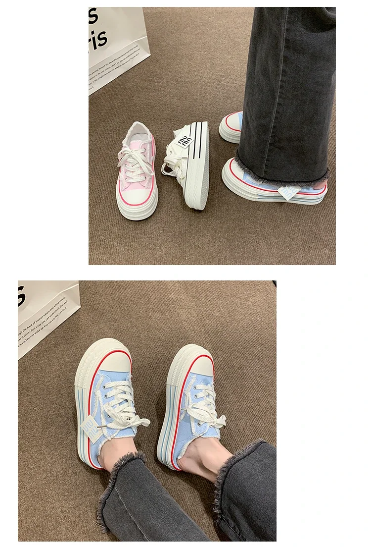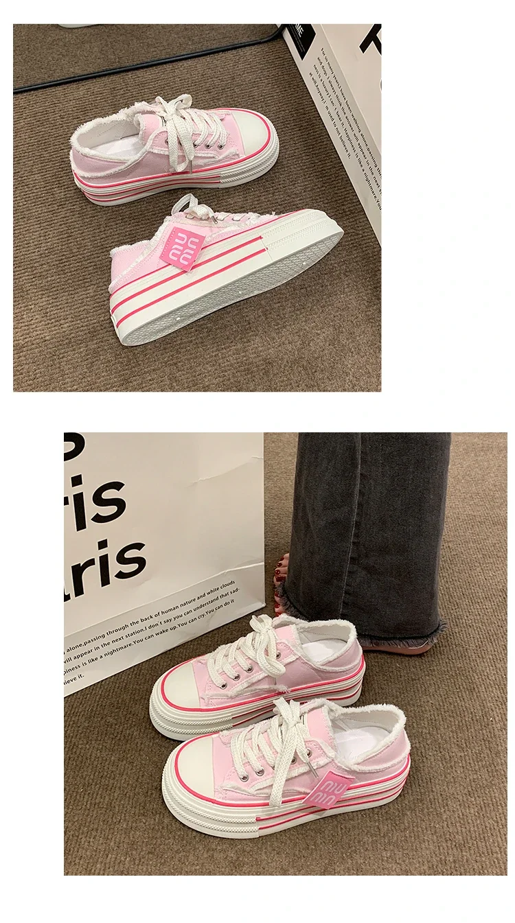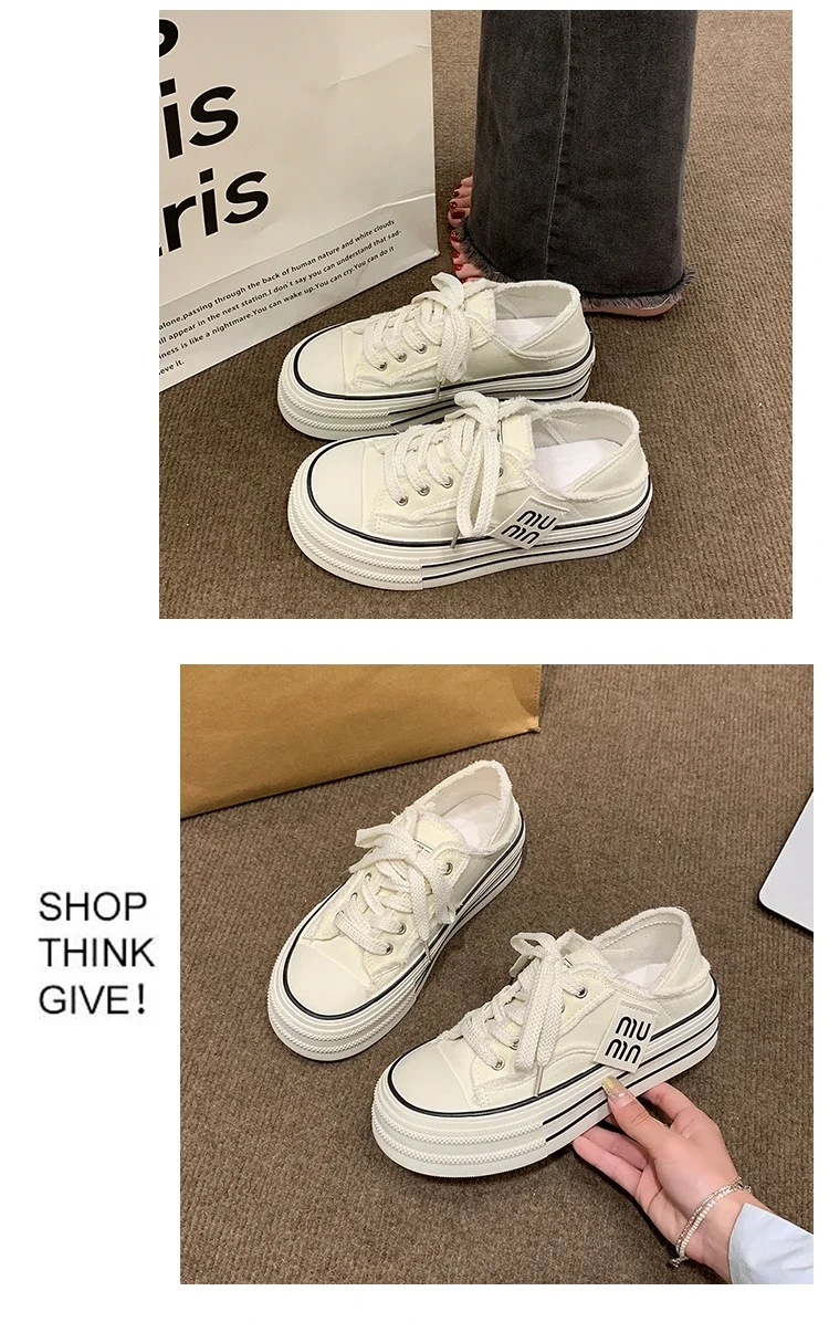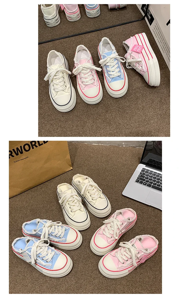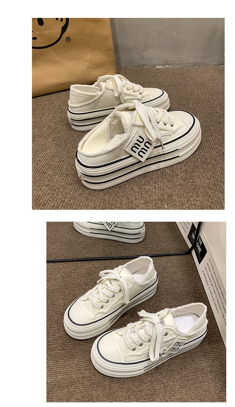 Fashion Casual Canvas Shoes for Women 2024 Spring Autumn New Designer Half Slipper Shoes Female Platformm Sneakers Ladies