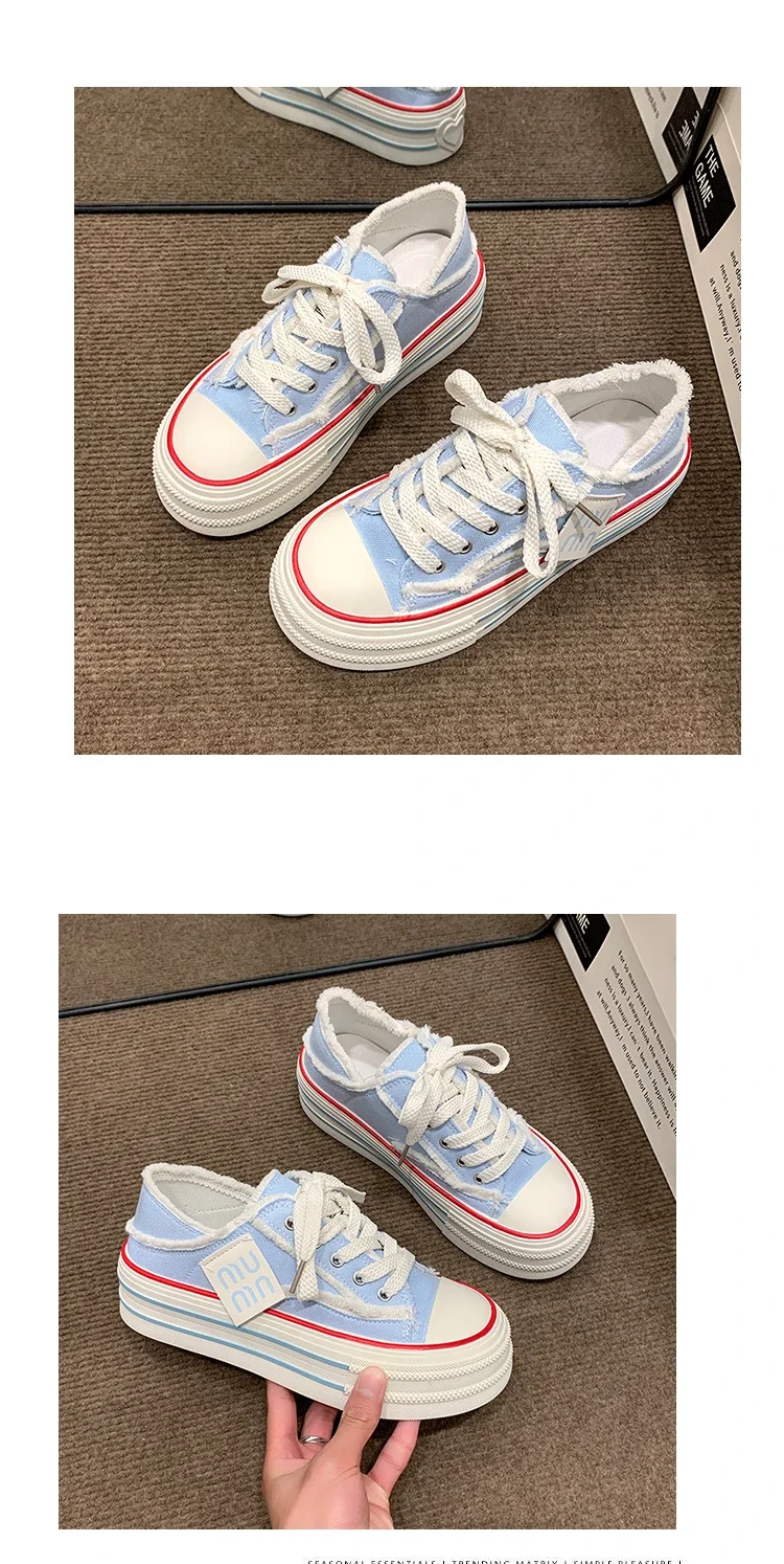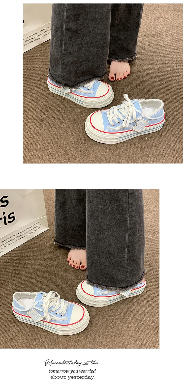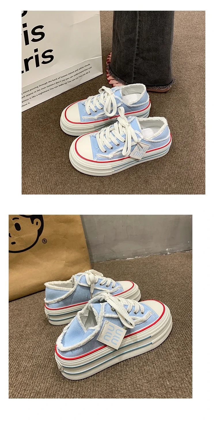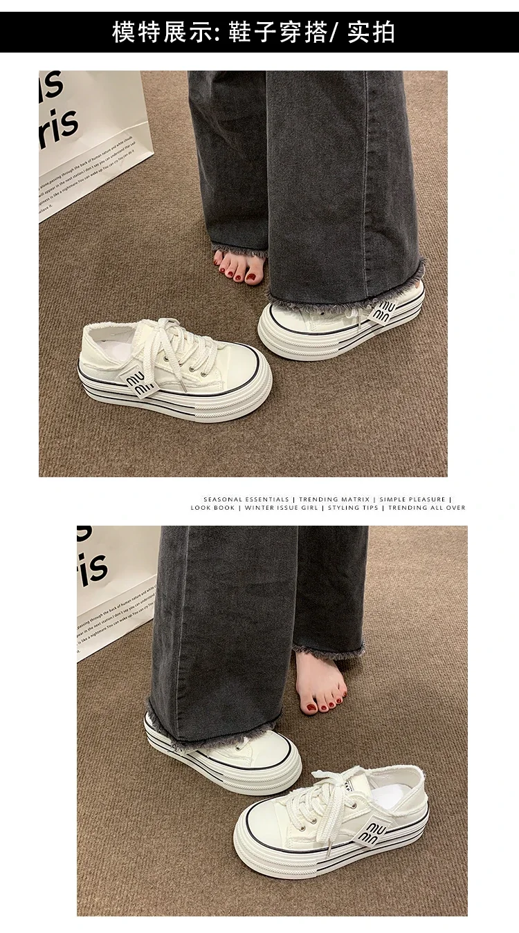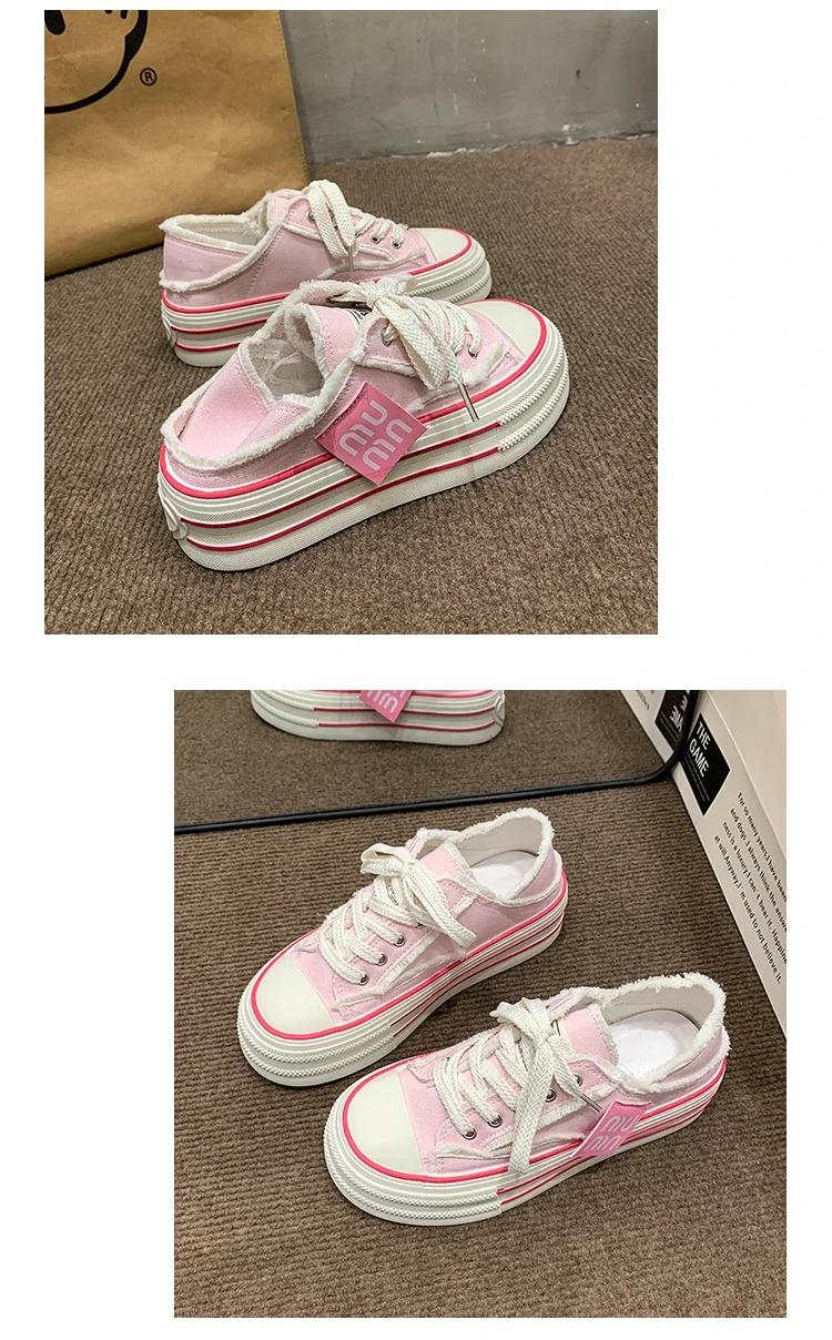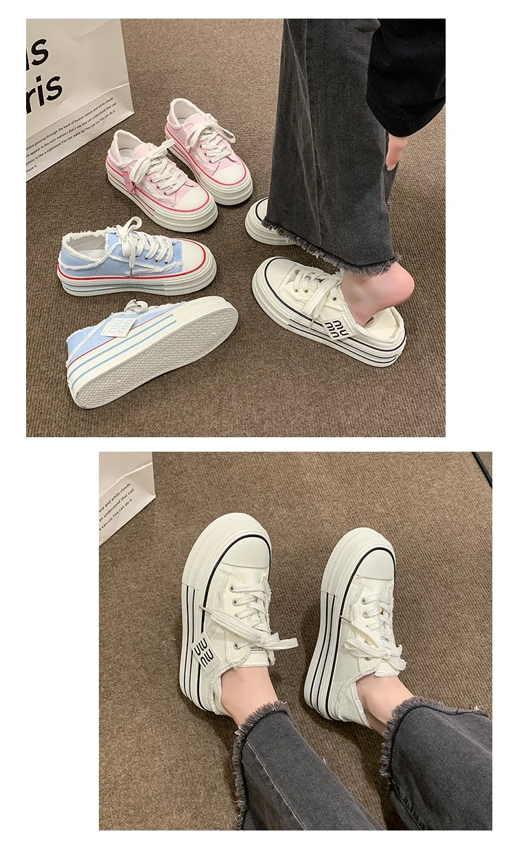 Fashion Casual Canvas Shoes for Women 2024 Spring Autumn New Designer Half Slipper Shoes Female Platformm Sneakers Ladies