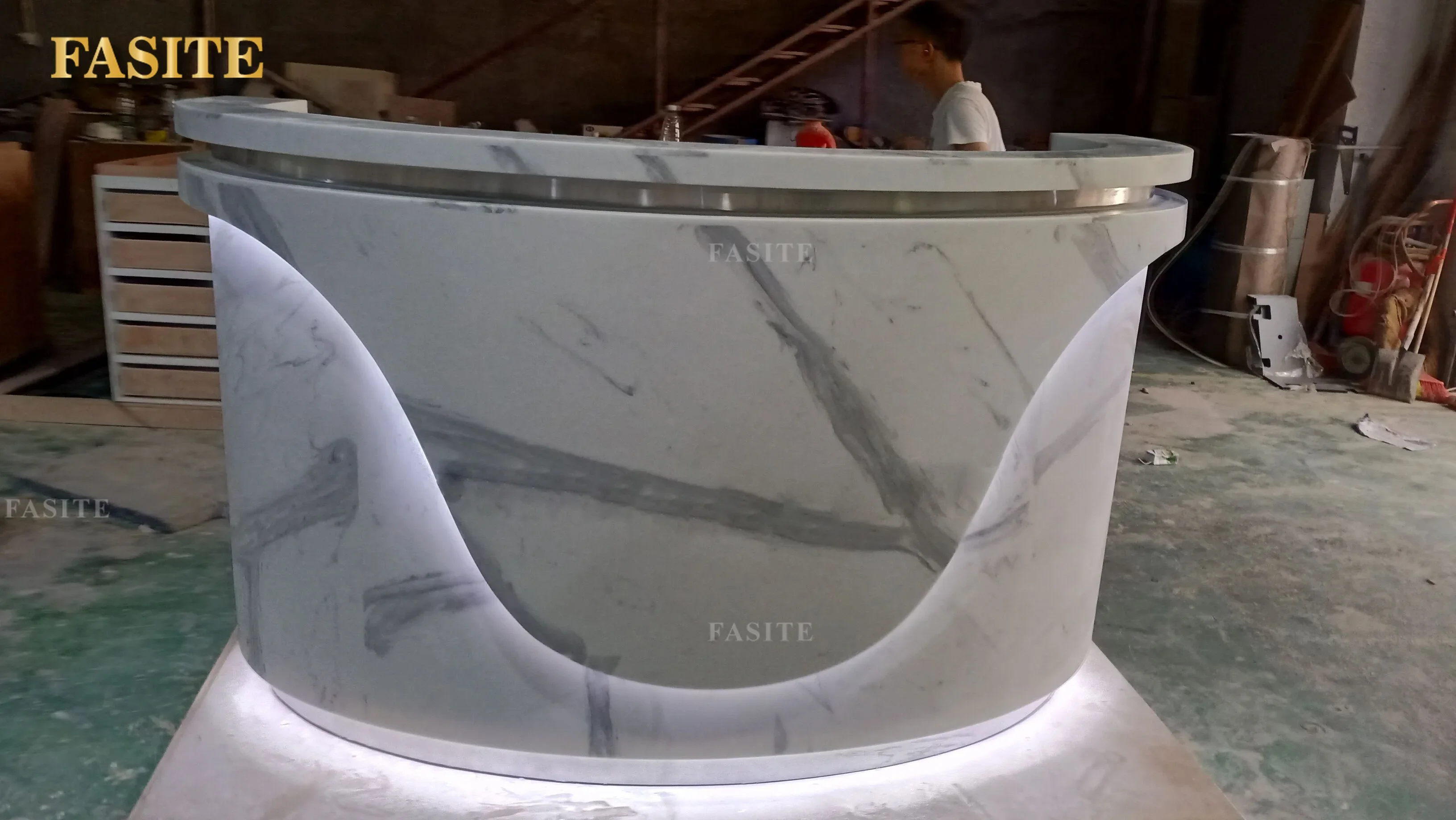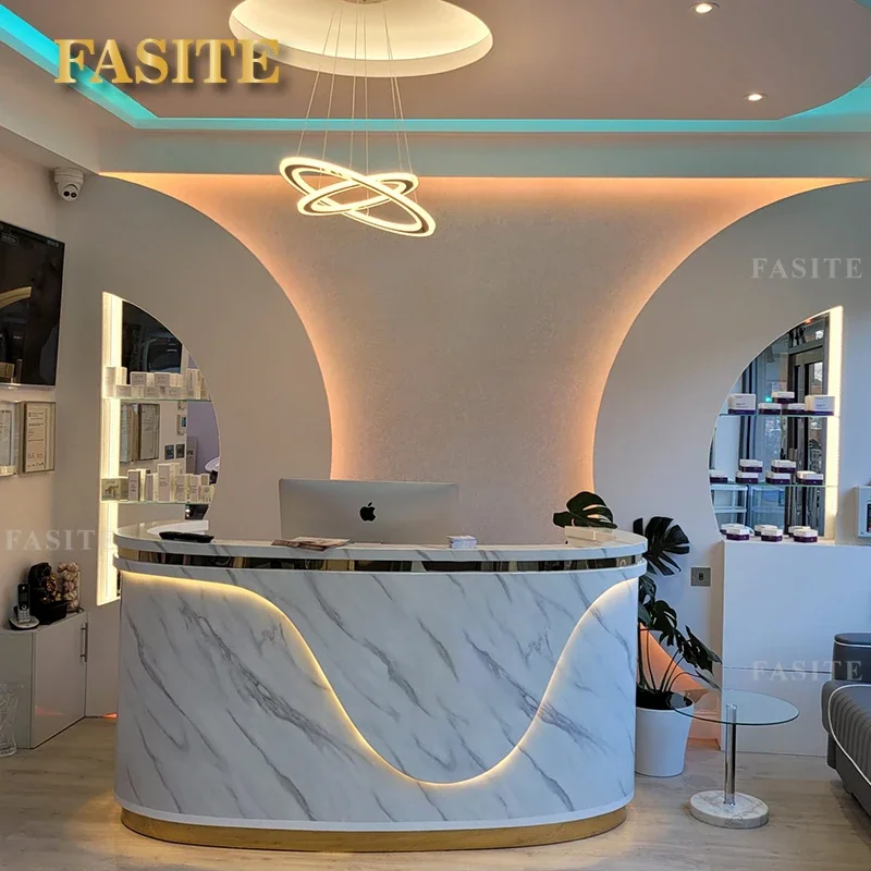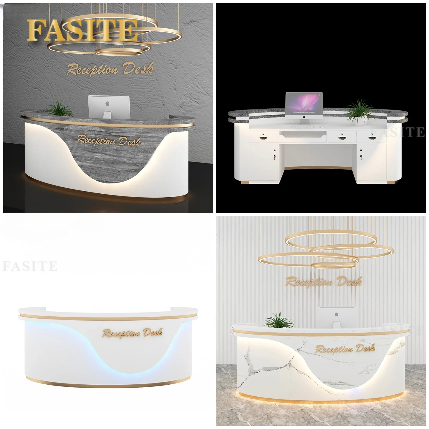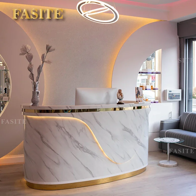 Fashion Commercial Marble Office Furniture White Counter Front Desk Reception Table For Beauty Salon