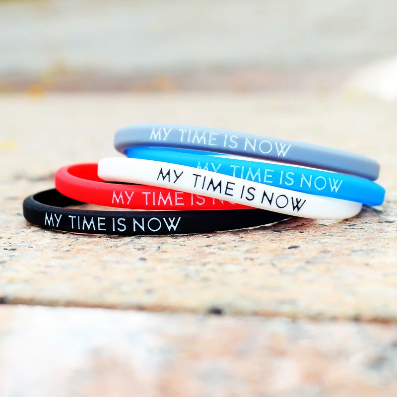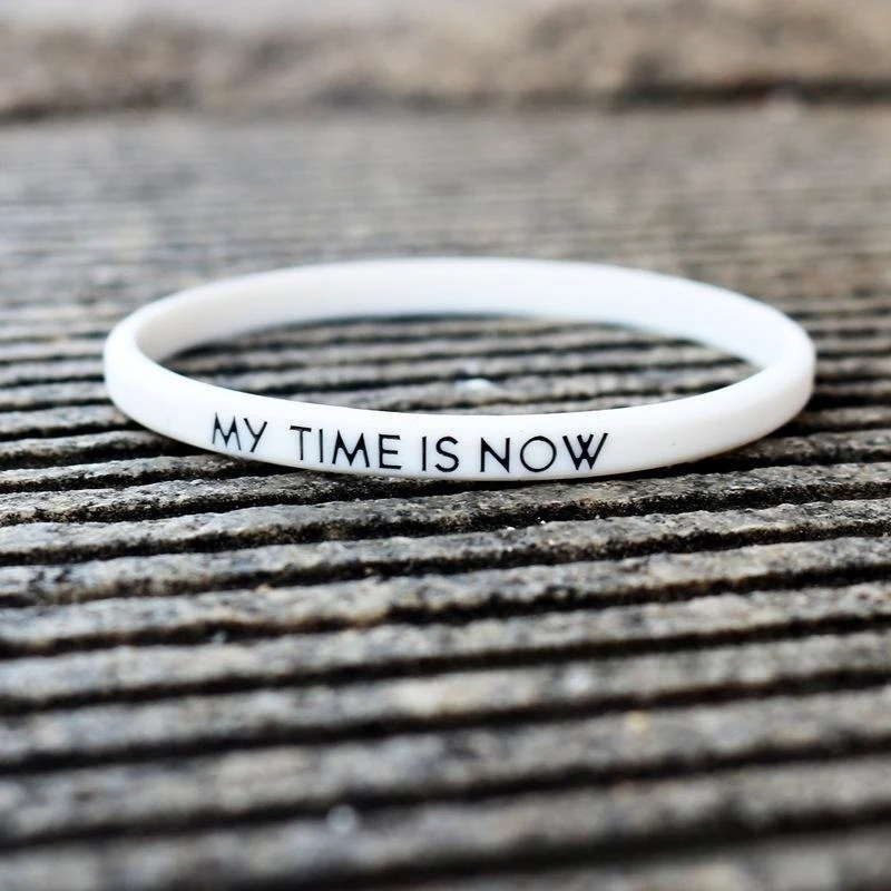 Fashion Couple Bracelet My time is now Men’s and Women’s Silicone Bracelet Wrist 5mm Outdoor Sports Elastic Rubber Bracelet Gift