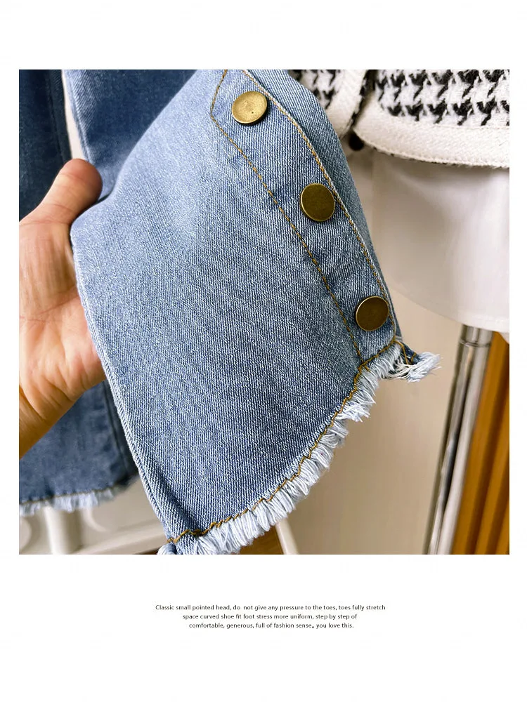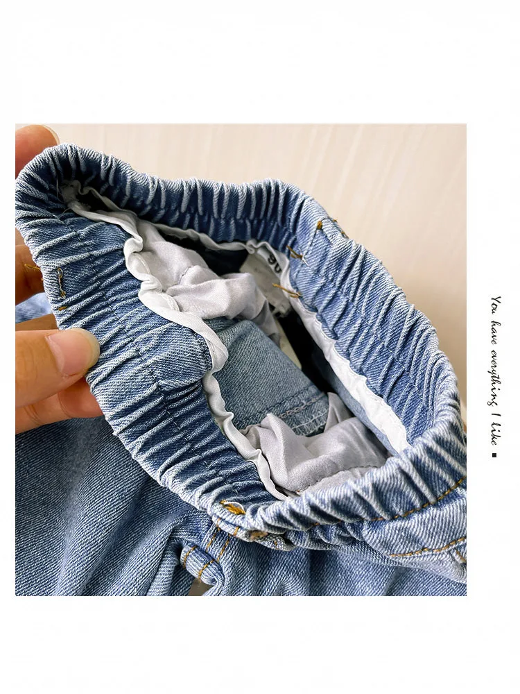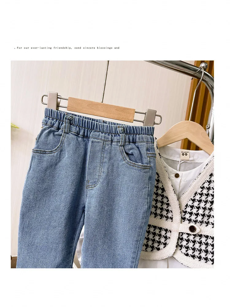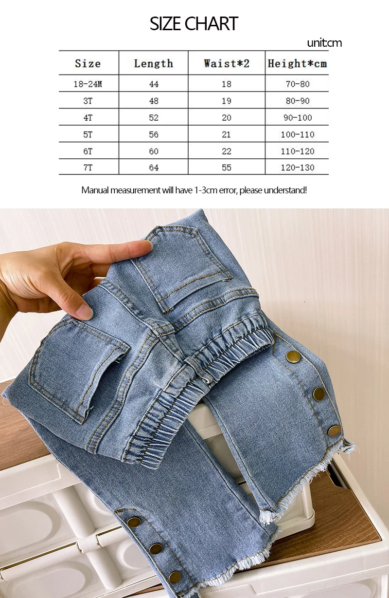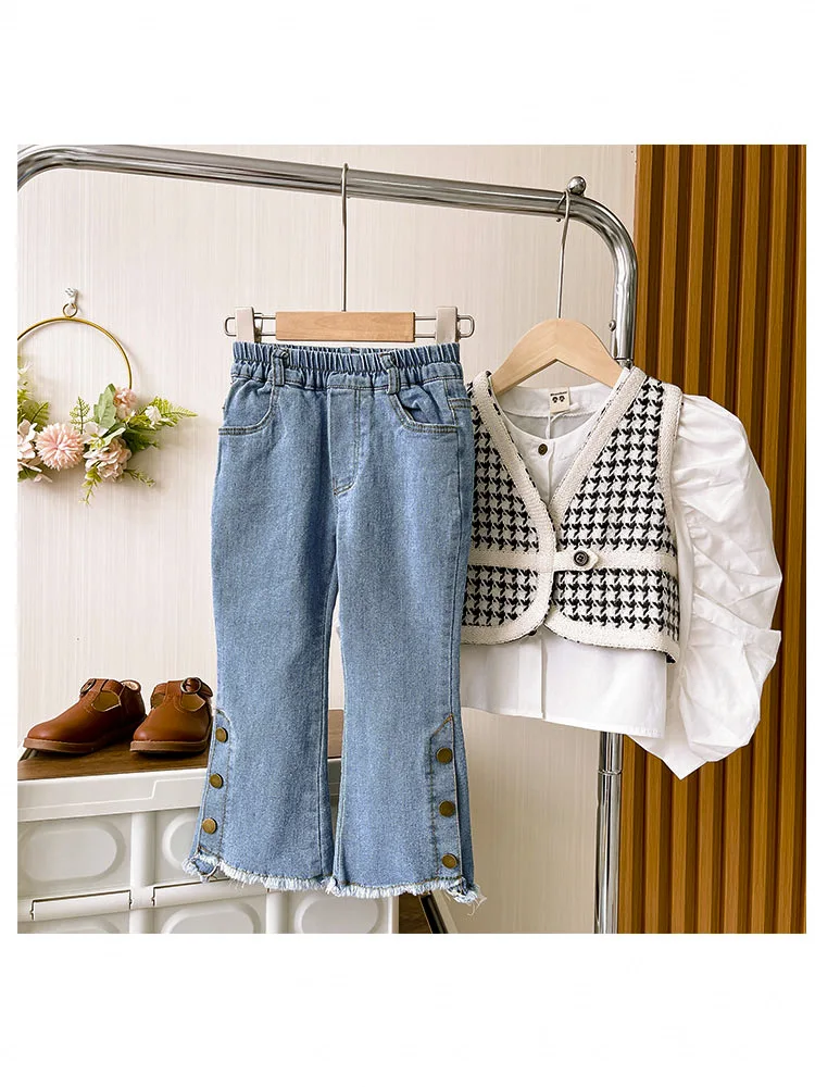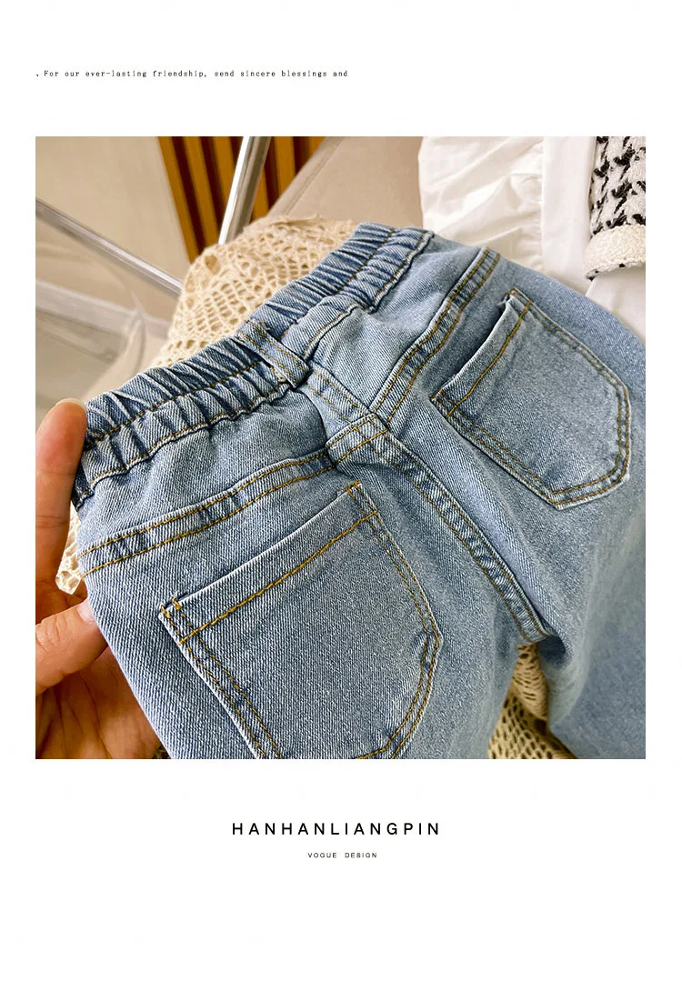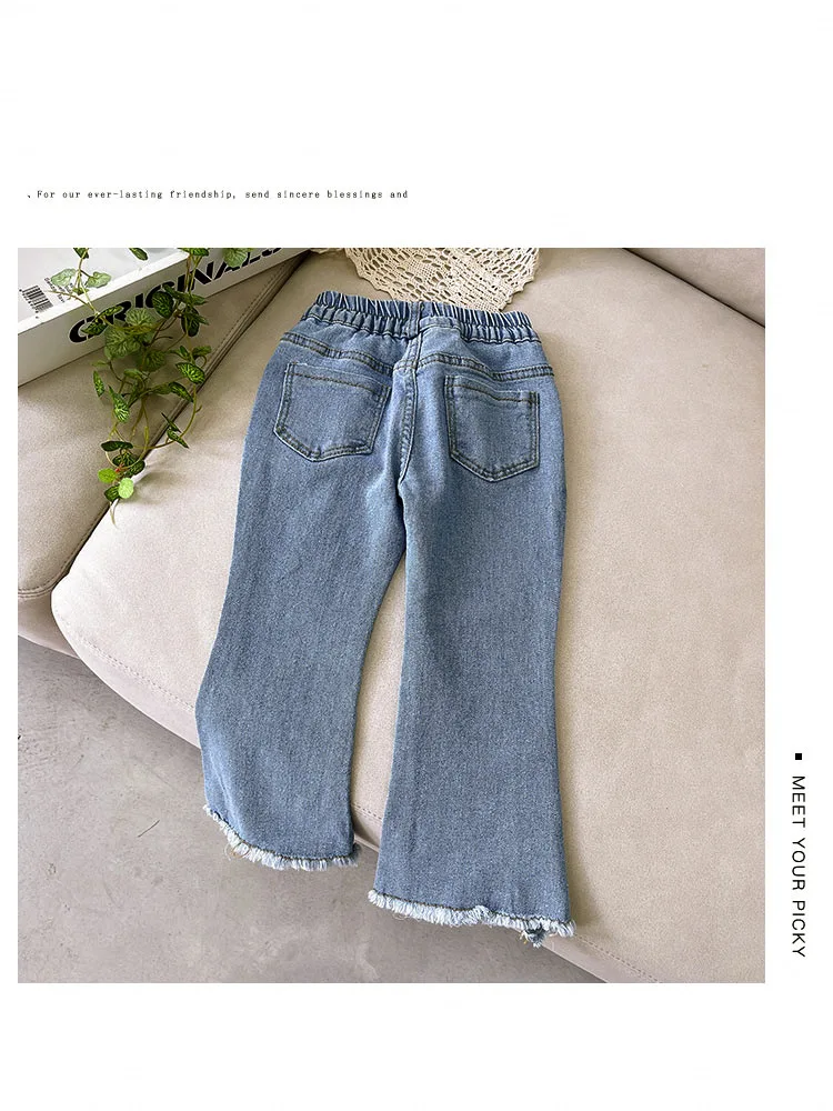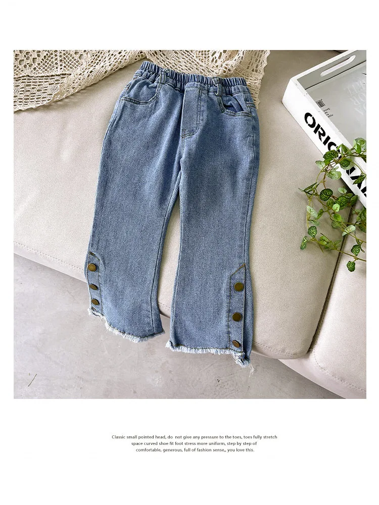 Fashion Girls’ Jeans 2025 Spring New Children’s Slim Flare Pants Korean Kids Baby Side Split Elastic Denim Trousers 2-7Y