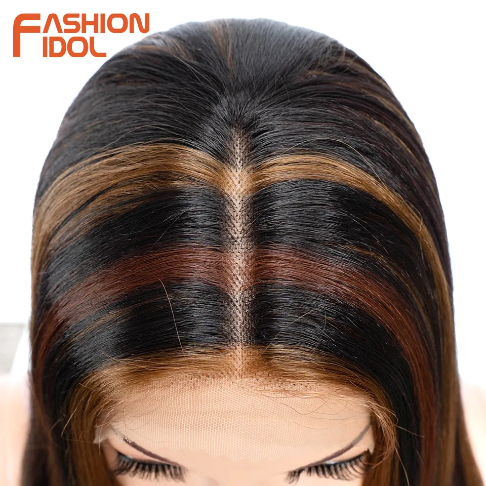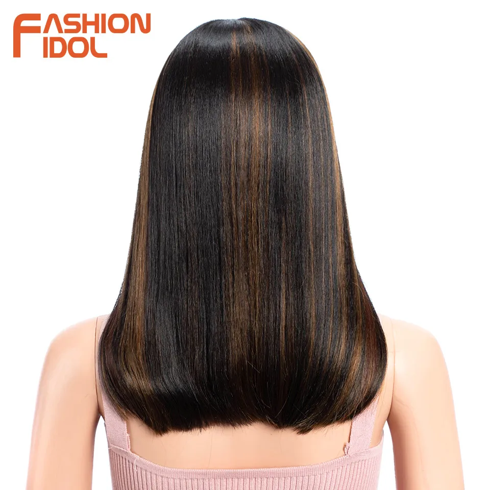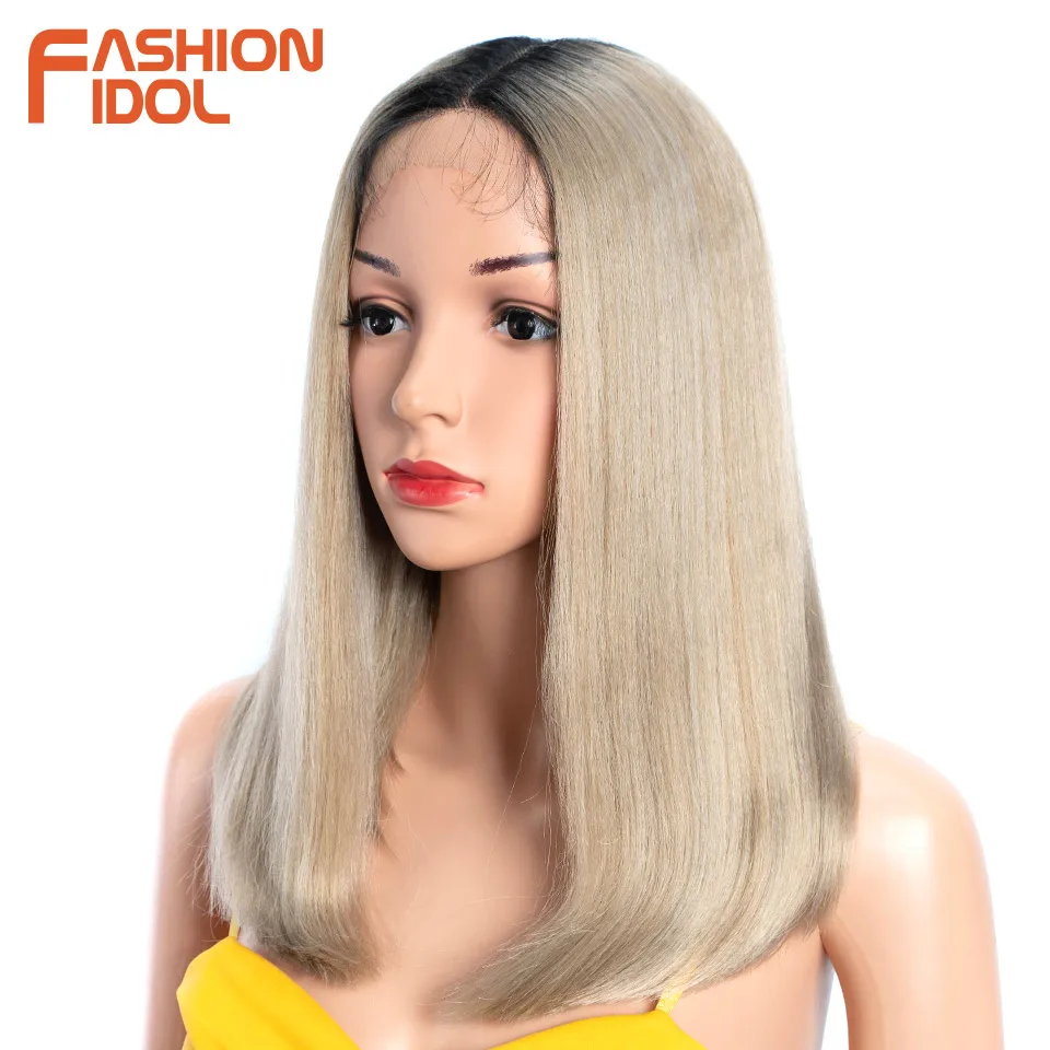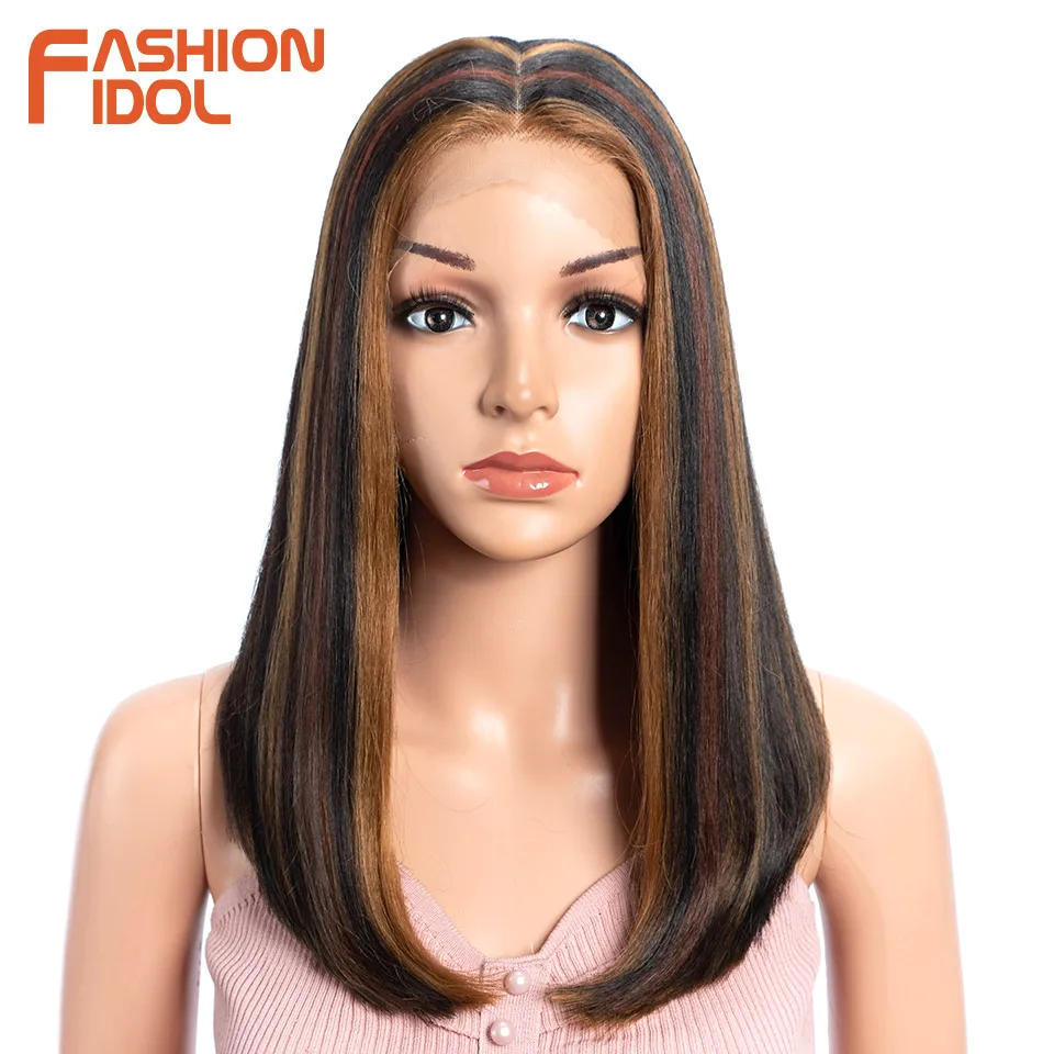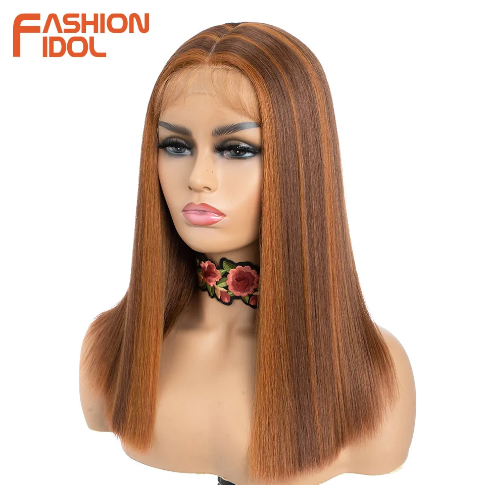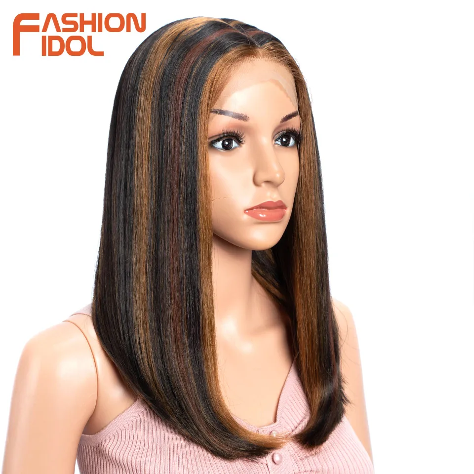FASHION IDOL 14 Inch Lace Front Wig Synthetic Hair Ombre Brown Grey Short Bob Wigs For Black Women Heat Resistant Synthetic Wig