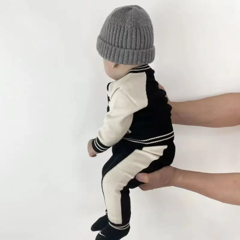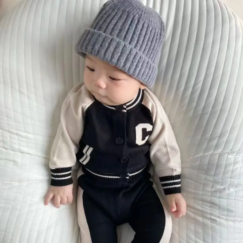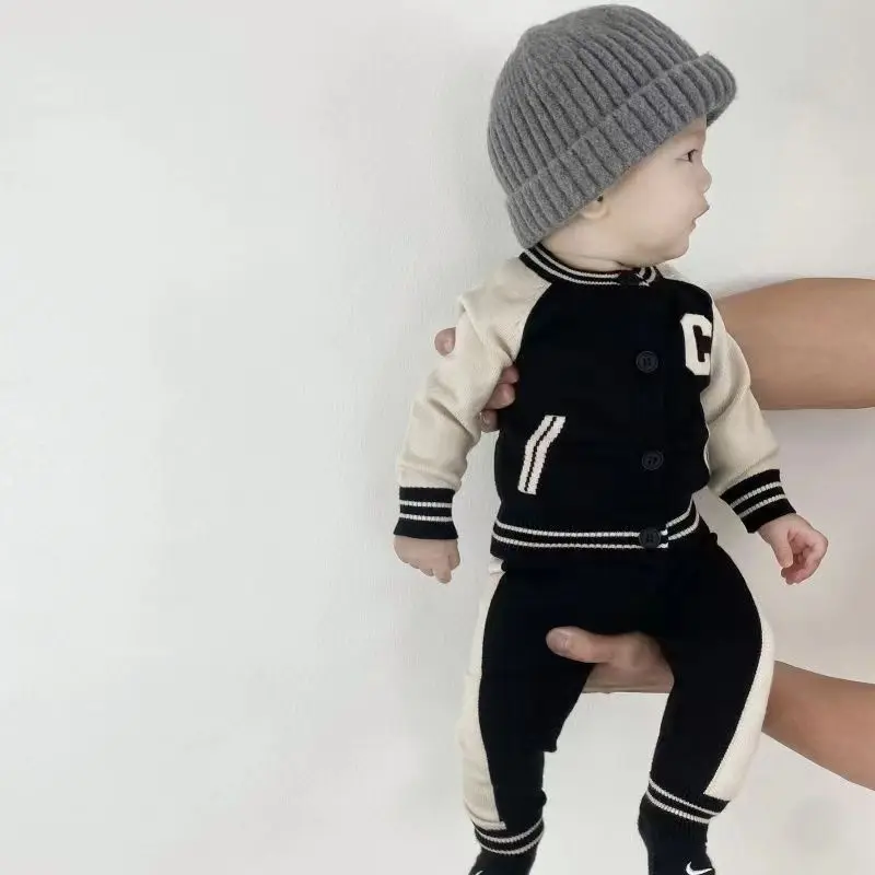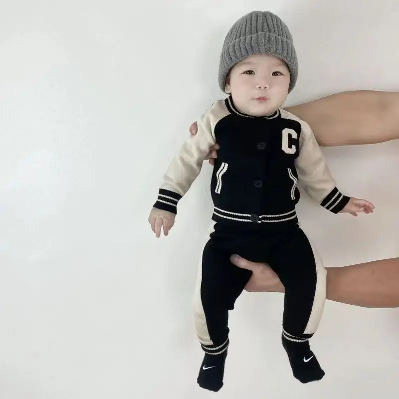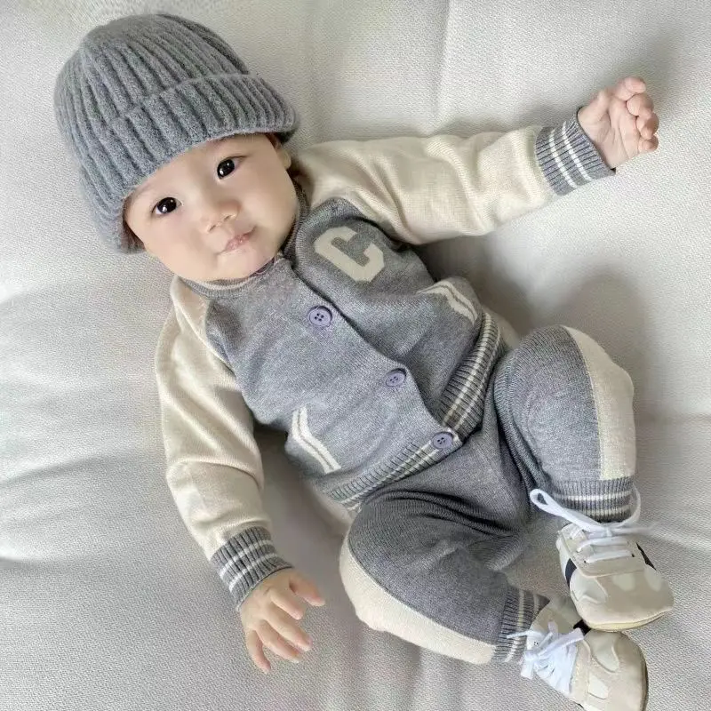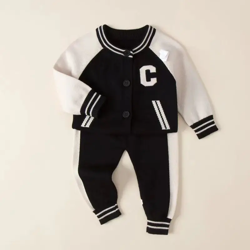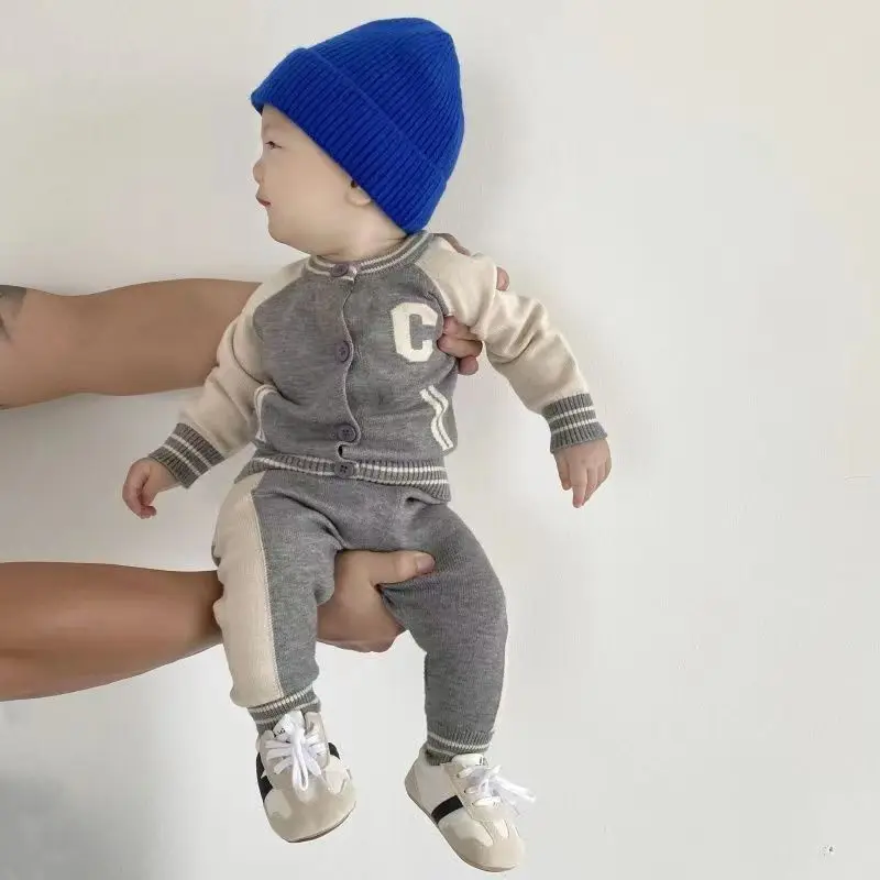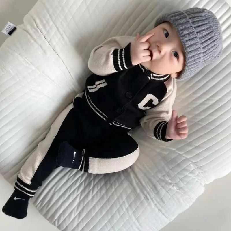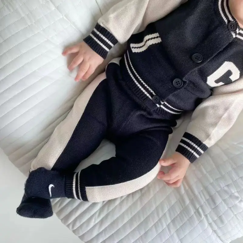 Fashion Letter Knit Baby Clothes Set Autumn Winter Baby Sweaters Knitted 0-2 Year Two-piece Set Baby Girl Outfit Set