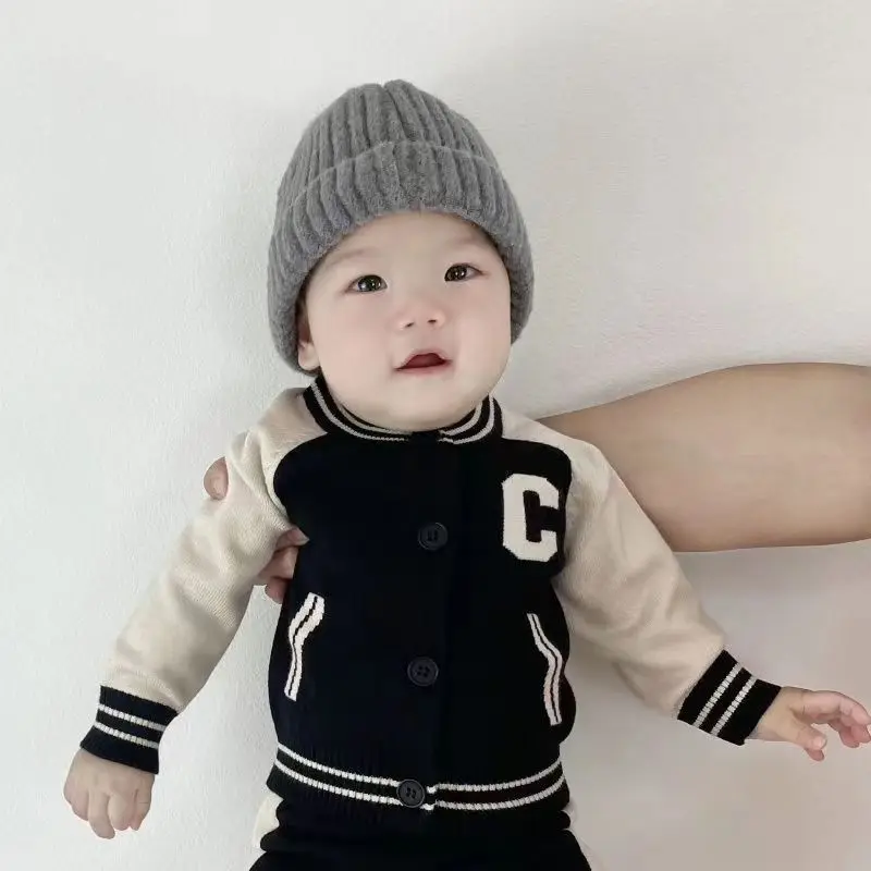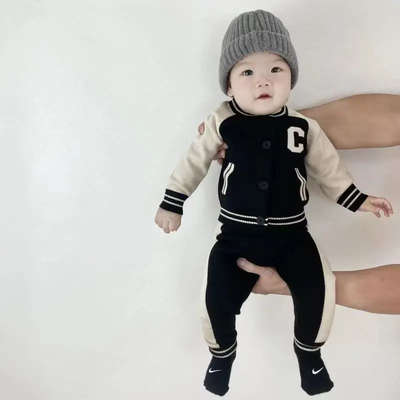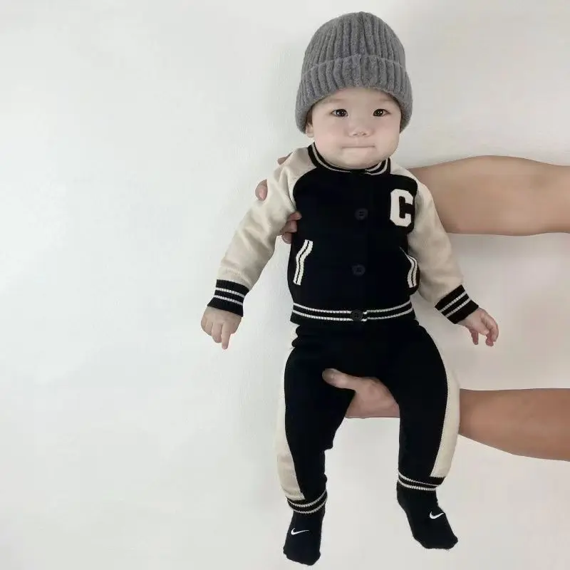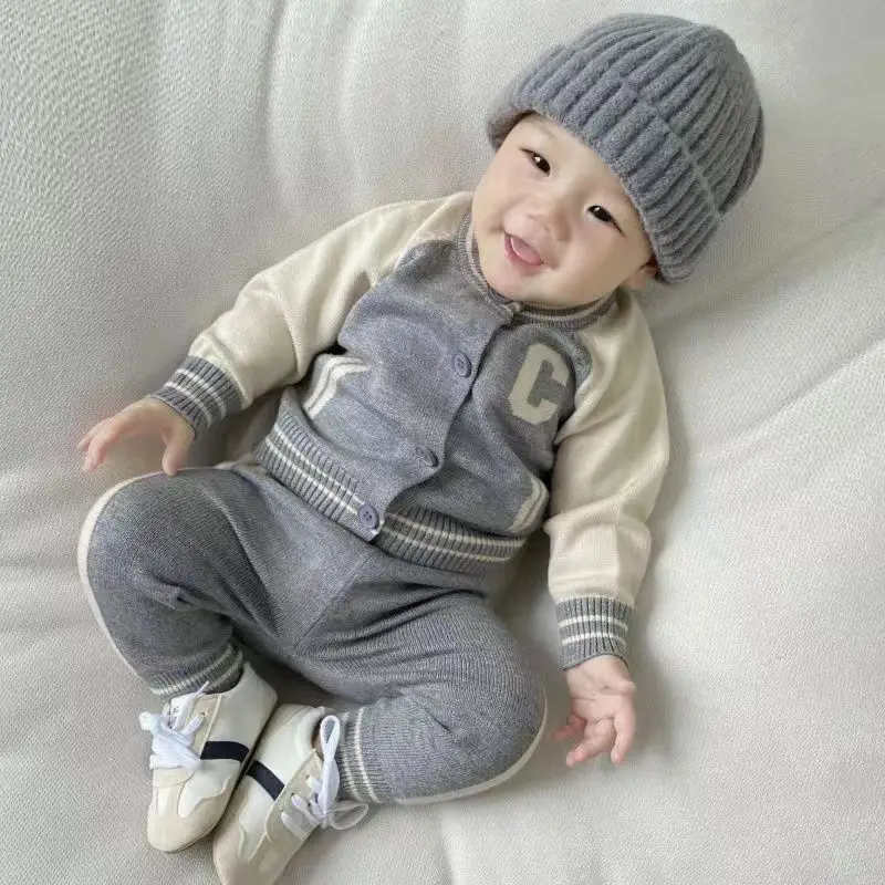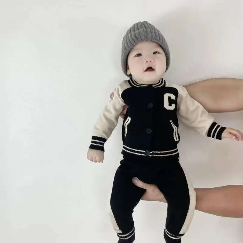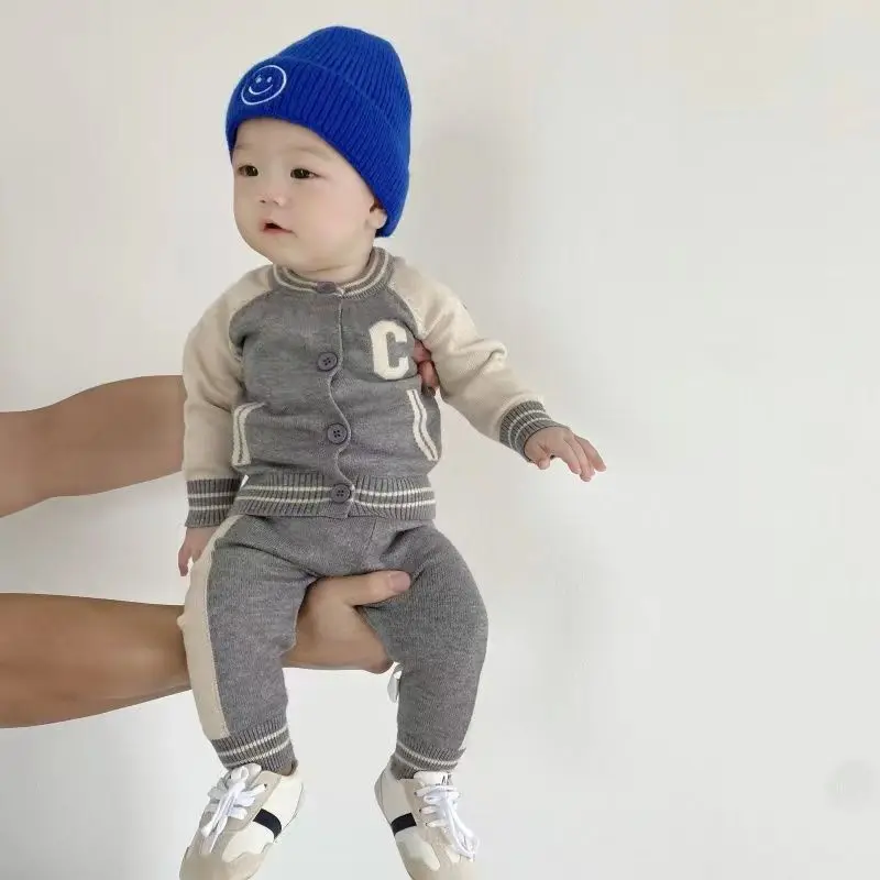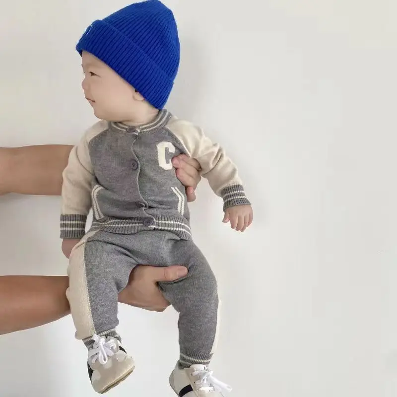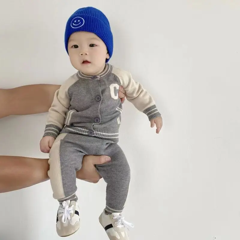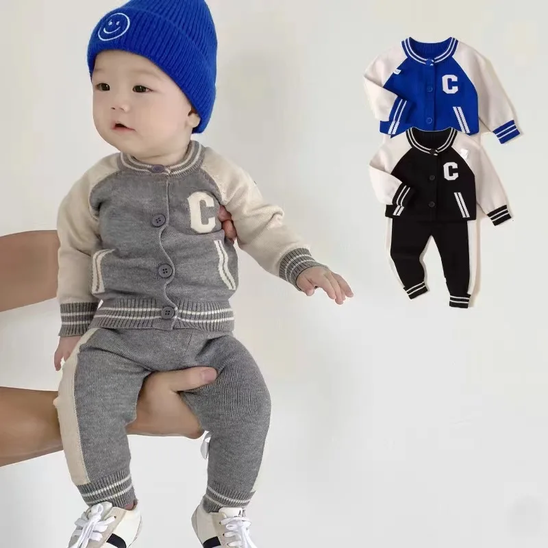 Fashion Letter Knit Baby Clothes Set Autumn Winter Baby Sweaters Knitted 0-2 Year Two-piece Set Baby Girl Outfit Set