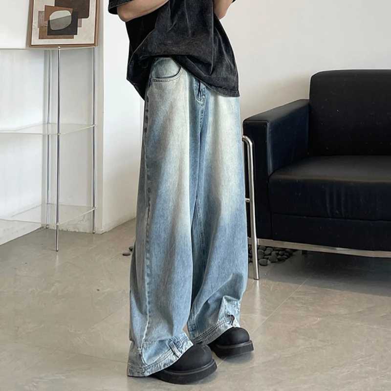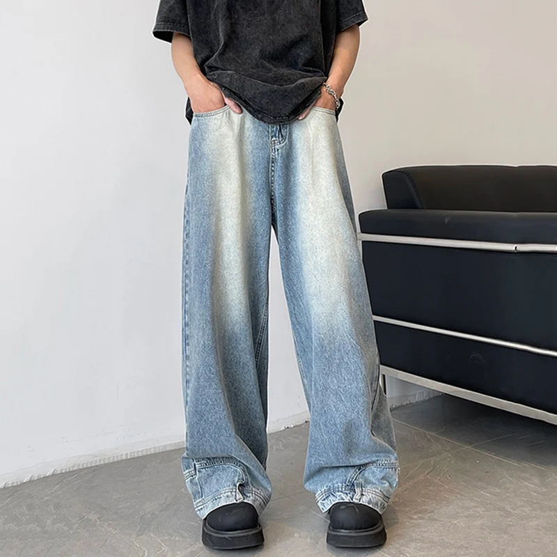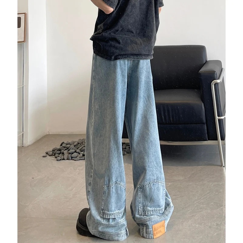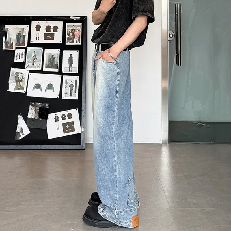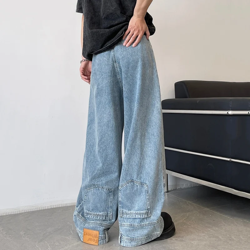 Fashion Men Designer Wide Leg Jeans Male Chic Daily Party Casual Denim Pants Baggy Straight Aesthetic Streetwear Denim Trousers