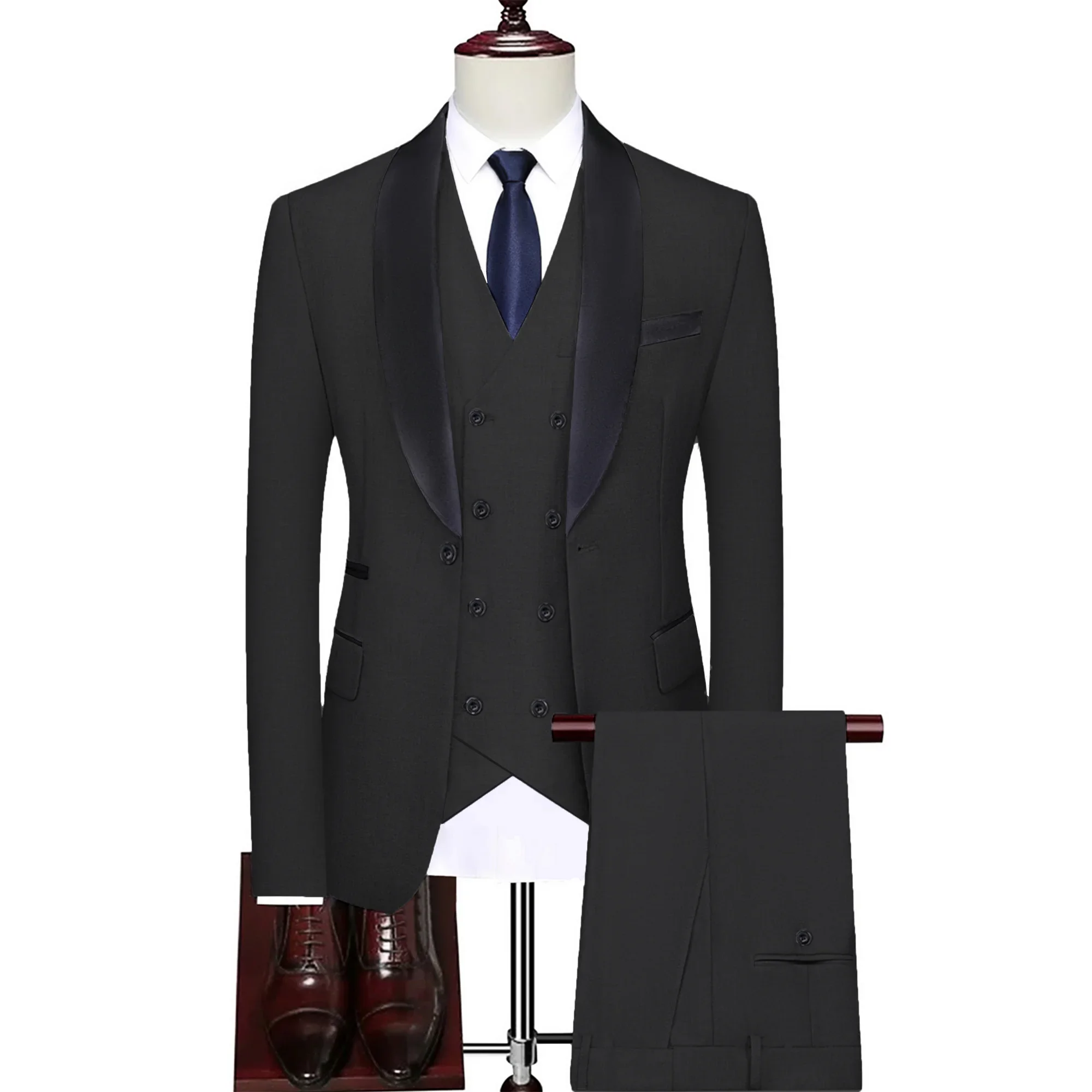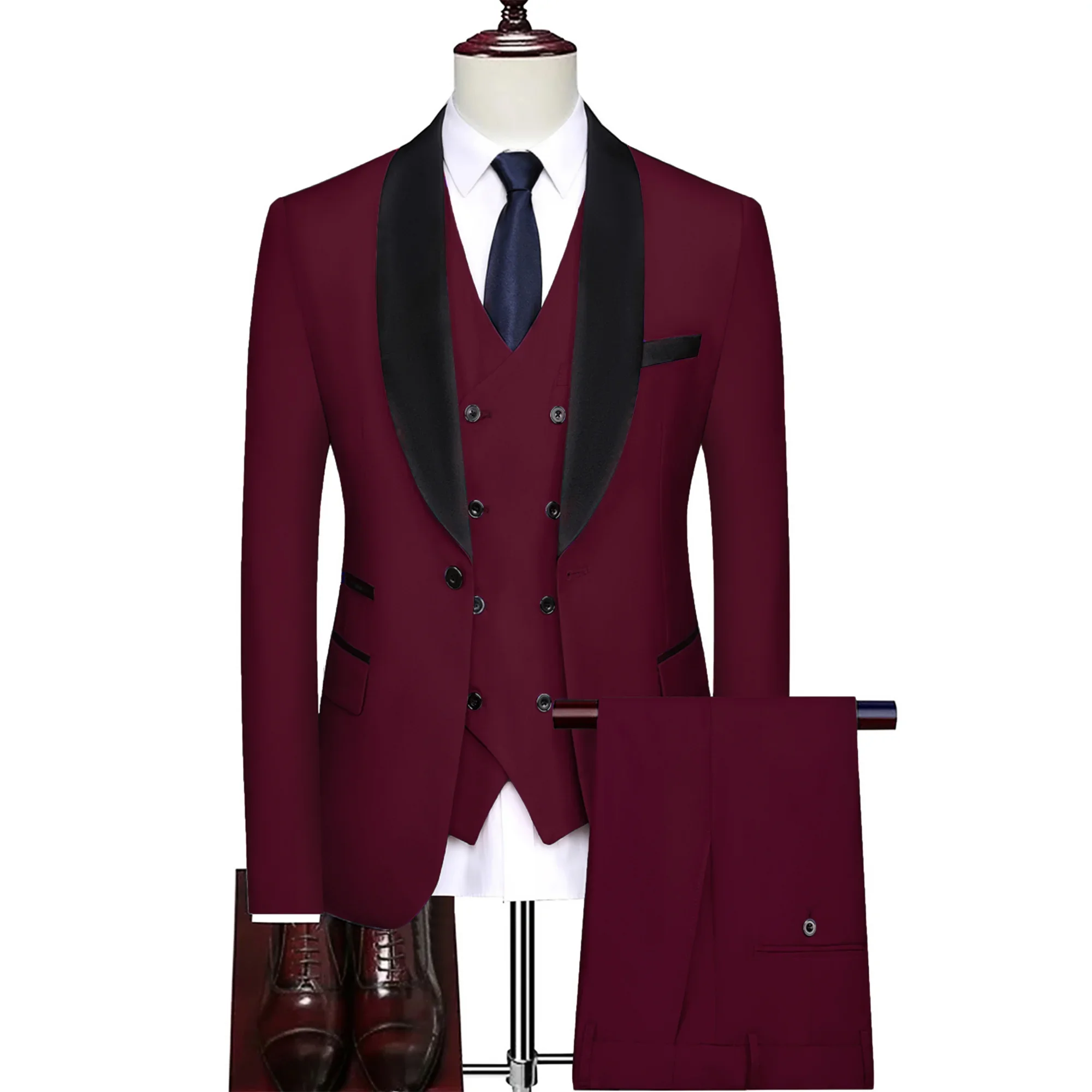 Fashion men’s suit Business casual boutique single breasted suit jacket trousers vest 3 sets