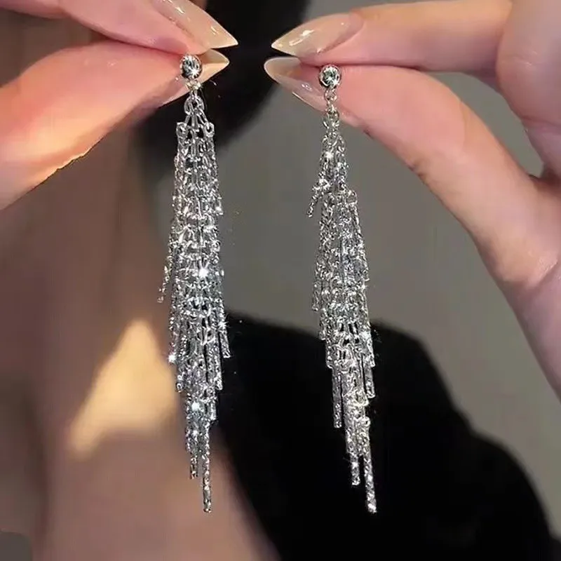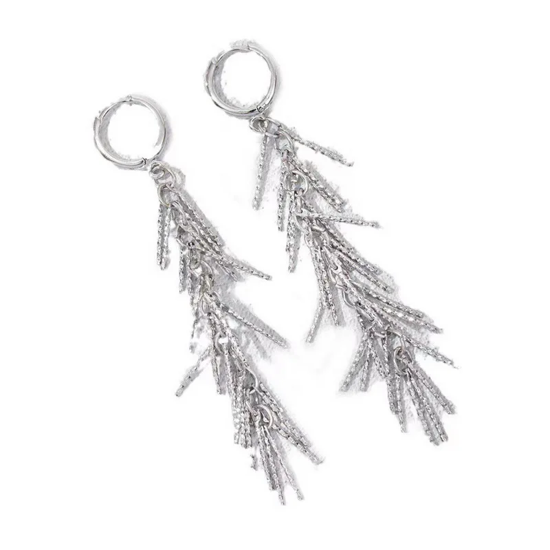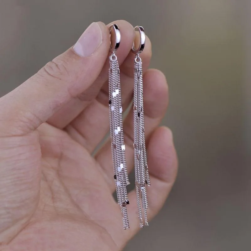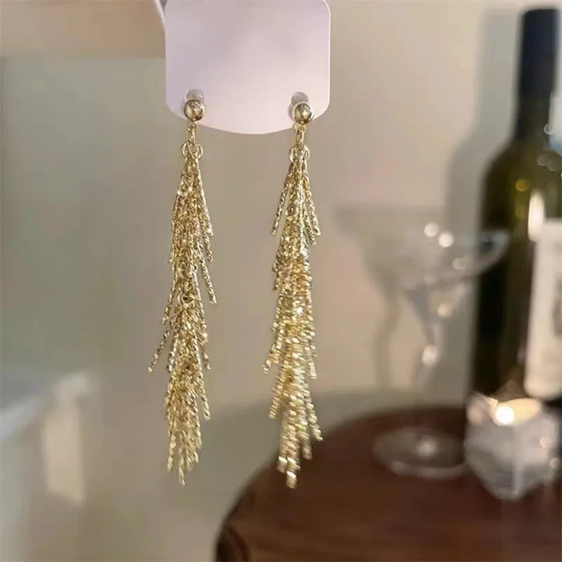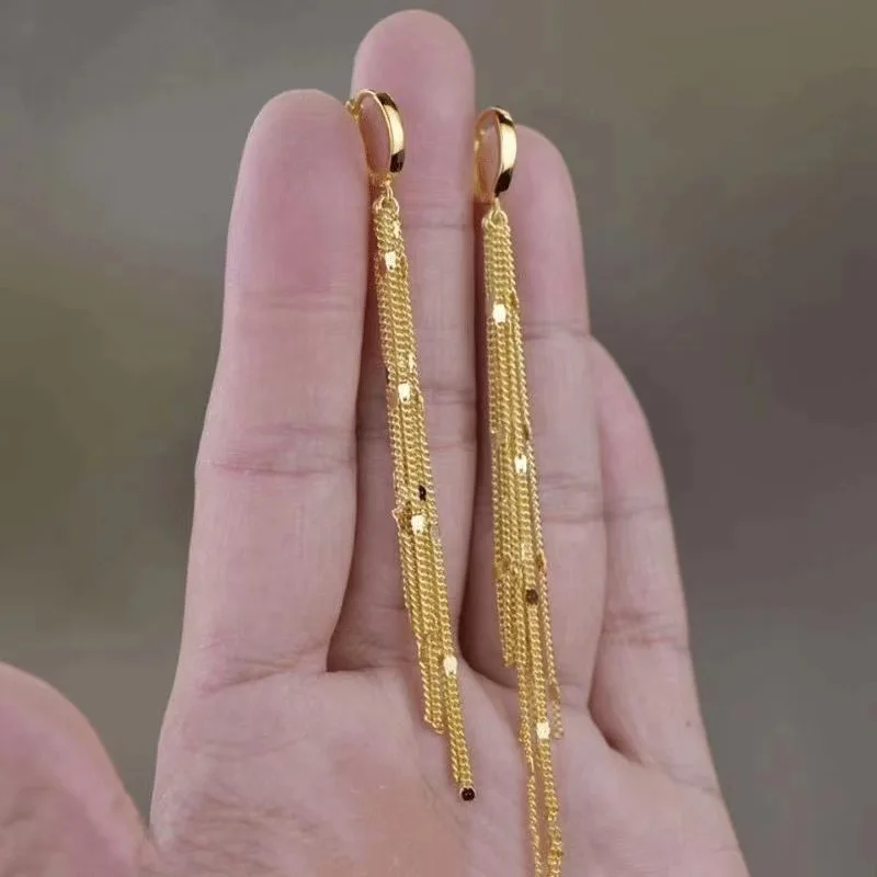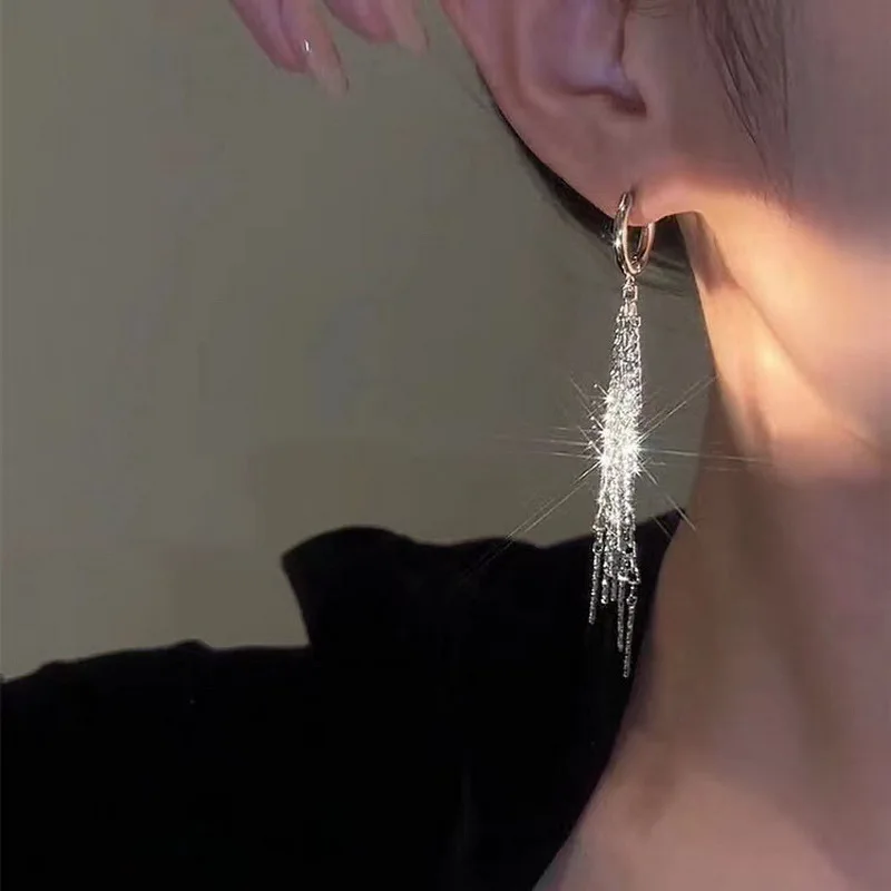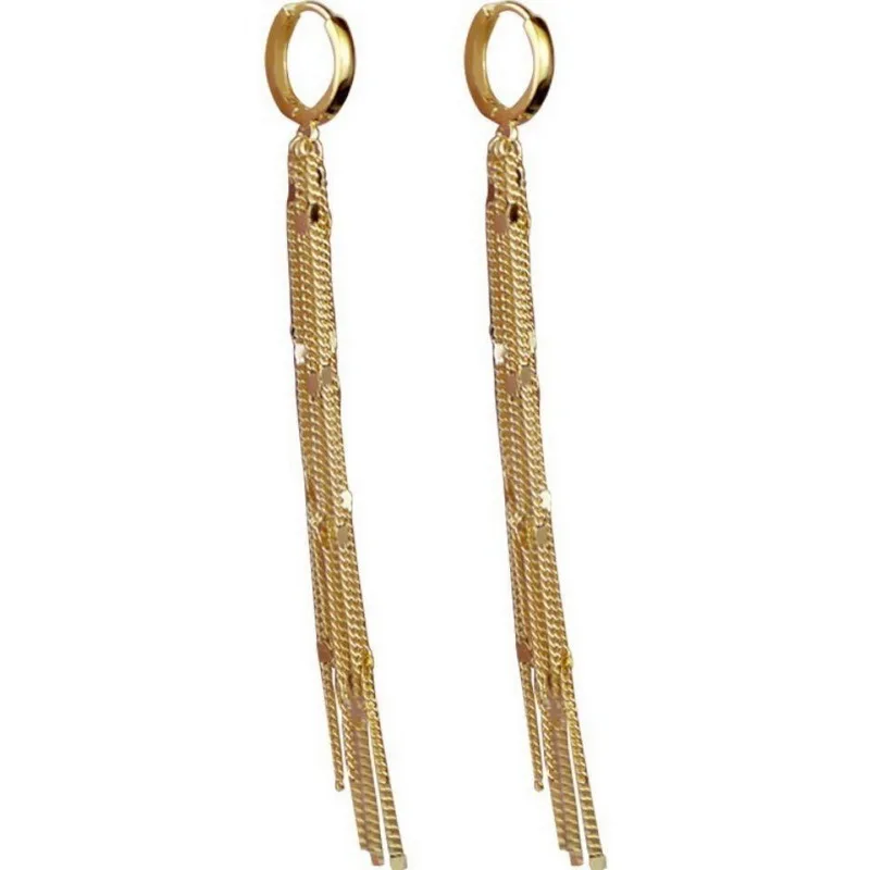 Fashion Shiny Long Tassel Chain Round Circle Hoops Earrings For Women Geometric Gold Color Metal Earrings Wedding Jewelry Gift