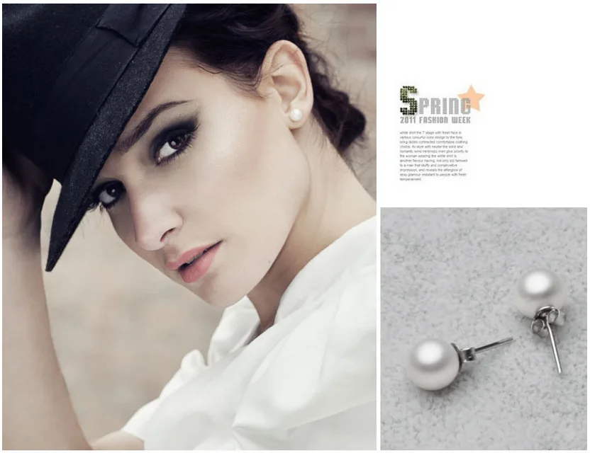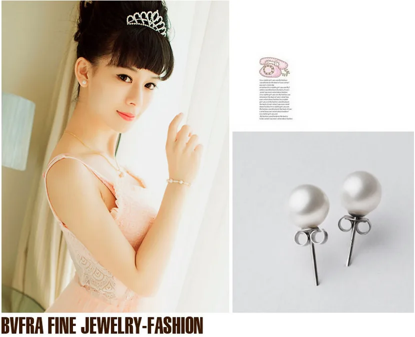 Fashion Silver Color Elegant Beauty, Round White Pearl Stud Earrings Women Inlaid Zircon Engagement Jewelry Brincos