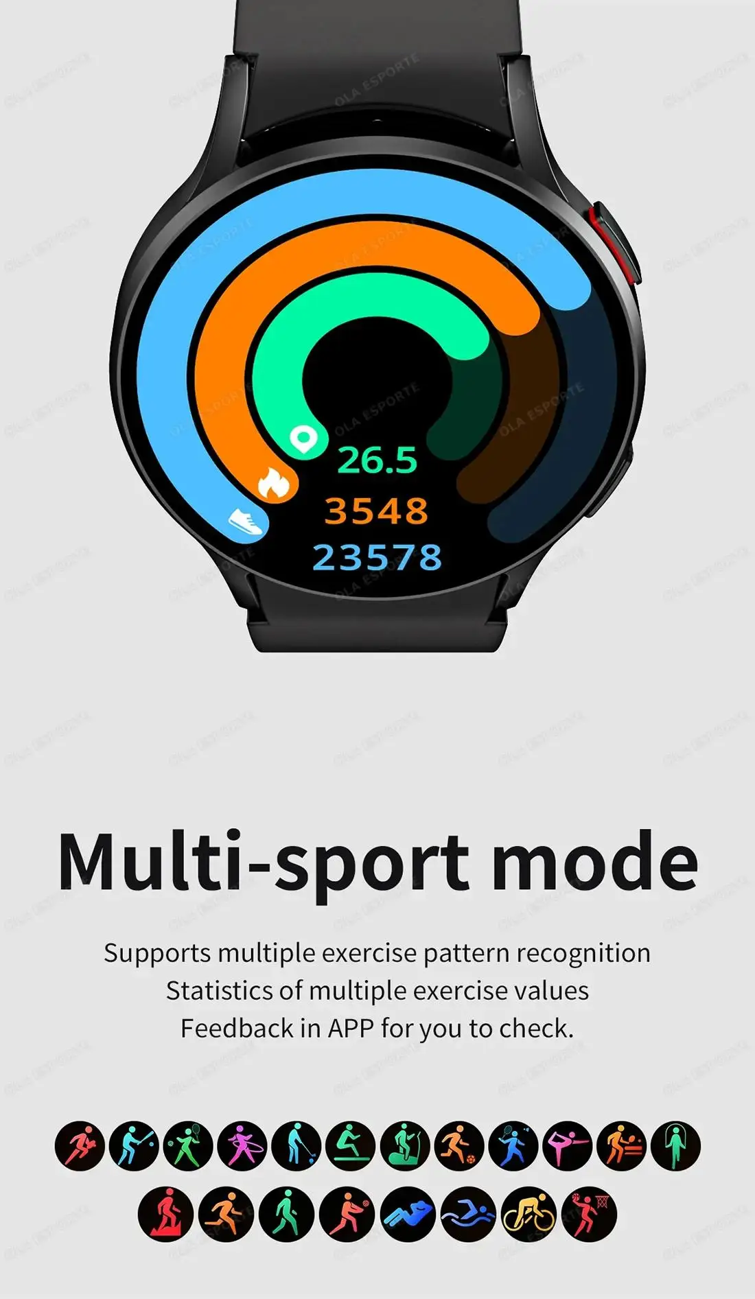 music player (with local playback), recording function, step counting, heart rate,