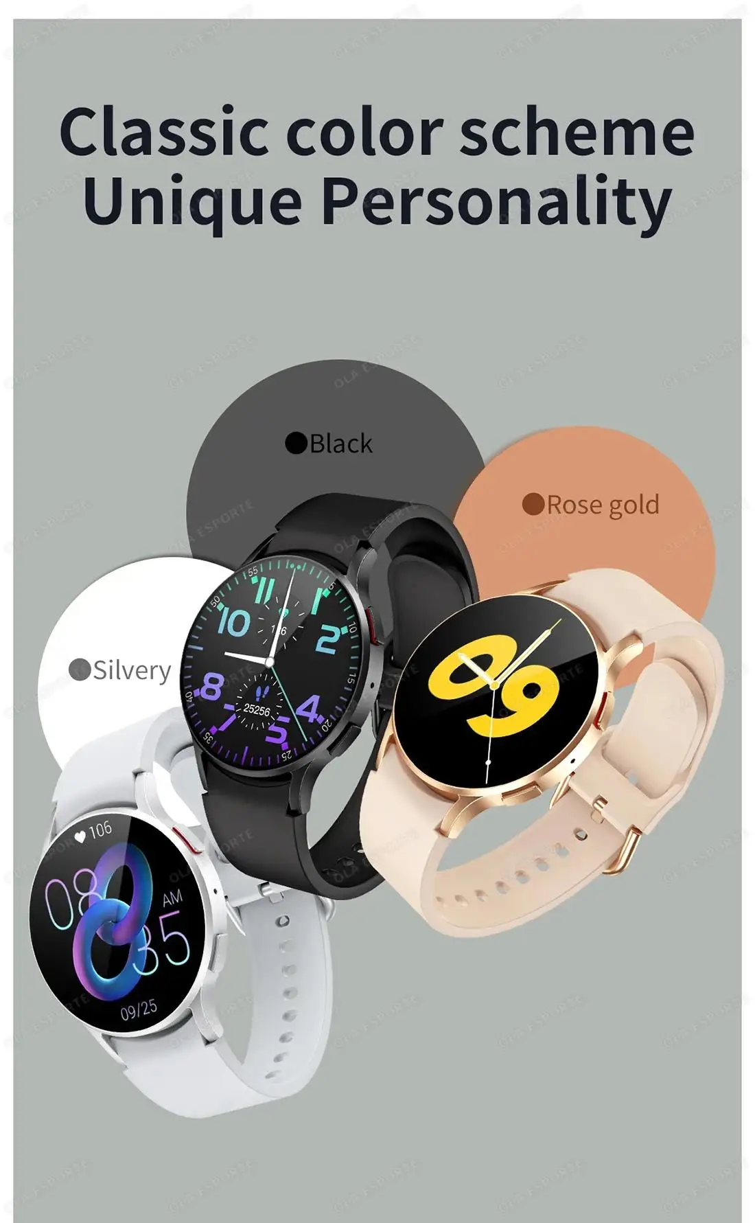 support global accurate weather forecast, dialing, support caller address book display, Bluetooth call, screen time, do not disturb mode, menu style, language switching, APP QR code, sound Settings, power off, device search, timer, stopwatch, alarm clock, settings,