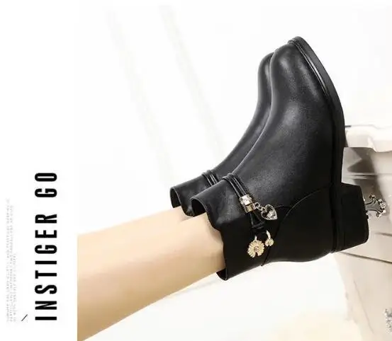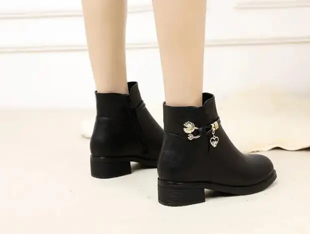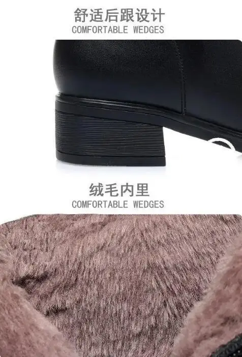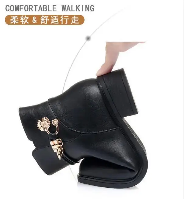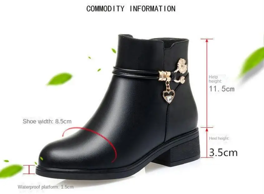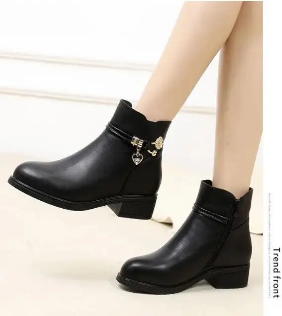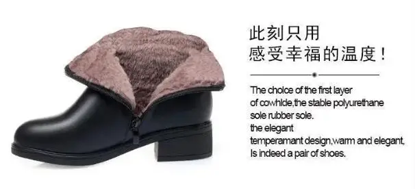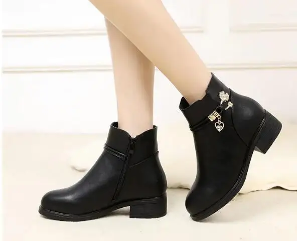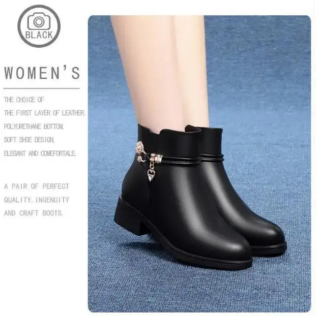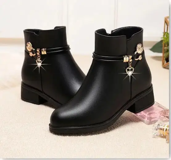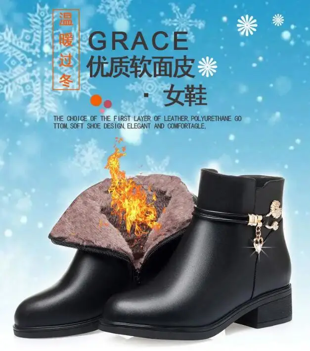 Fashion Soft Leather Mother Cotton Shoes Autumn Winter Middle Heel Rhinestone Womens Snow Boots Comfortable Soft Sole Short Boot