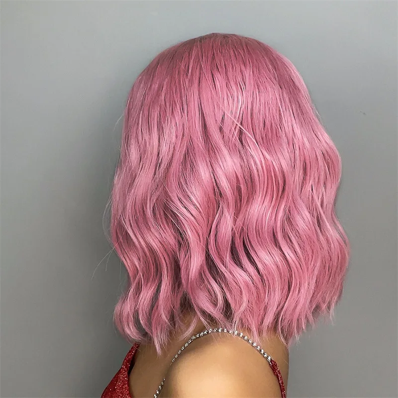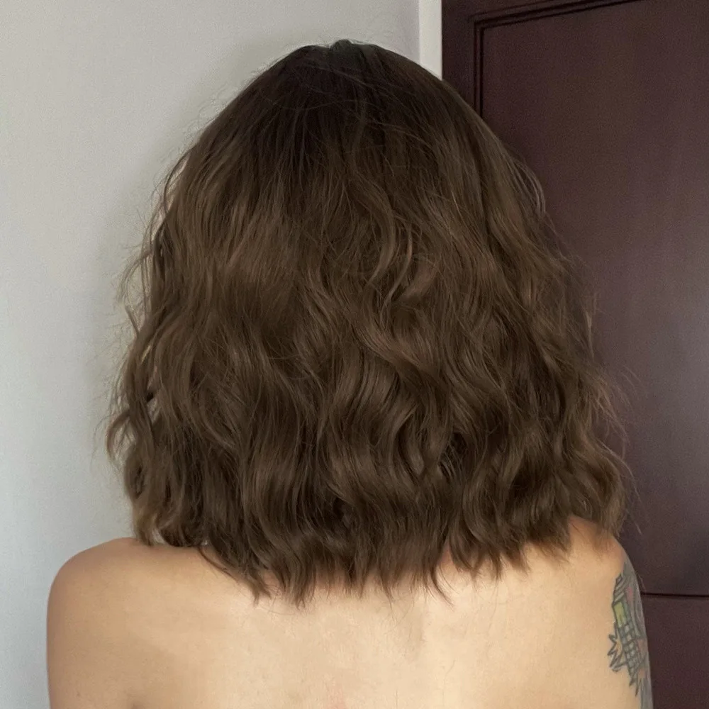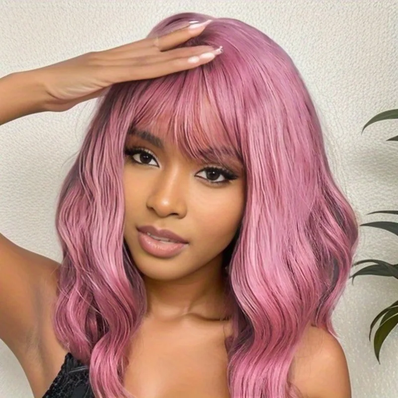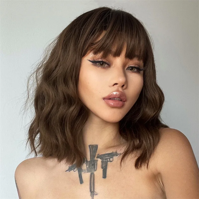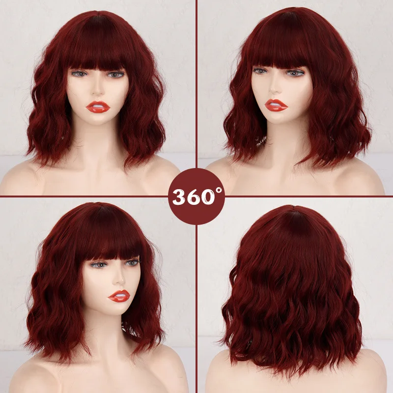 Fashion wig Women’s mid-length curly hair air bangs Burgundy shoulder length corn perm synthetic fiber wig set