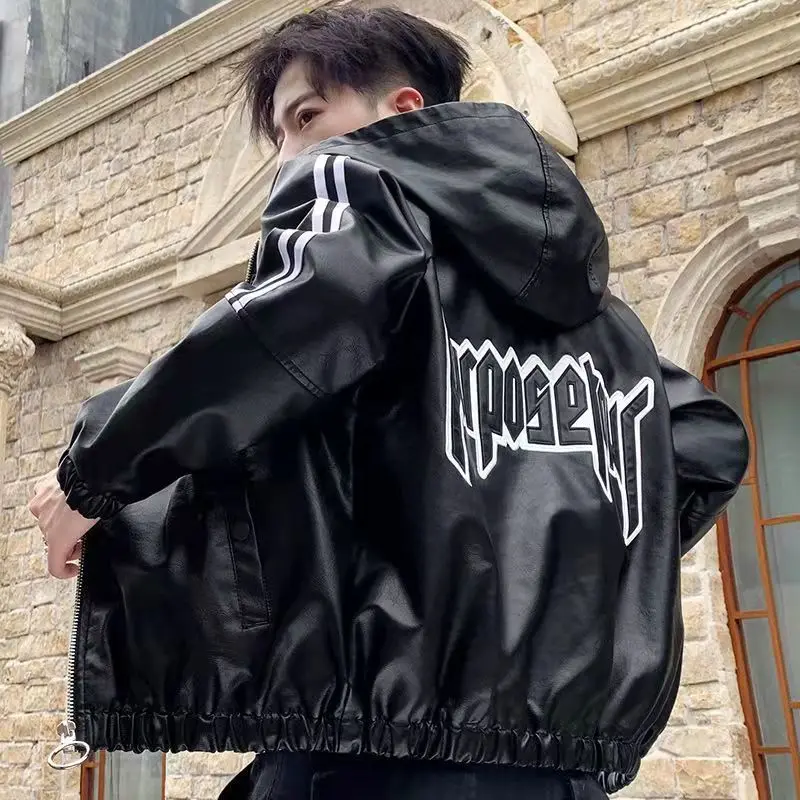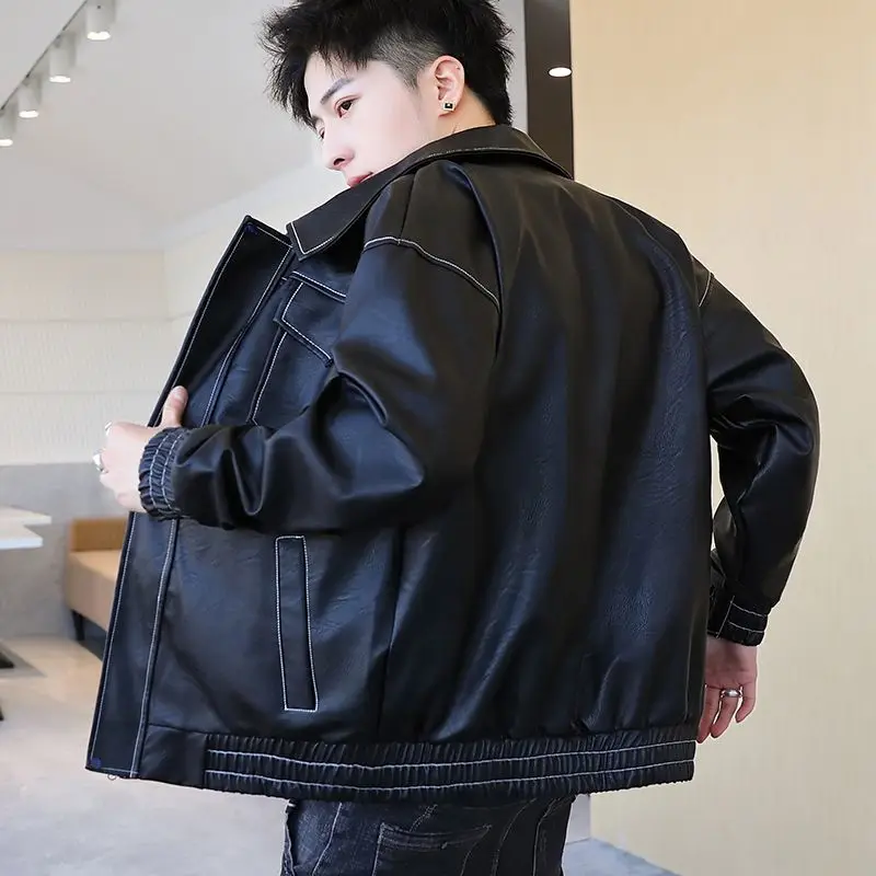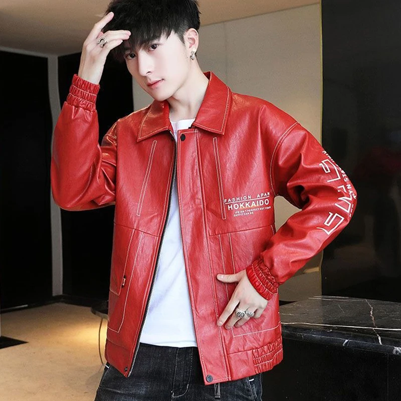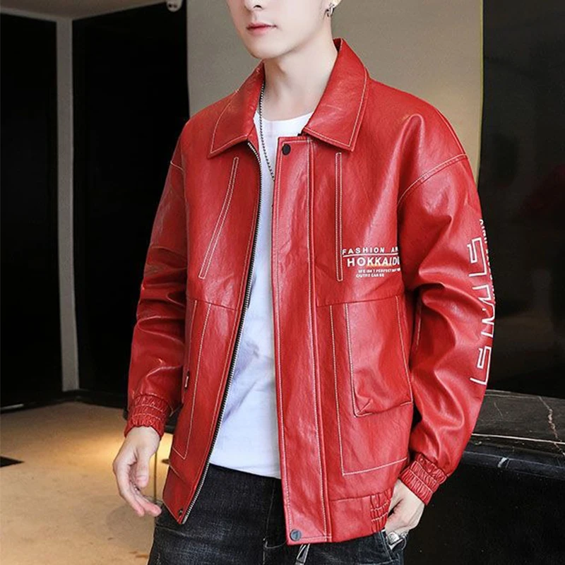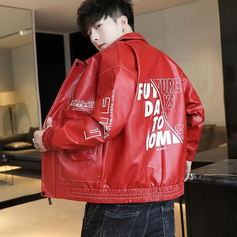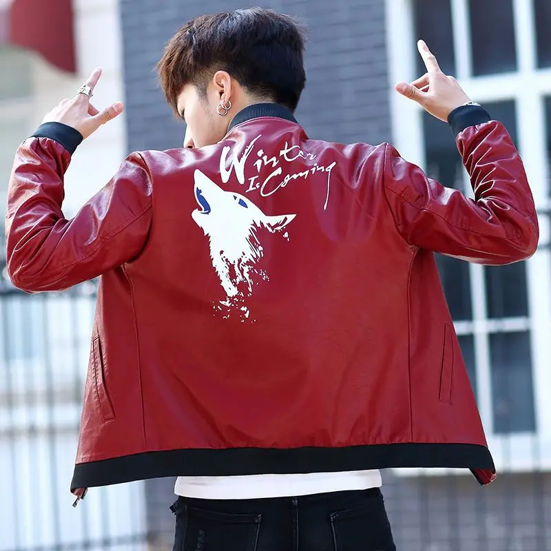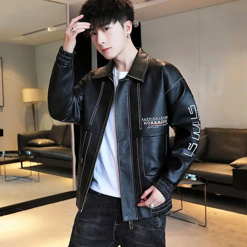 Fashionable Leather Jacket Autumn Winter New Coat Korean Style 2024 Top Trendy Printed Lapel Plus Velvet Motorcycle Clothes