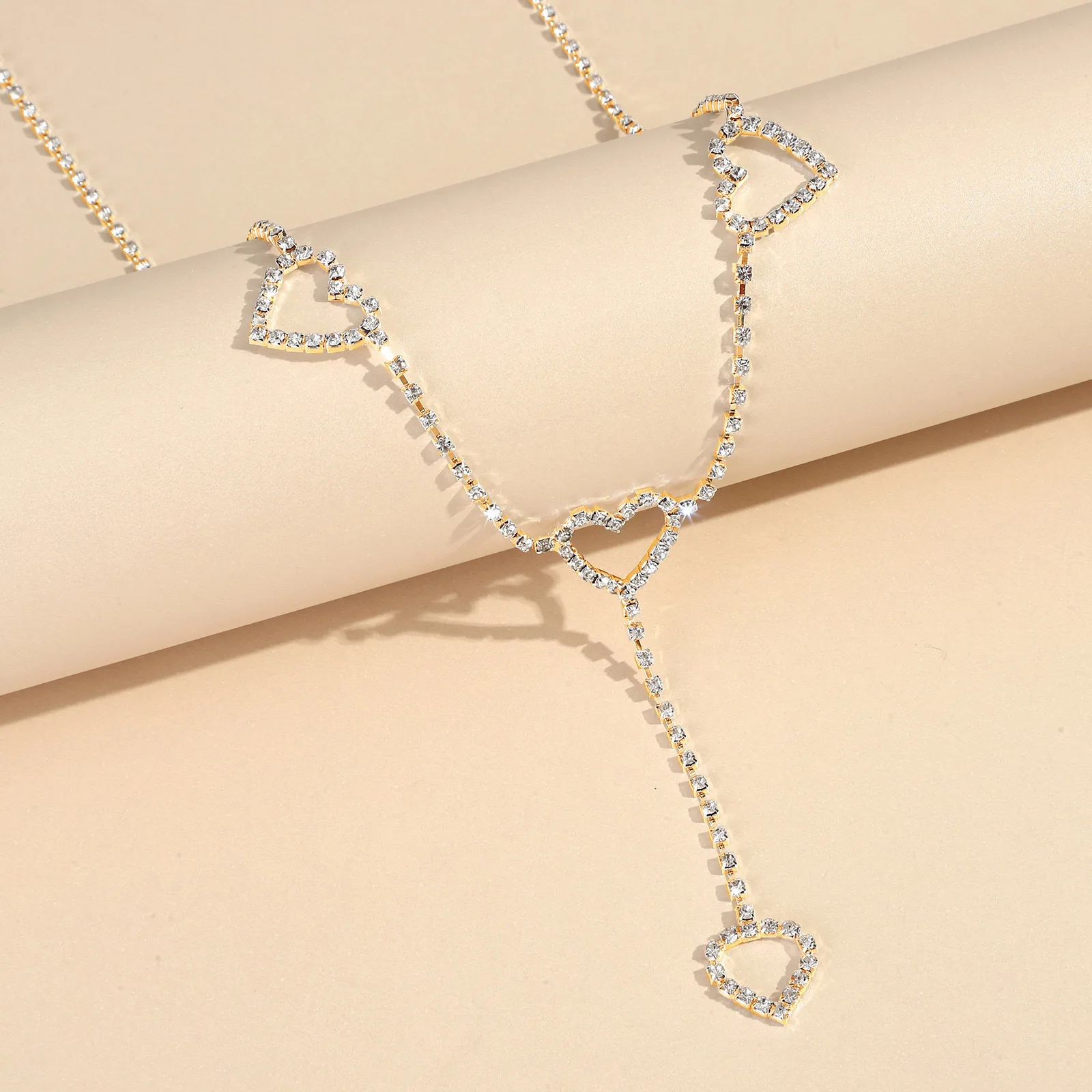 Fashionable Single-layer Heart Pendant Rhinestone Waist Chain Street Photography Women’s Body Chain Jewelry