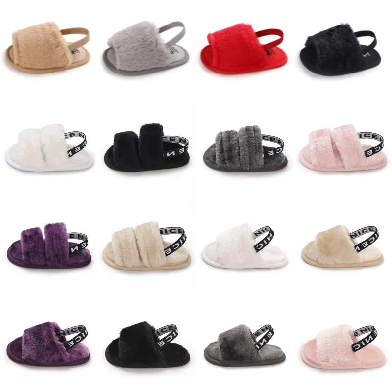 Fashionable Soft Classic Women’s Baby Slippers Sandals Breathable Baby Fur Leather Shoes Simple Elastic Sandals Princess