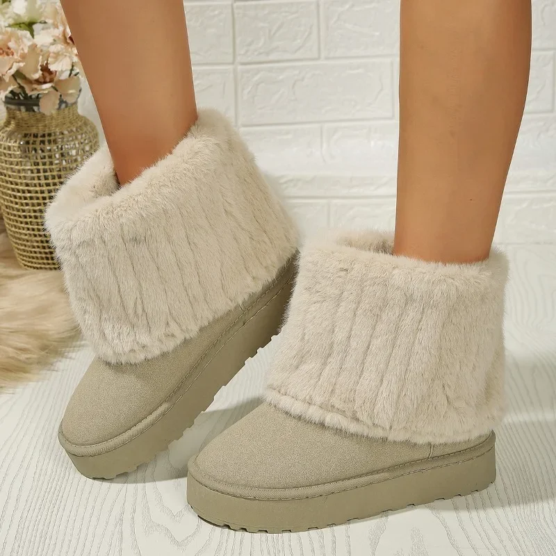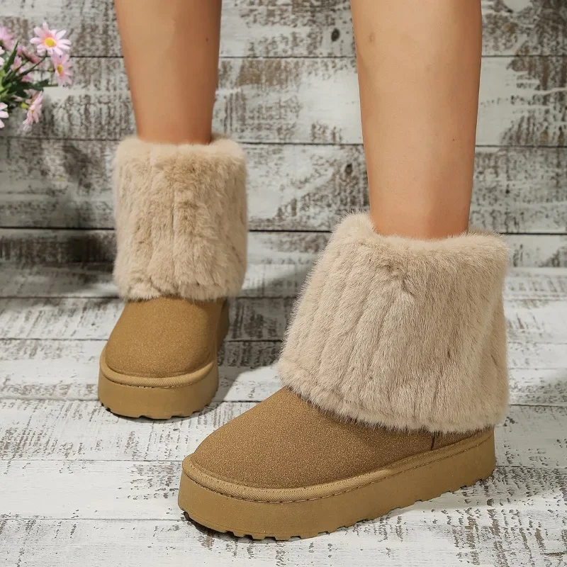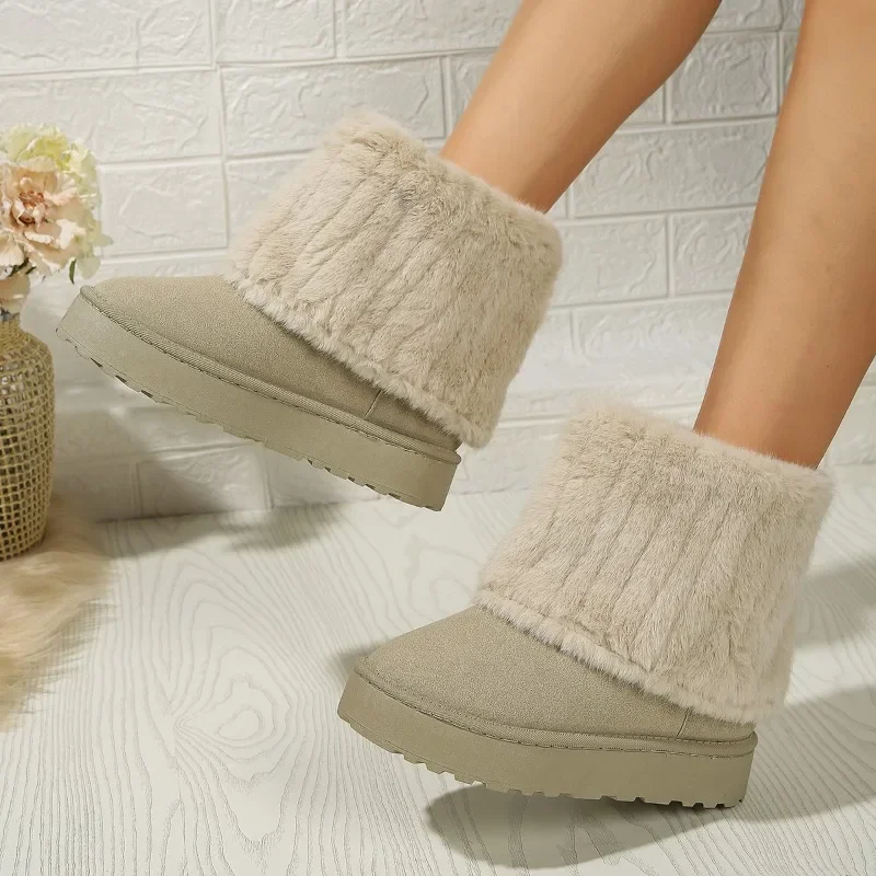 Fashionable Women’s Round Toe Warm Thickened Plush Winter Mid-calf Boots Thick Sole Casual Comfortable Women Snow Boot