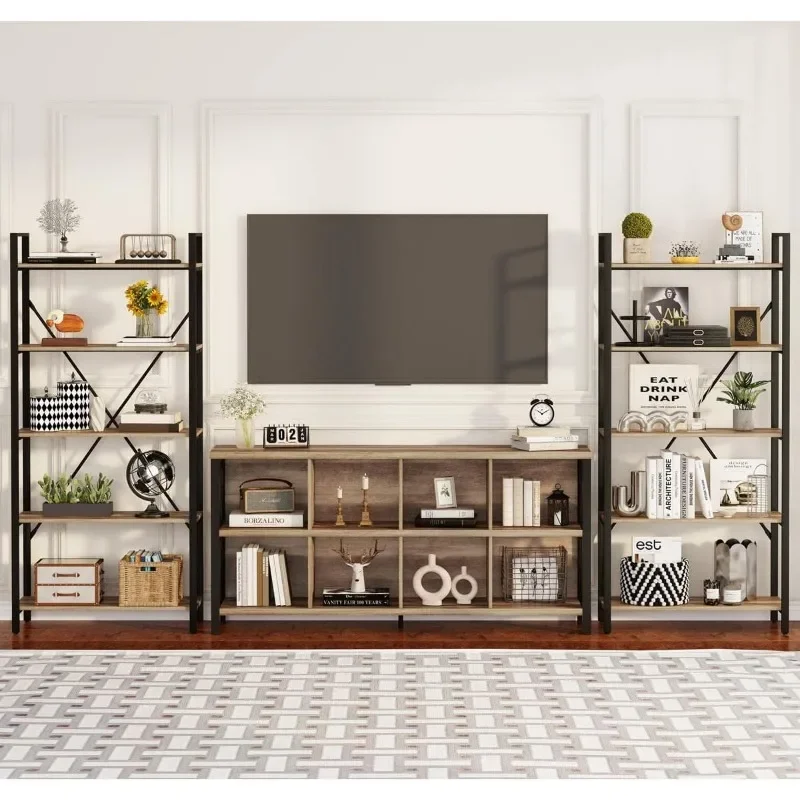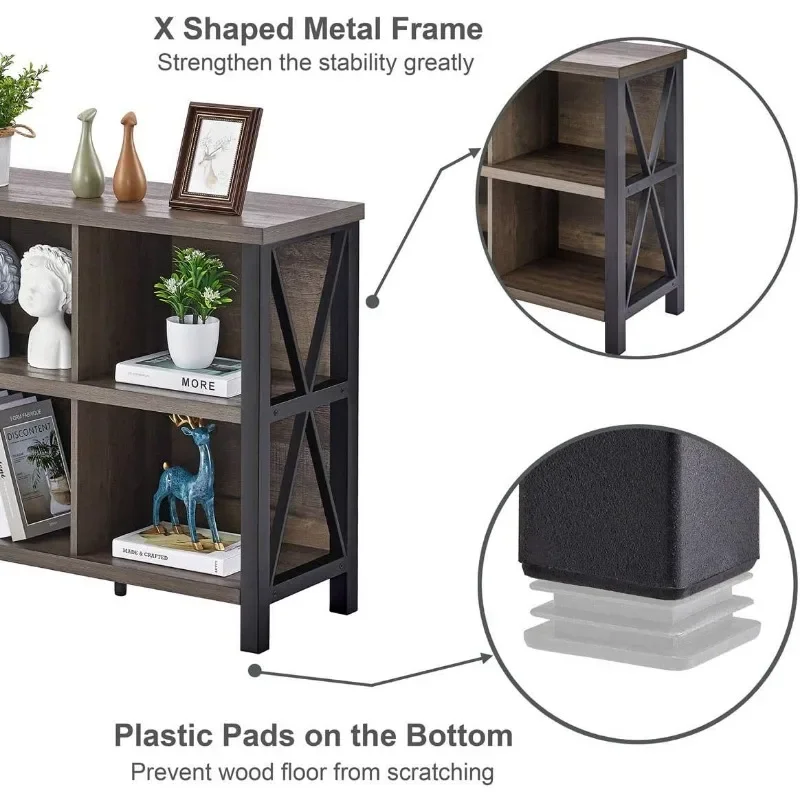 - [Dimensions & Long-lasting Materials]: The overall size of this cube storage bookcase is 62.00″W x 13.58″D x 30.12″H. Crafted from high-grade MDF and long-lasting heavy-duty metal, the rustic wood grain finish showcases natural knots and grains, adding a touch of rustic character.