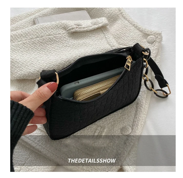 Felt Cloth Women Handbags Fashion Texture Armpit Saddle Bag 2024 New Soft Unlined Cloth One Shoulder Bag Design Purses