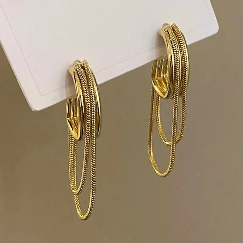 Feminine Temperament Metal Tassel Geometric Earrings New Design Jewelry Wedding Party Luxury Accessories For Women‘s Gift