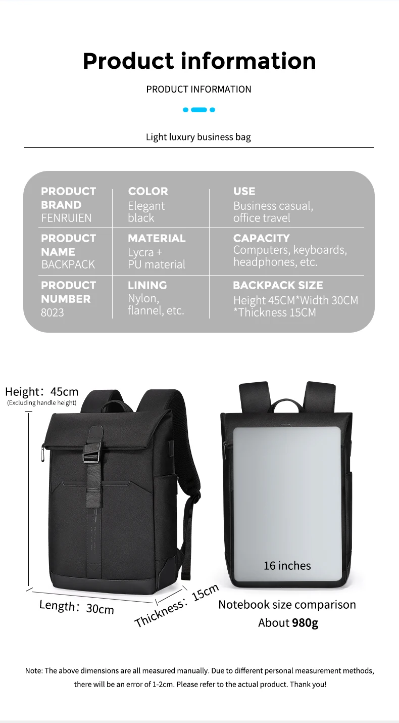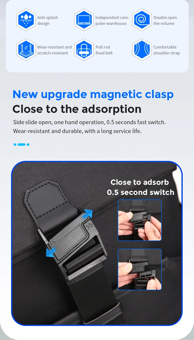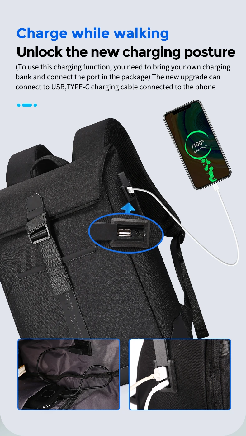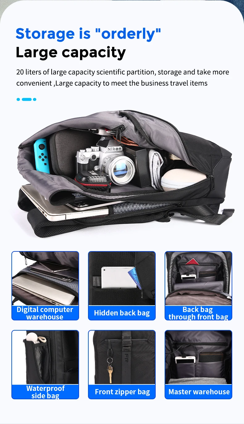 Fenruien Men Magnetic Clasp Waterproof Traval Backpack USB Charging Large Capacity Business Backpack For Male Laptop School Bag