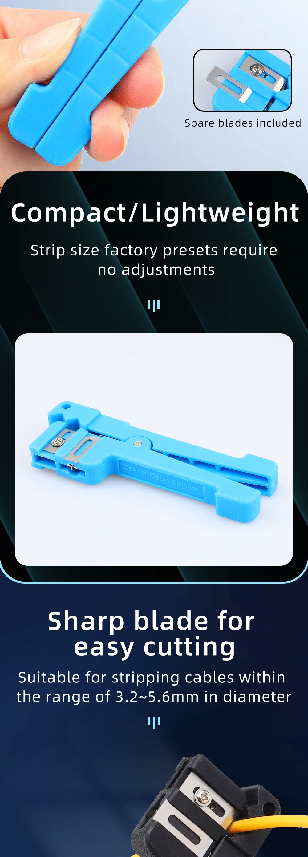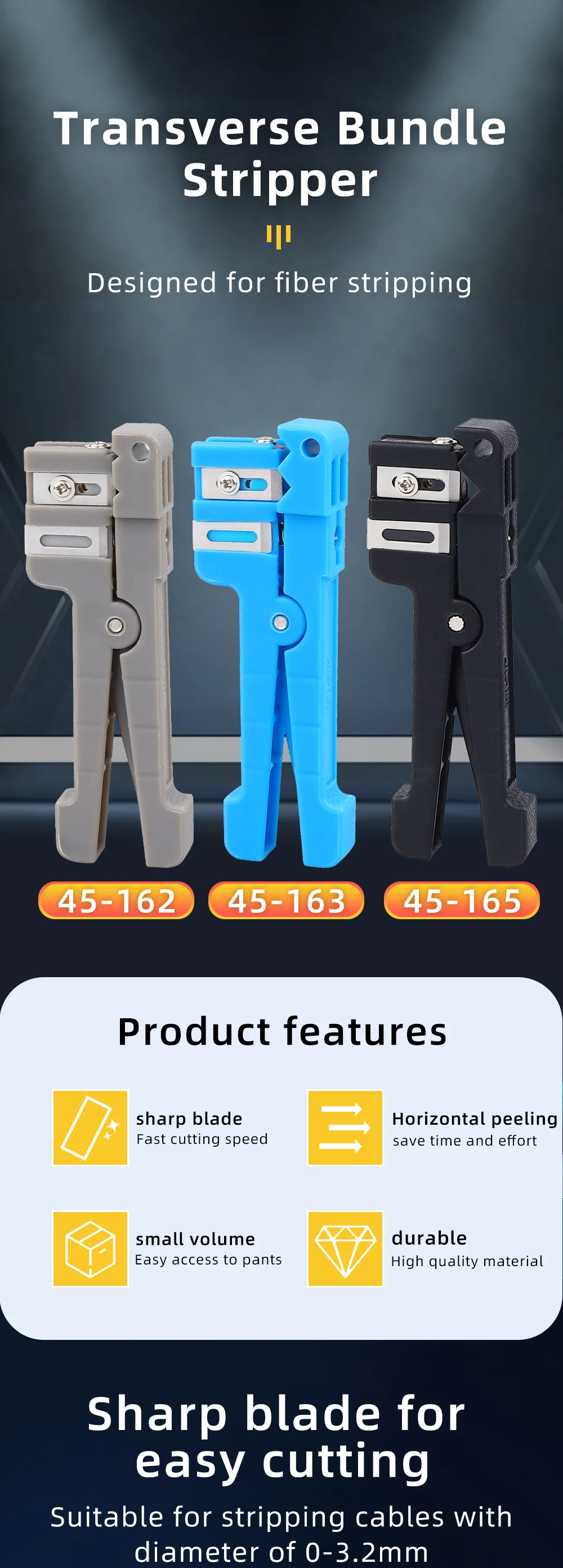 Fiber Cable Ribbon Stripper FTTH Fiber Optic Stripping 3.2~5.6mm Access Tool Kit Loose Buffer Tube Stripper