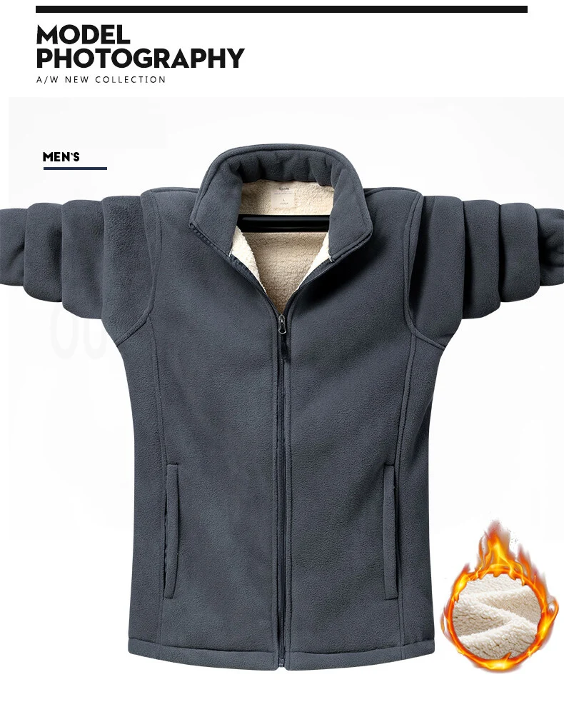 Fleece Jacket Men Autumn Winter Coat Zip Up Plus Size Jacket Men Fashion Clothing Warm Fleece Lined Fur Coat For Men 2022