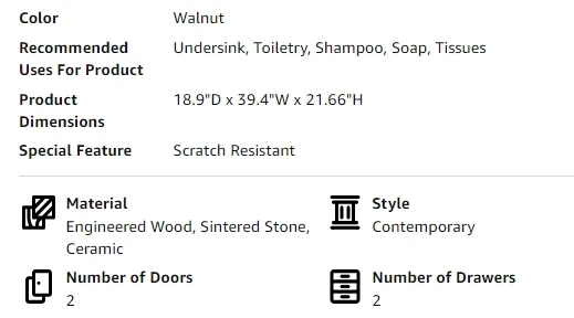 - Ample Storage Space Bathroom Vanity: 39.4″W x 18.9″D x 21.6″H, the vanity cabinet features ample storage space with soft-closing doors and drawers for your bathroom essentials., makes it ideal for use in tight spaces without compromising style or function