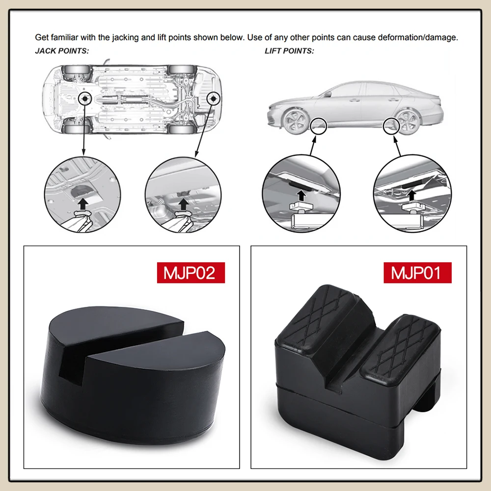 The rubber pad adds extra grip when raising the car and reduce slipping, it is stable.