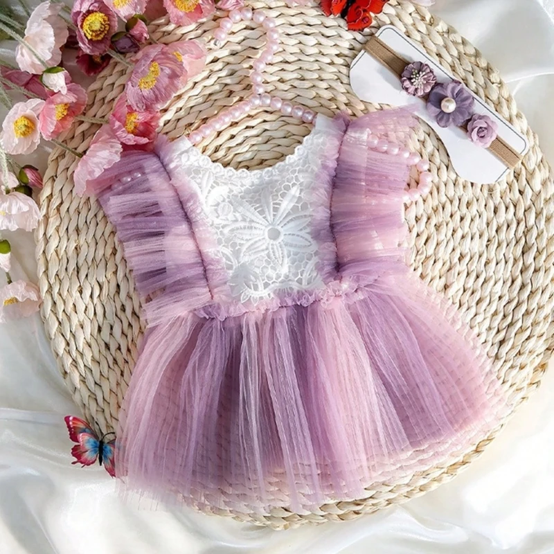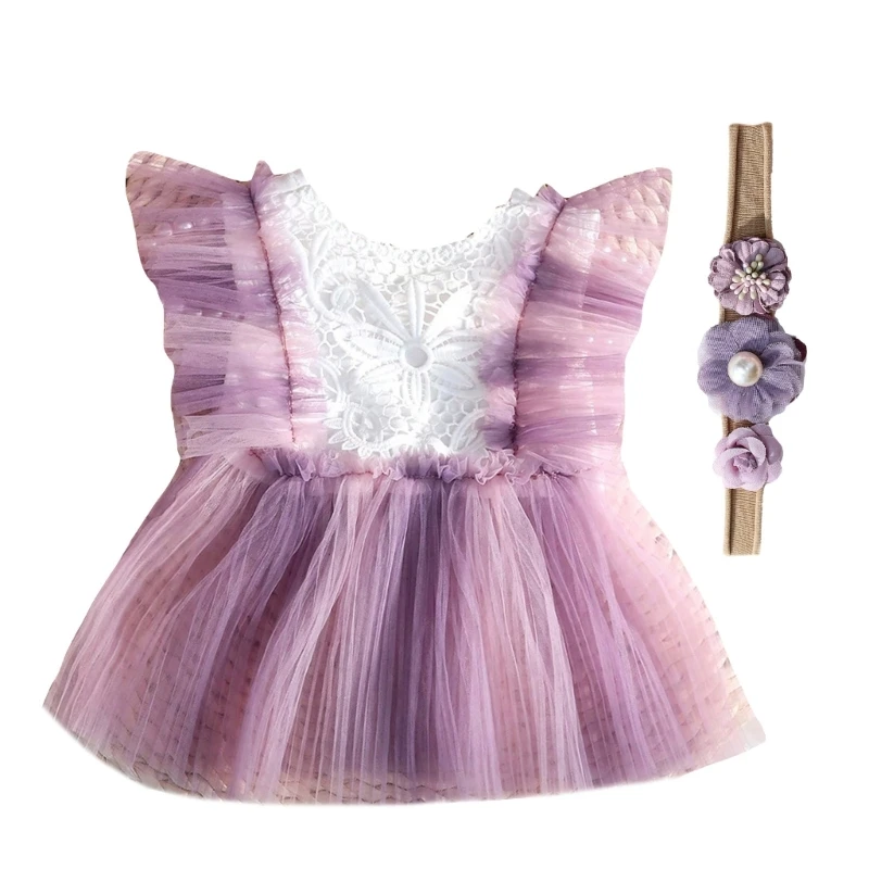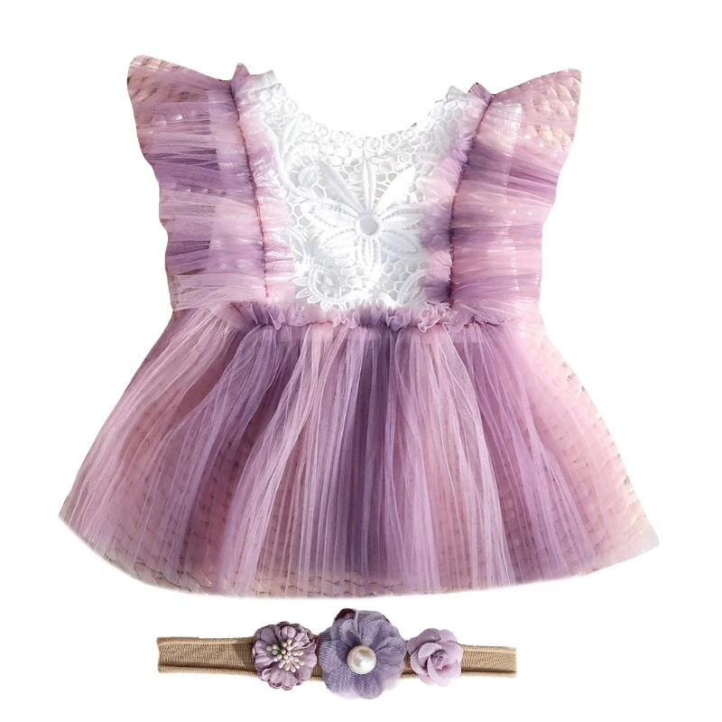 The photo set includes a soft and breathable lace romper dress and a flower headband, ensuring your baby girl is the center of attention at any event.