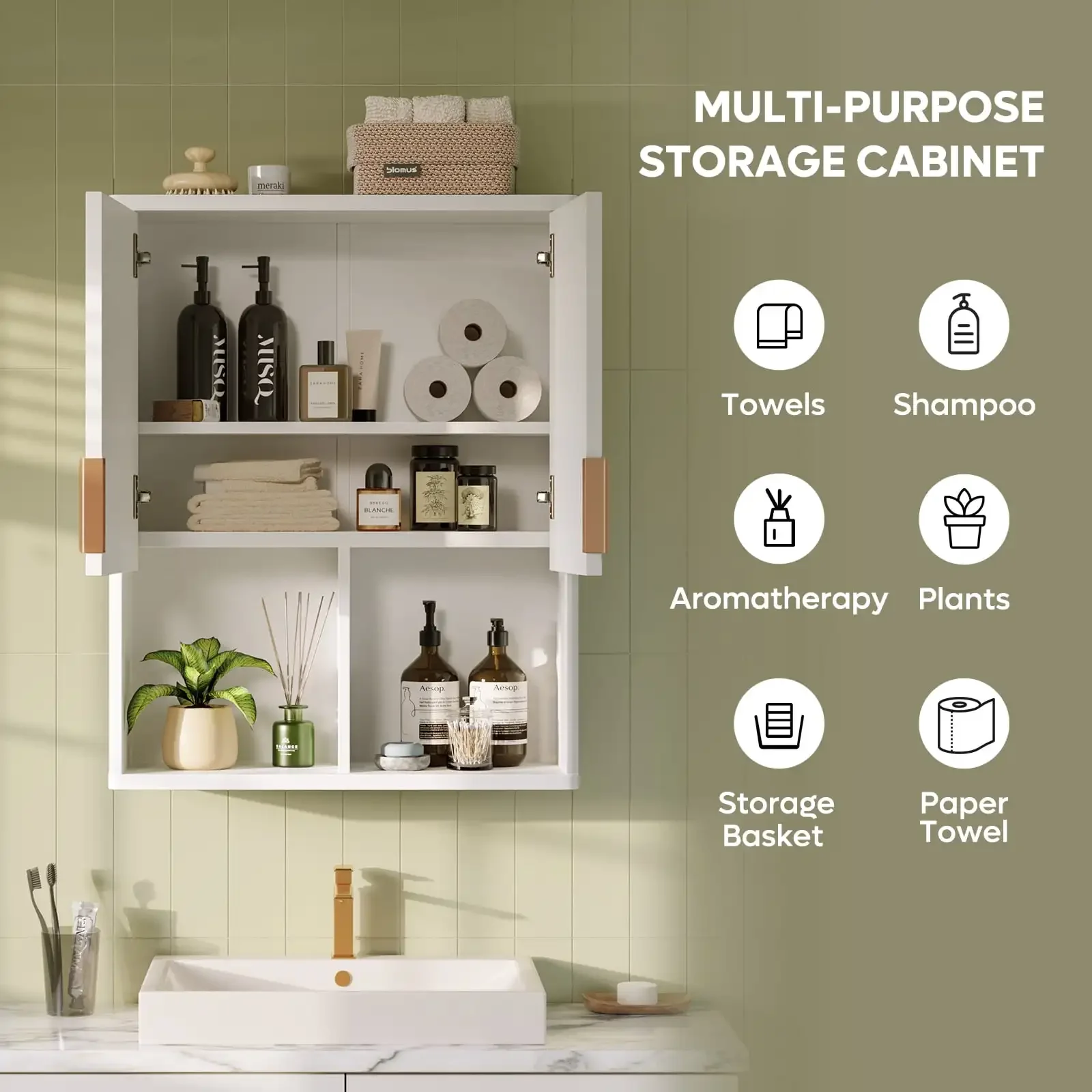 Fluted Wall-Mounted Medicine Bathroom Cabinet with Door & Shelves, 23.62 x 8.27 x 29.84 Inches Wooden Over Toilet Storage Cabinet, White