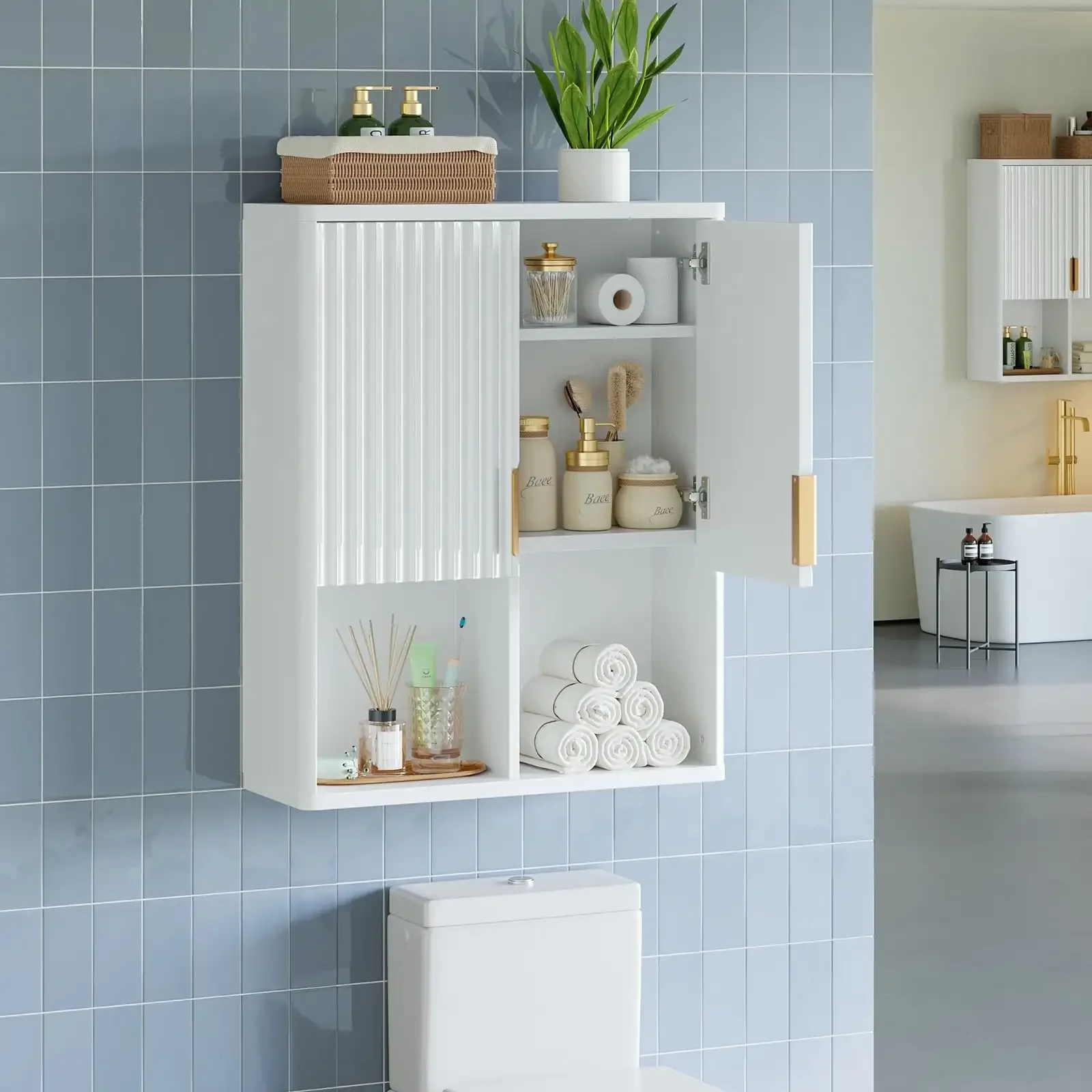 Fluted Wall-Mounted Medicine Bathroom Cabinet, 23.62 x 8.27 x 29.84 Inches Wooden Over Toilet Storage Cabinet, White