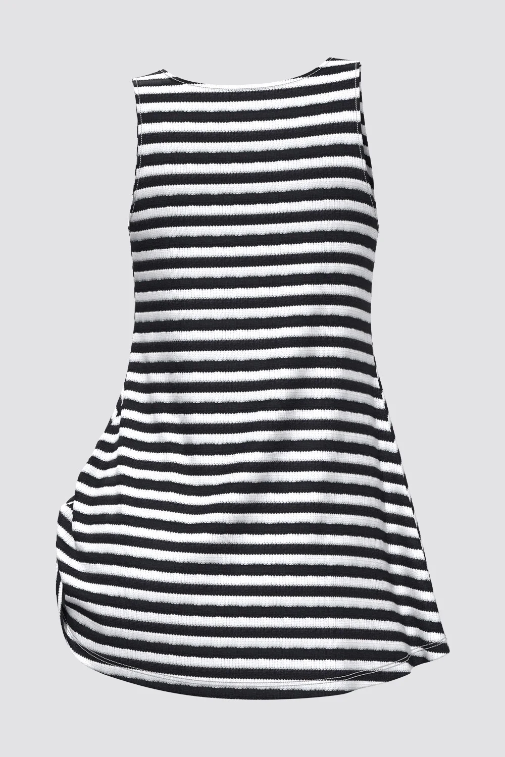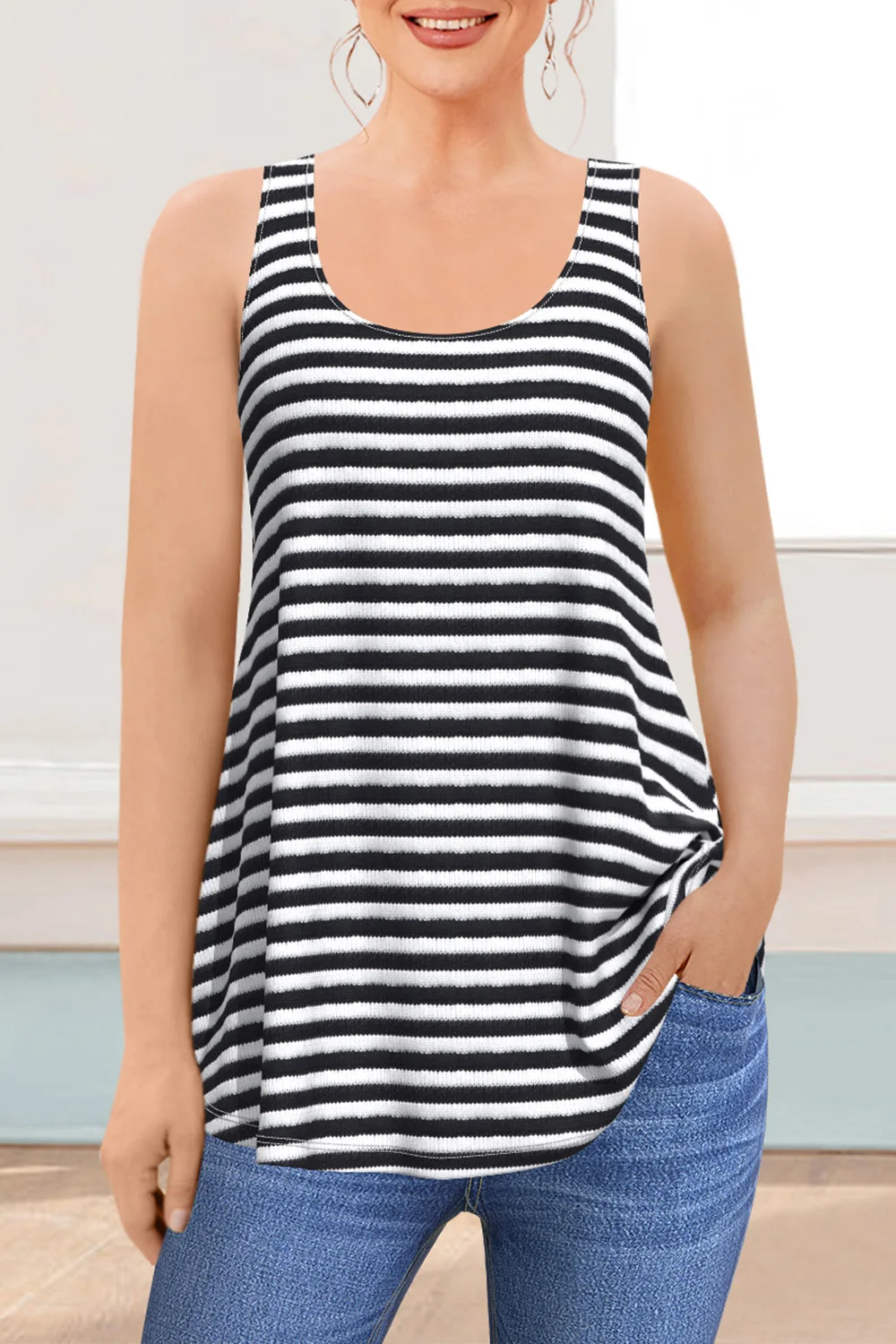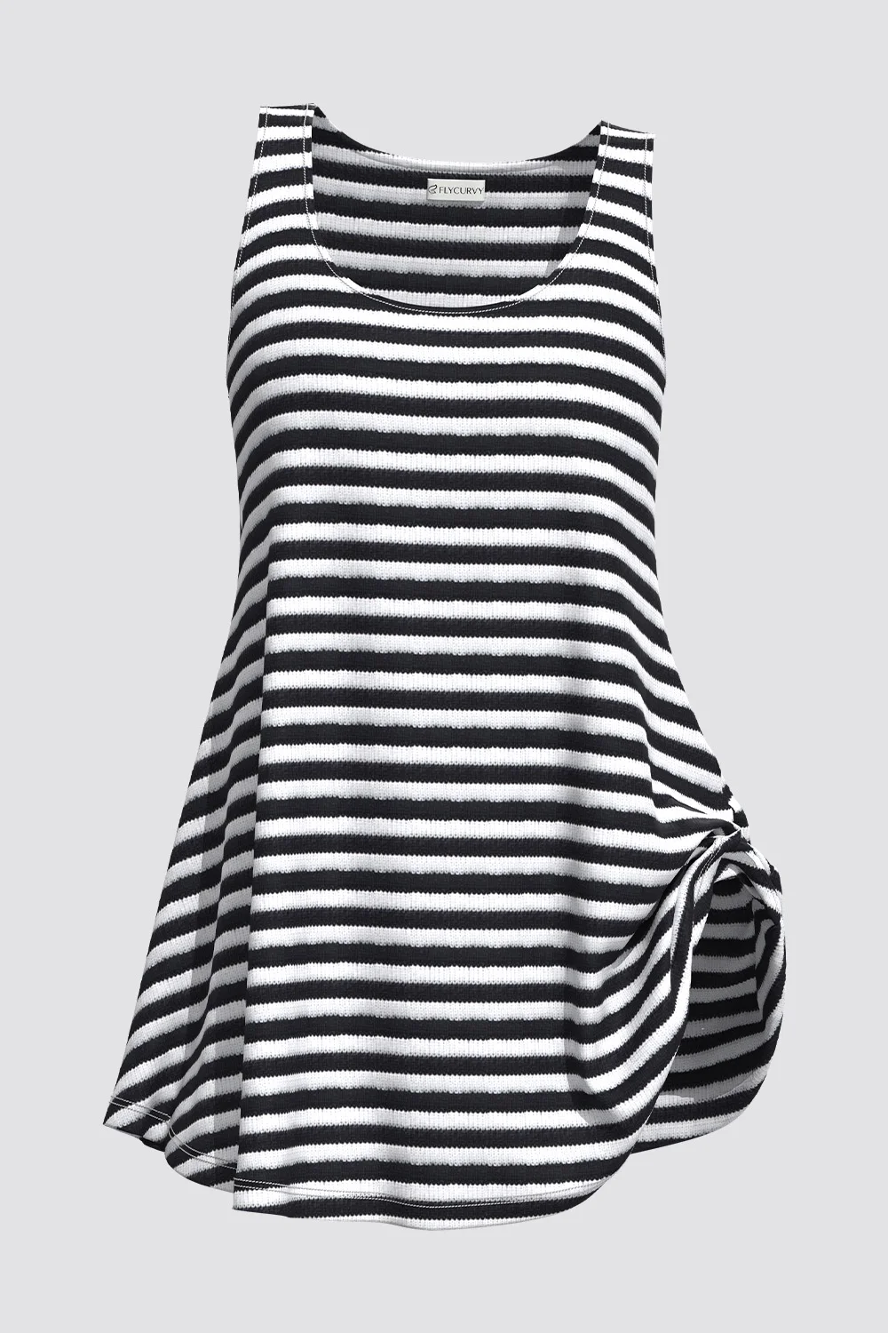 Flycurvy Plus Size Casual Black Striped Print Rib Knit Tank Top With Built In Bra