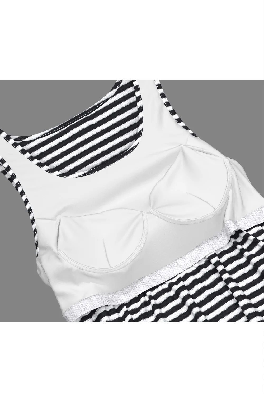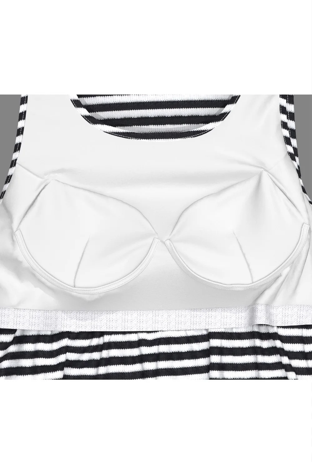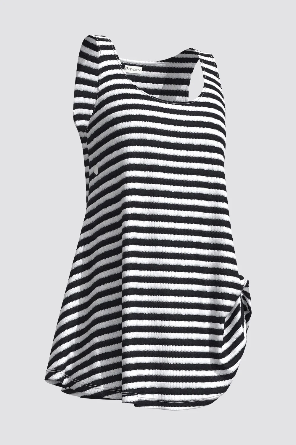 Flycurvy Plus Size Casual Black Striped Print Rib Knit Tank Top With Built In Bra
