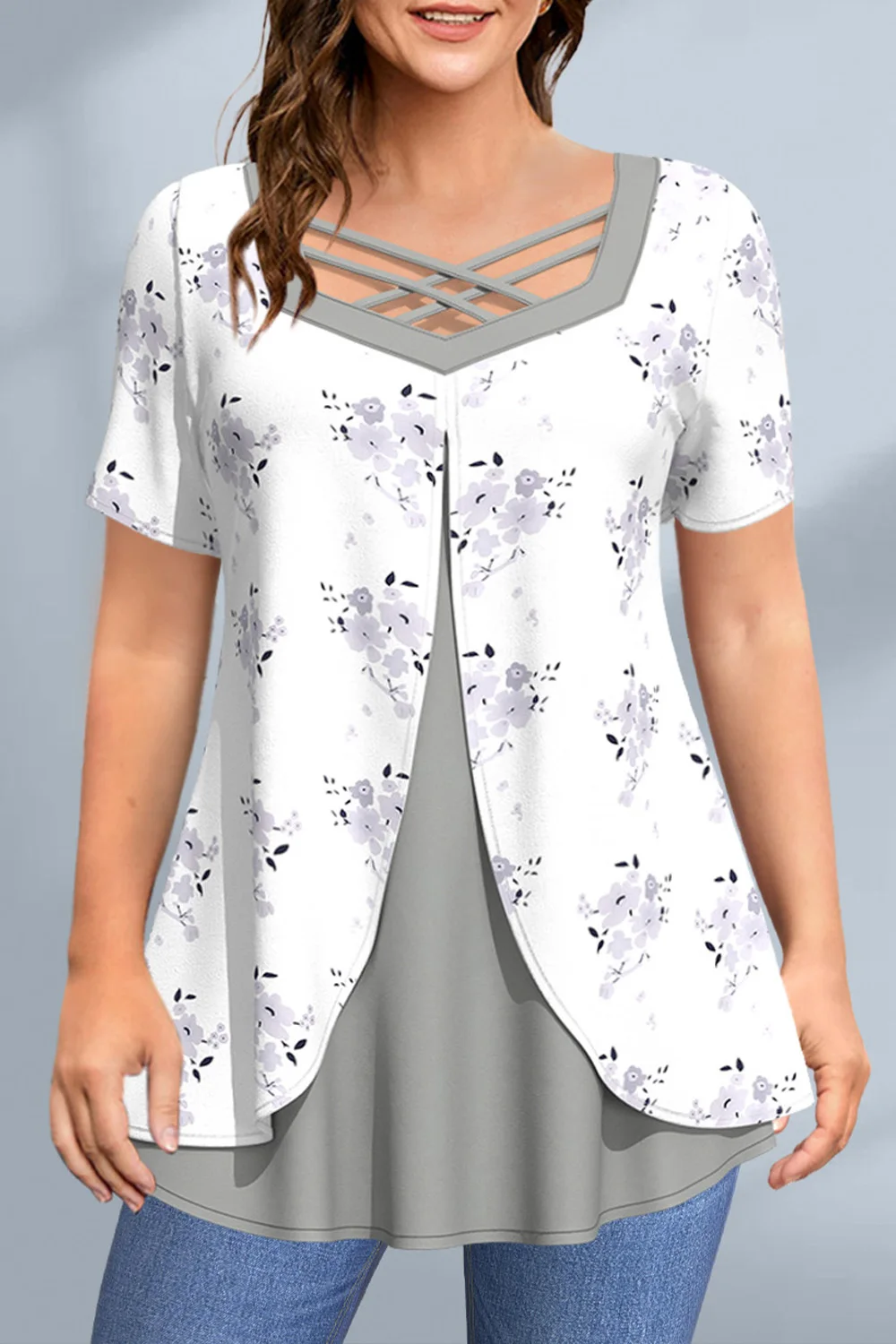 Plus Size Floral Print Tank Top Casual Crew Neck Sleeveless Tank Top For Summer Women's Plus Size Clothing